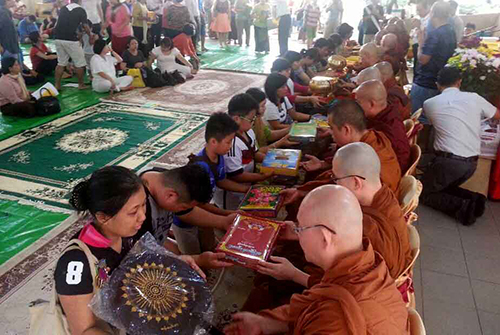 農曆六月十九日,觀世音菩薩成道紀念日,新加坡金鳳廟舉行了免費的素菜自助餐,由早上開始直到下午。寺廟更於朝拜儀式後,安排壽桃和壽麵給參與的信眾請回家。現場所見,很多信眾到廟拜拜和參與,有些更於早上6時半已抵達!行善最樂,福有攸歸!