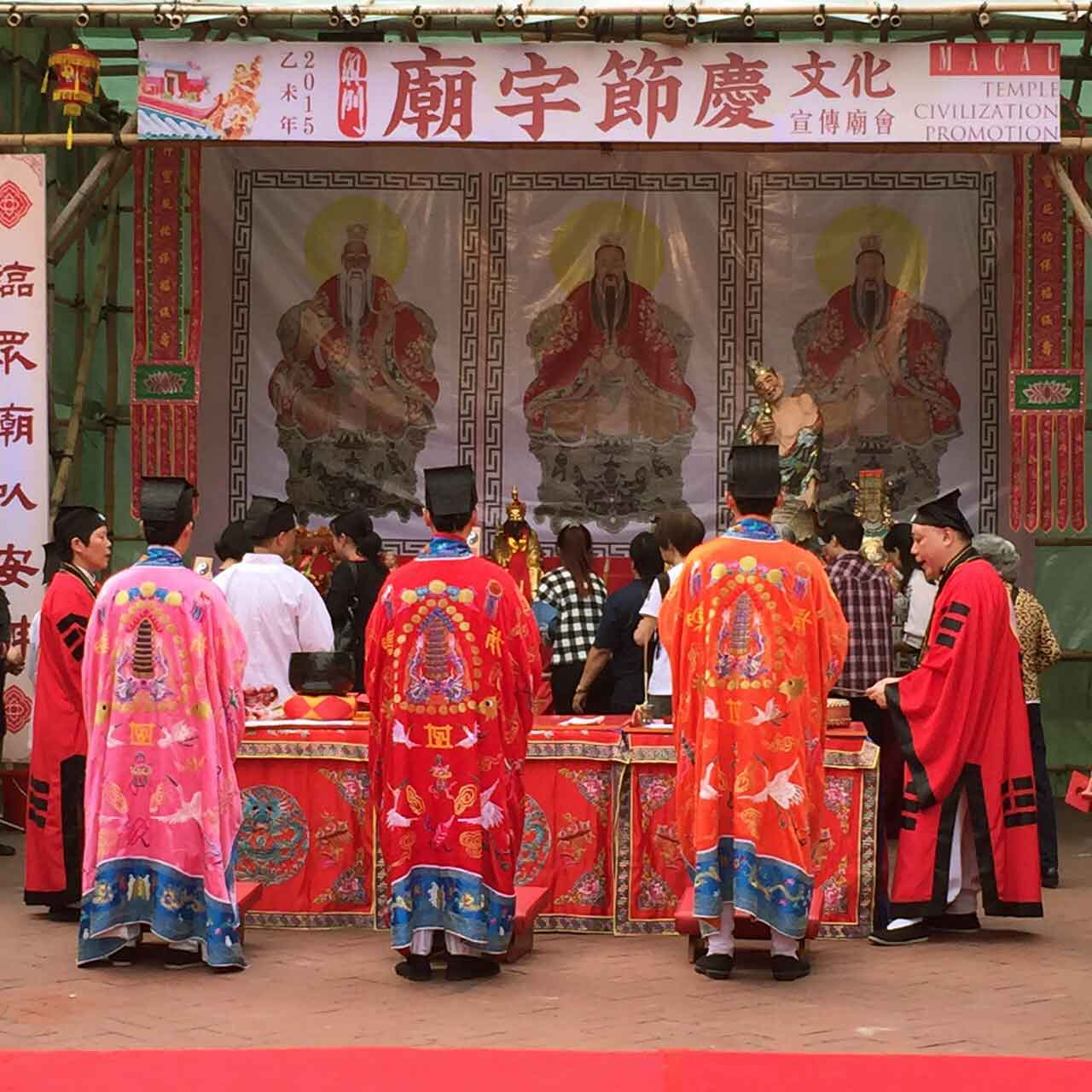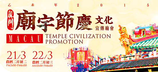 由澳門廟宇節慶籌委會主辦的「乙未年澳門廟宇節慶文化宣傳廟會」,於21-22/3/2015康公廟前地舉行。透過廟會,我們可深入了解澳門廟宇文化。廟會開幕典禮包括:傳統道教祈福儀式、龍獅點晴起動儀式以及上香祈福儀式。此外,還有民俗文化表演、傳統手工藝廣場及道教科儀音樂表演,現場的廟宇展示攤位更向參觀人士派送特色小禮物如護身符的小米袋等。