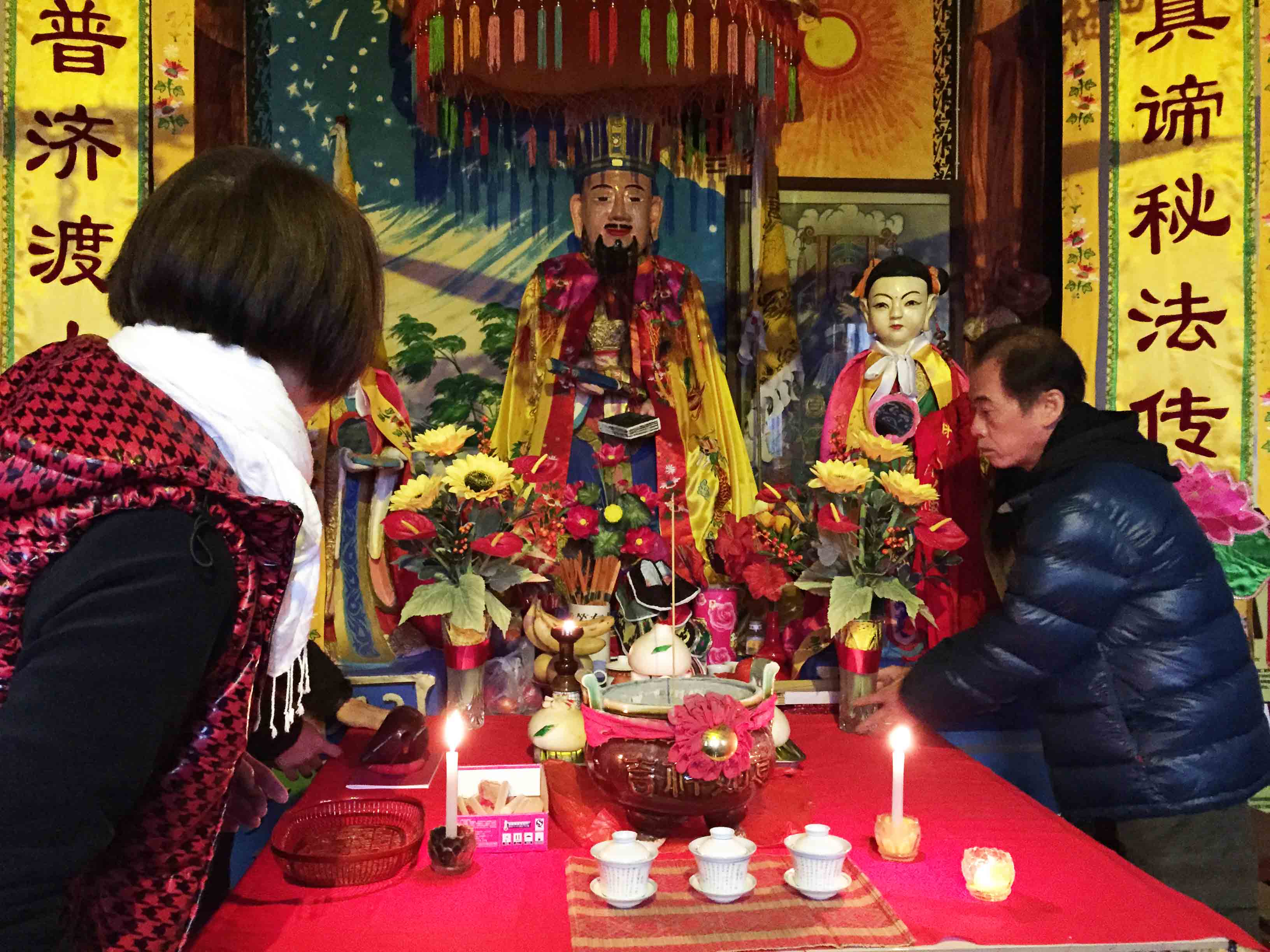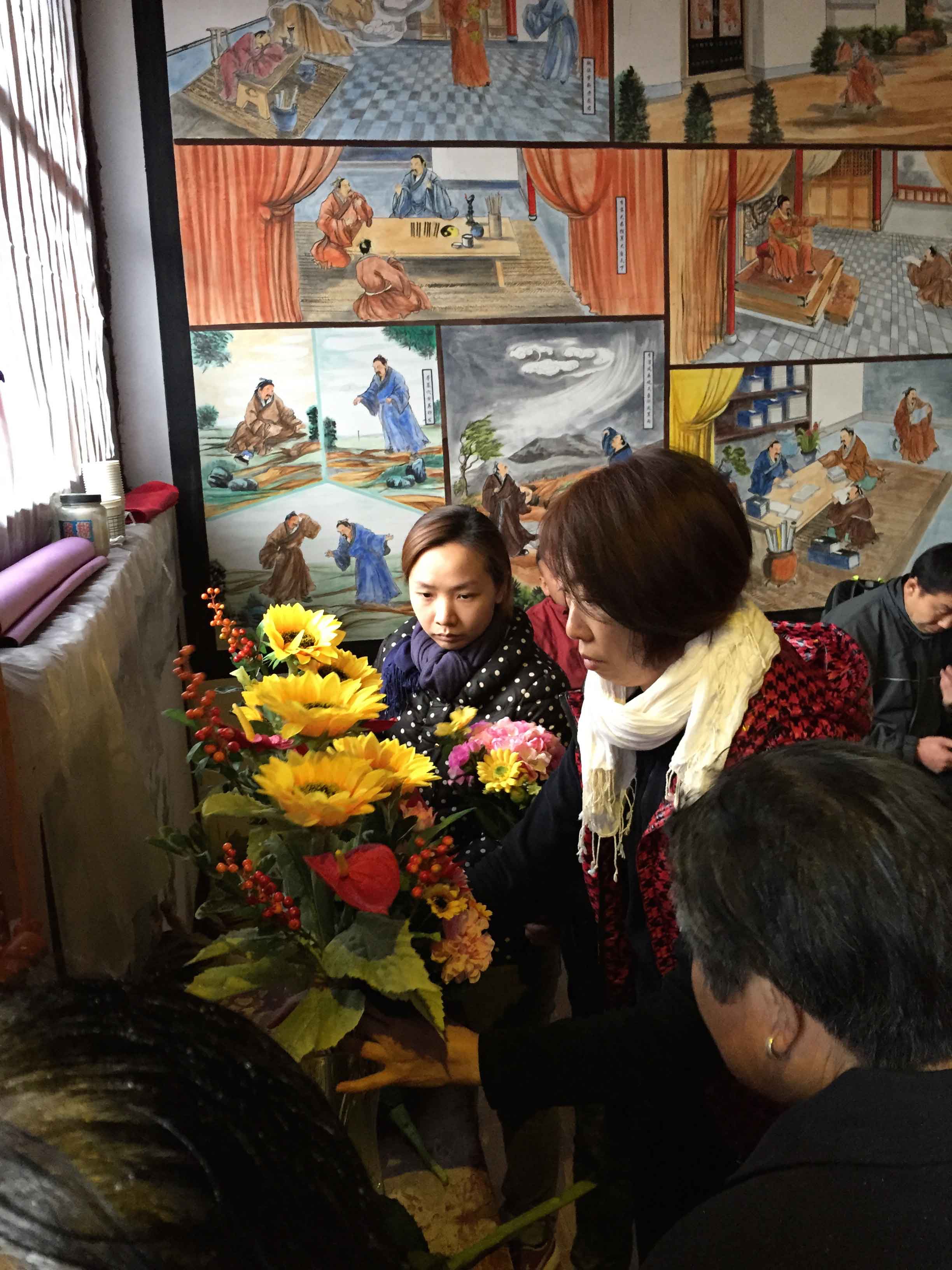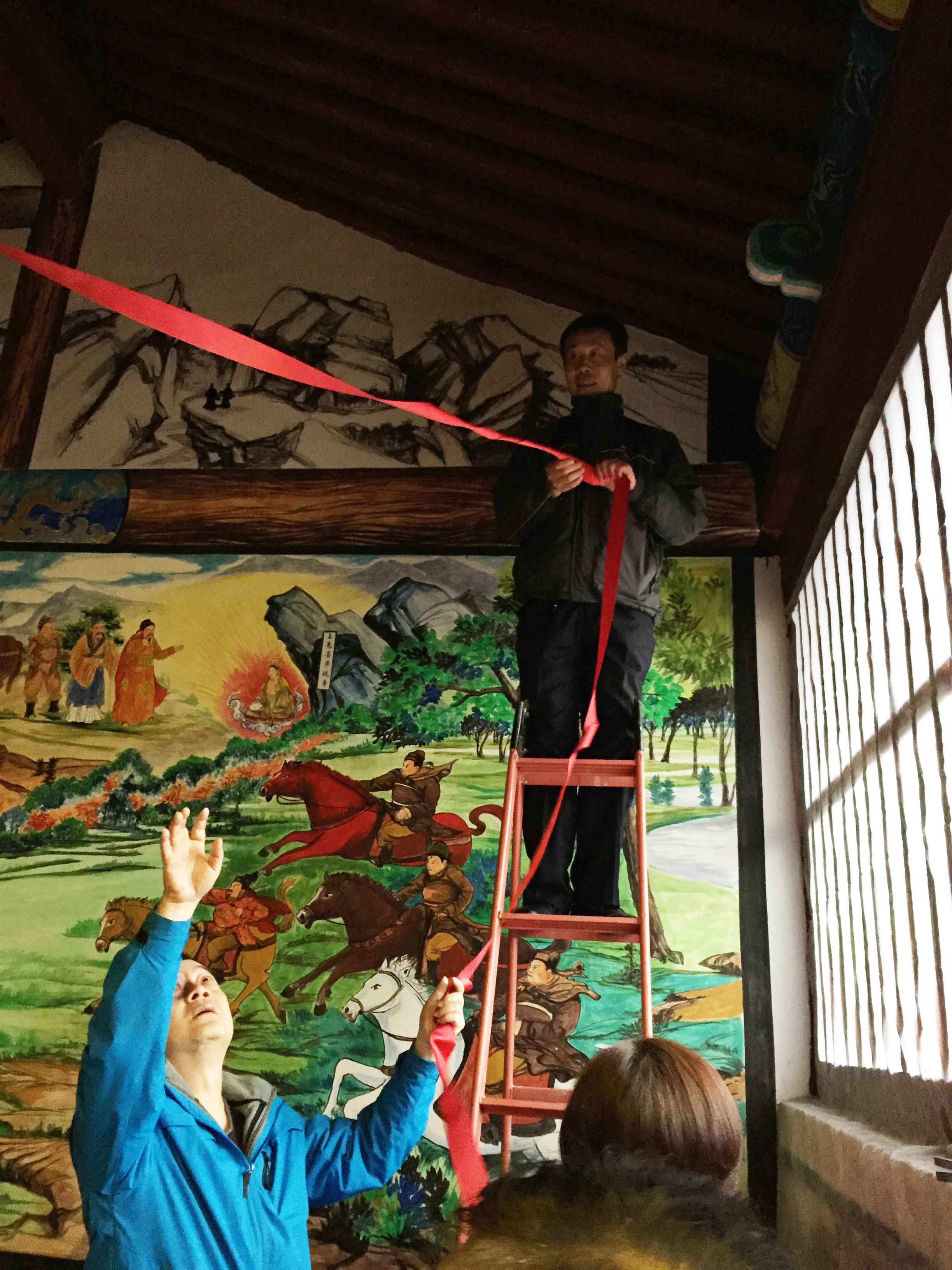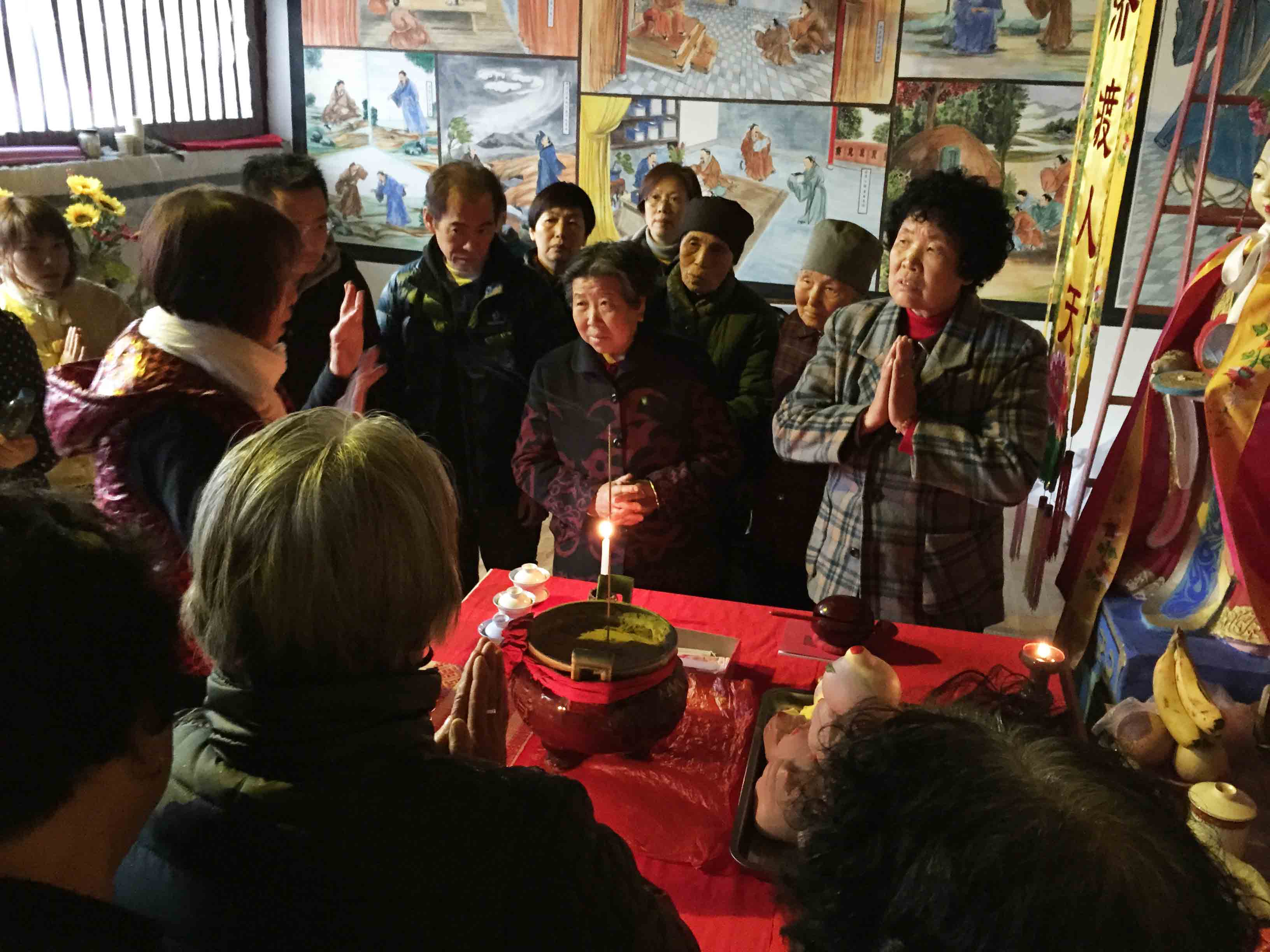 師父從港澳帶來供杯、絲花、佈置物品等,莊嚴岐山 淳風祠,為翌日的祭祀慶典做好準備。 師父還耐心教導當地村民以恭敬心供茶。感恩 師父!