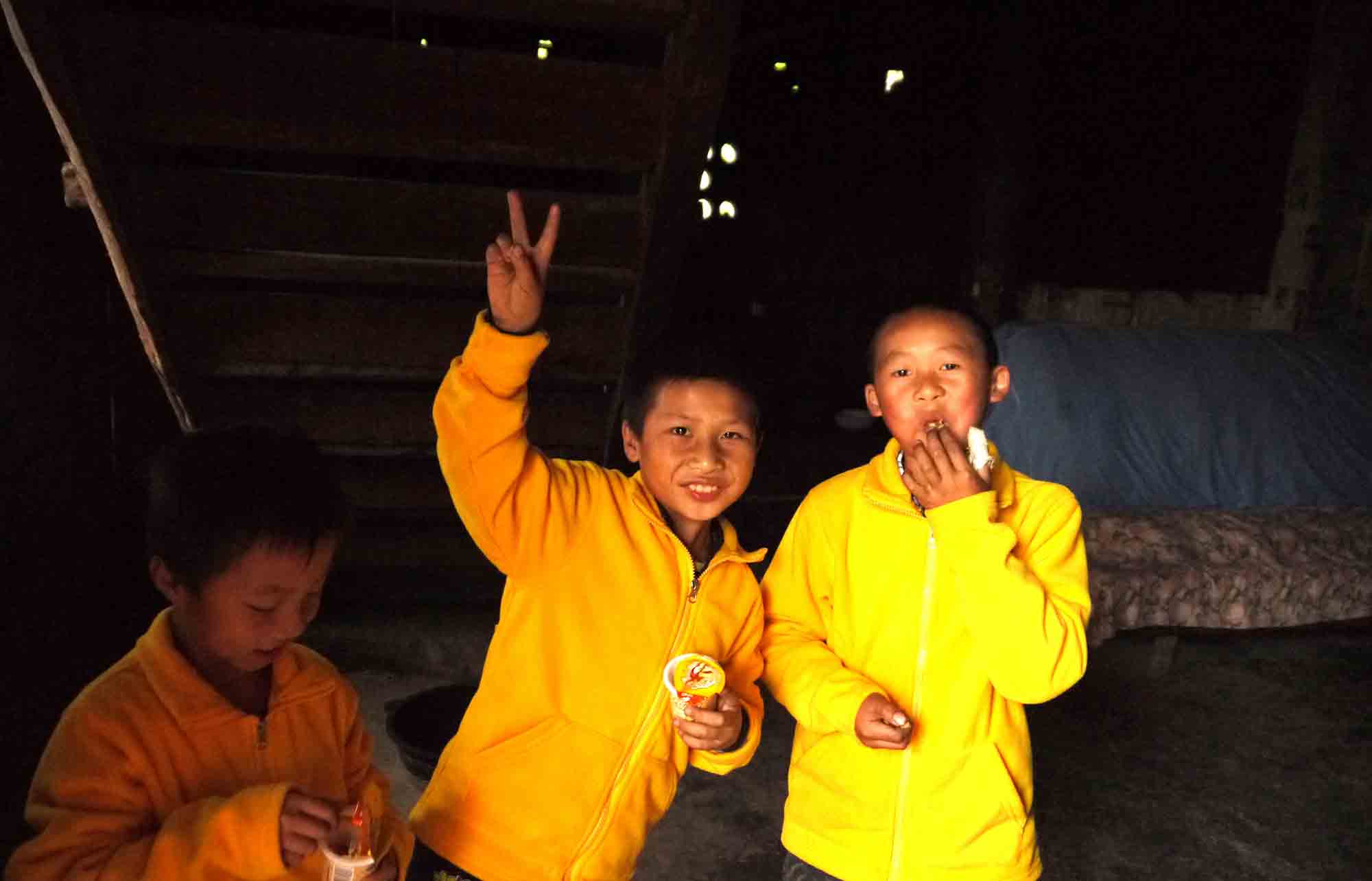 師父送國飛兩兄妹各人一盒餅乾,國飛即與身邊好朋友分享,我們發覺,一般農鄉小朋友對所得的都十分慷慨,是純真?或是從沒現代都市人的自利心態?