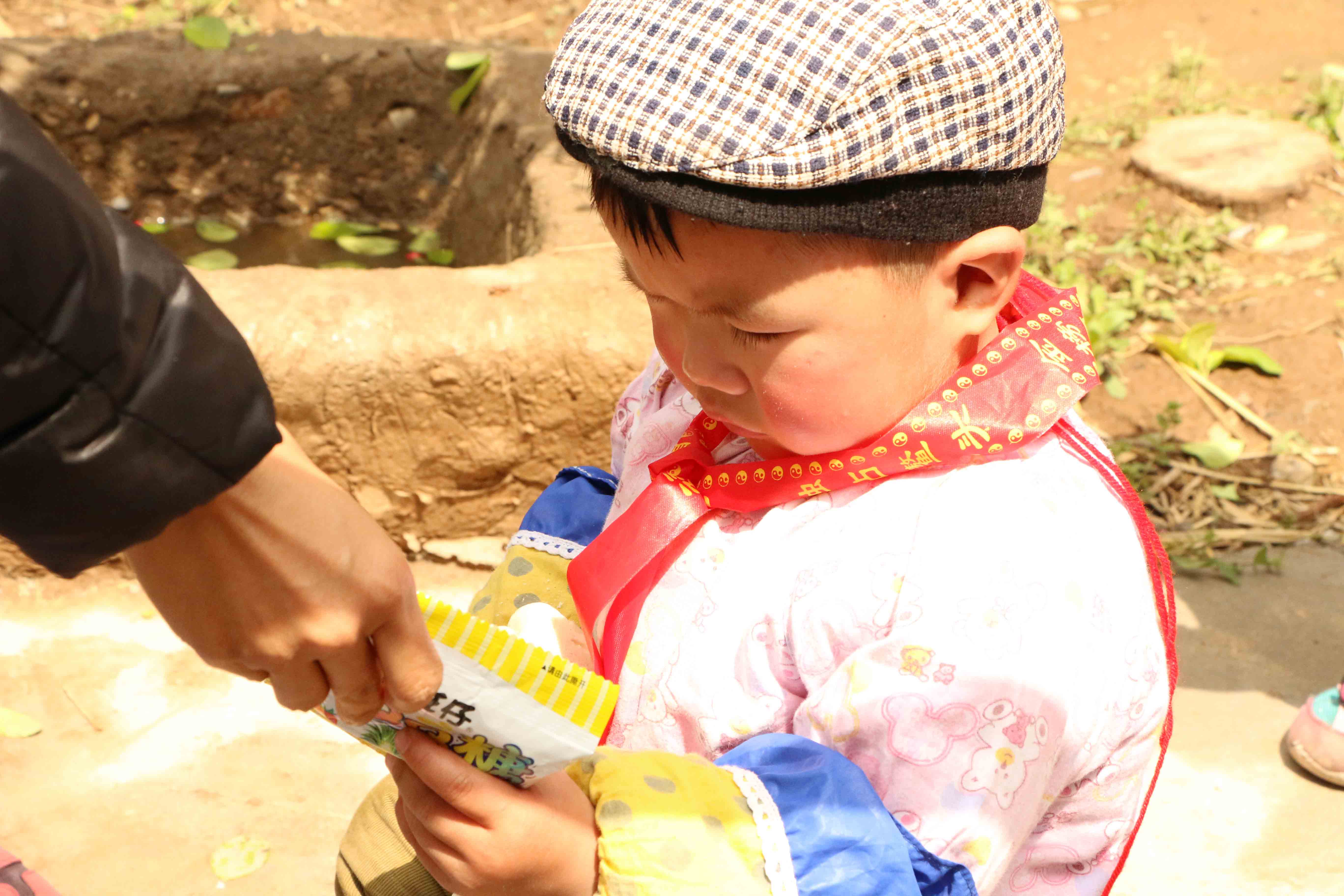 感恩 師父提示我們,廟會期間給村裡小孩送贈糖果!
