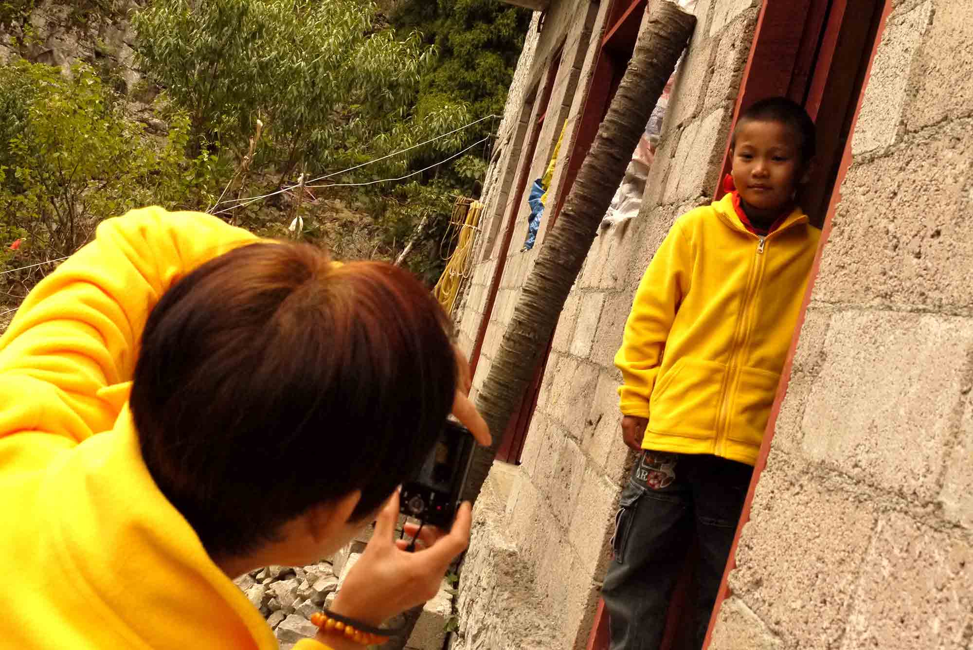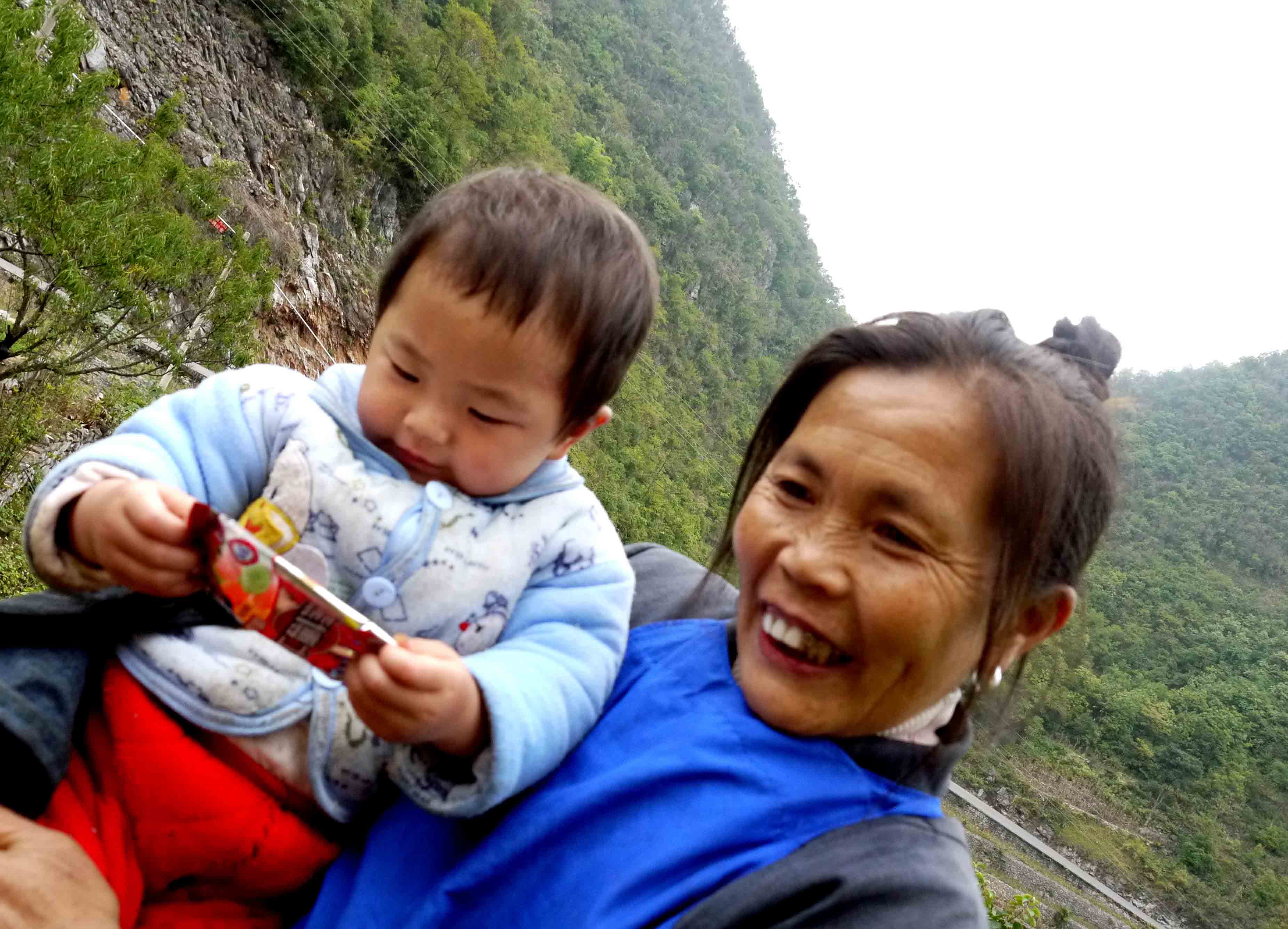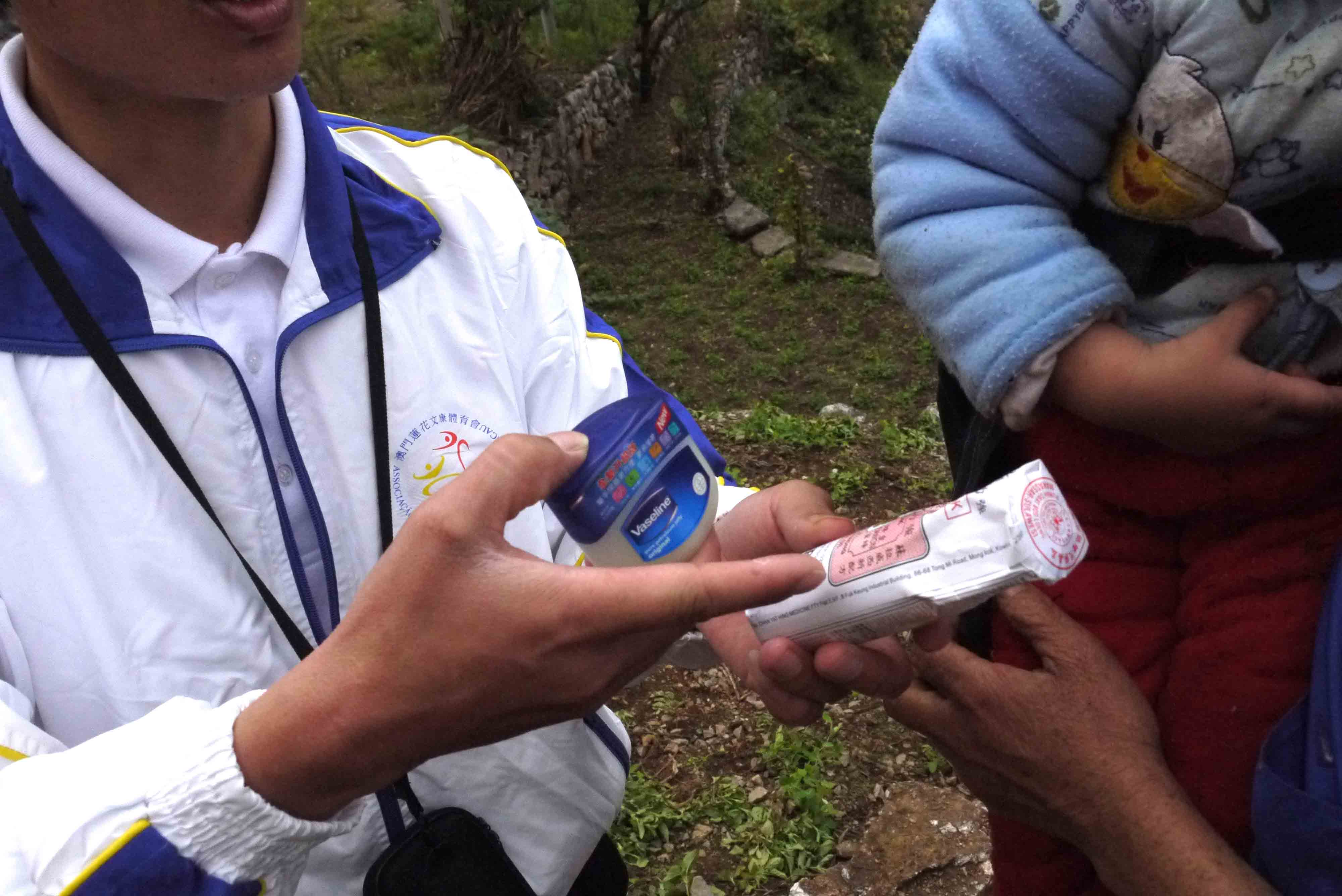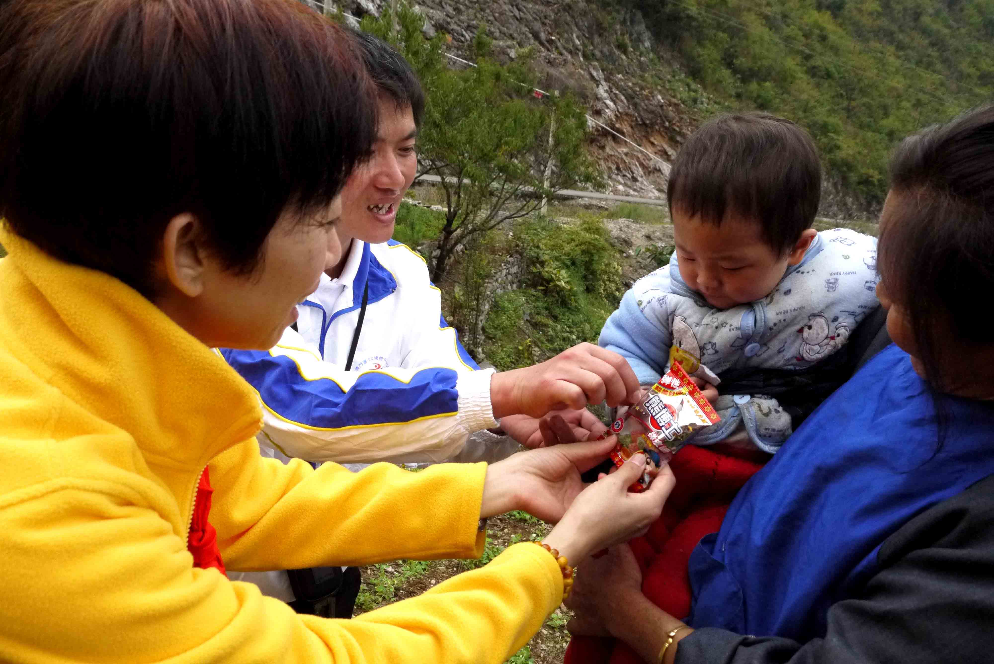 路上看到村民, 師父也會分享準備好了隨身攜帶的小物資,並讓老師們用方言向他們講解,感恩 師父!