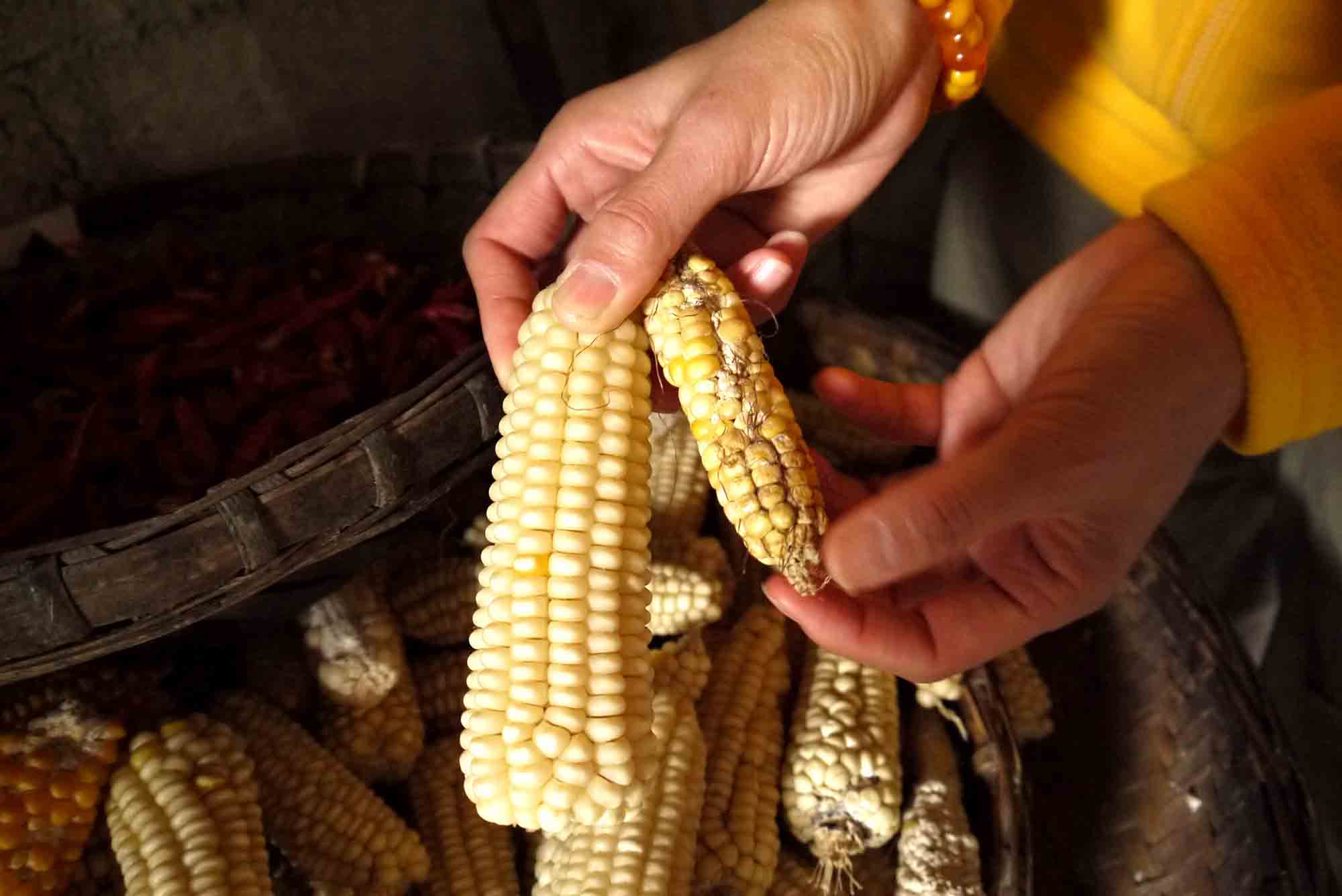 今年粟米收成差,左邊是往年的標準大小,右面是今年的普遍模樣。