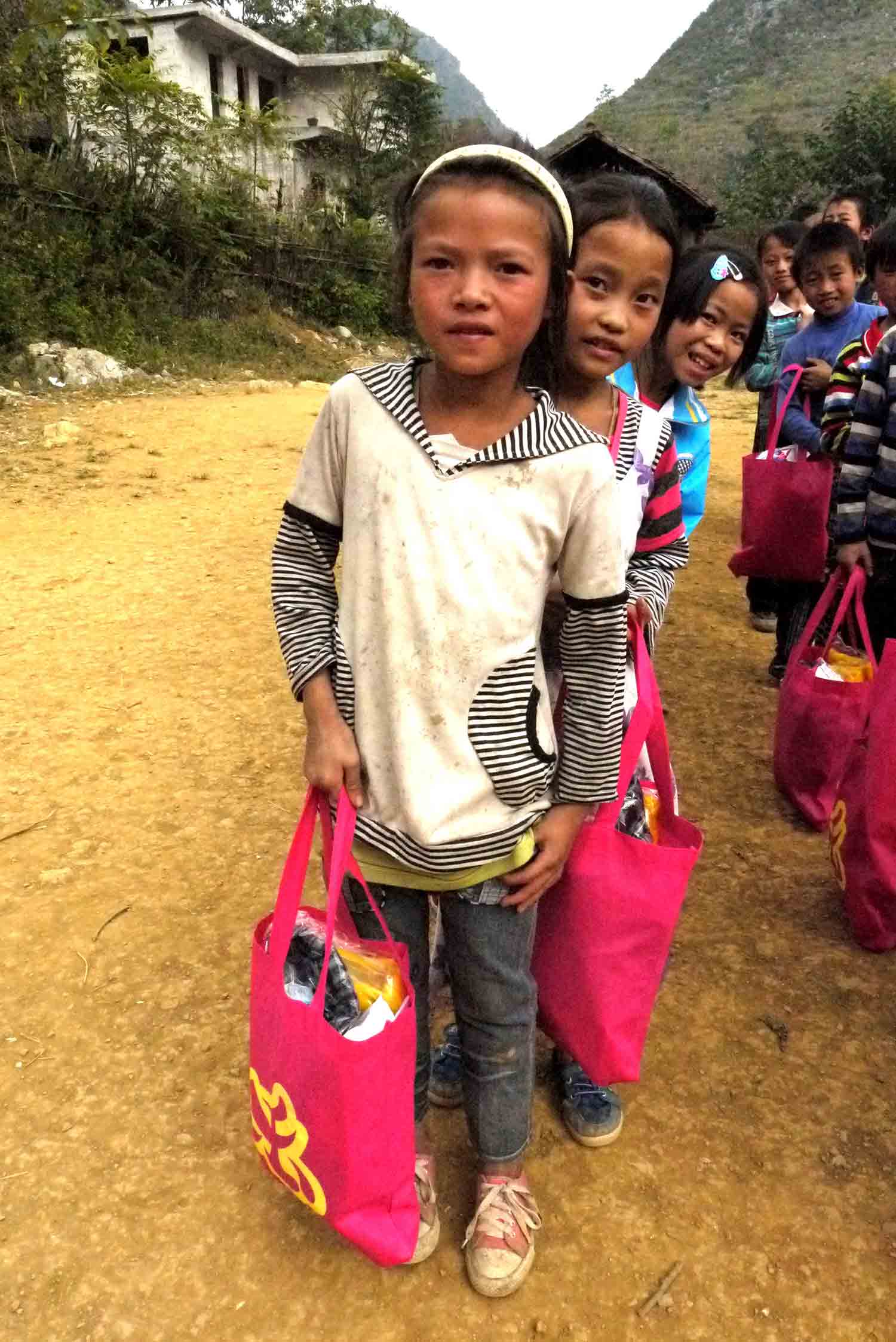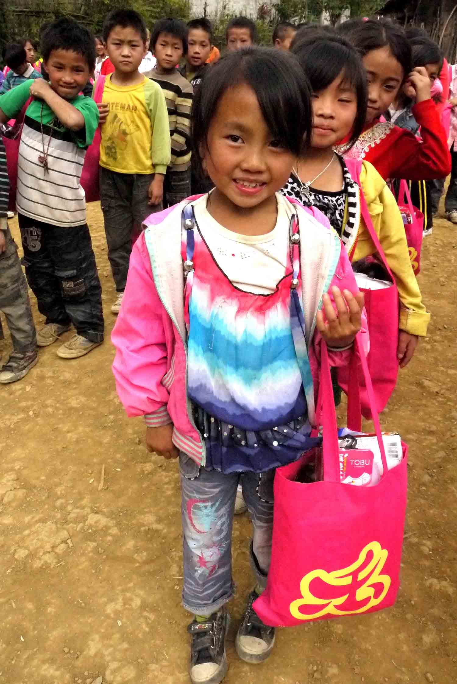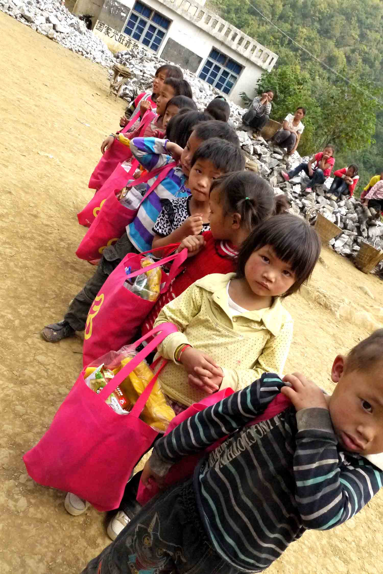 小朋友們收到我們的物資禮物,喜上眉梢,依據 師父指示,禮物都以實用為主,例如全新的抓毛外套、襪子、頸巾、水壺、牙膏牙刷、肥皂、藥油、羅漢果、文具等,用本門環保袋盛着,一人一袋,看到學生們由心喜悅的神情,辛苦也值得。