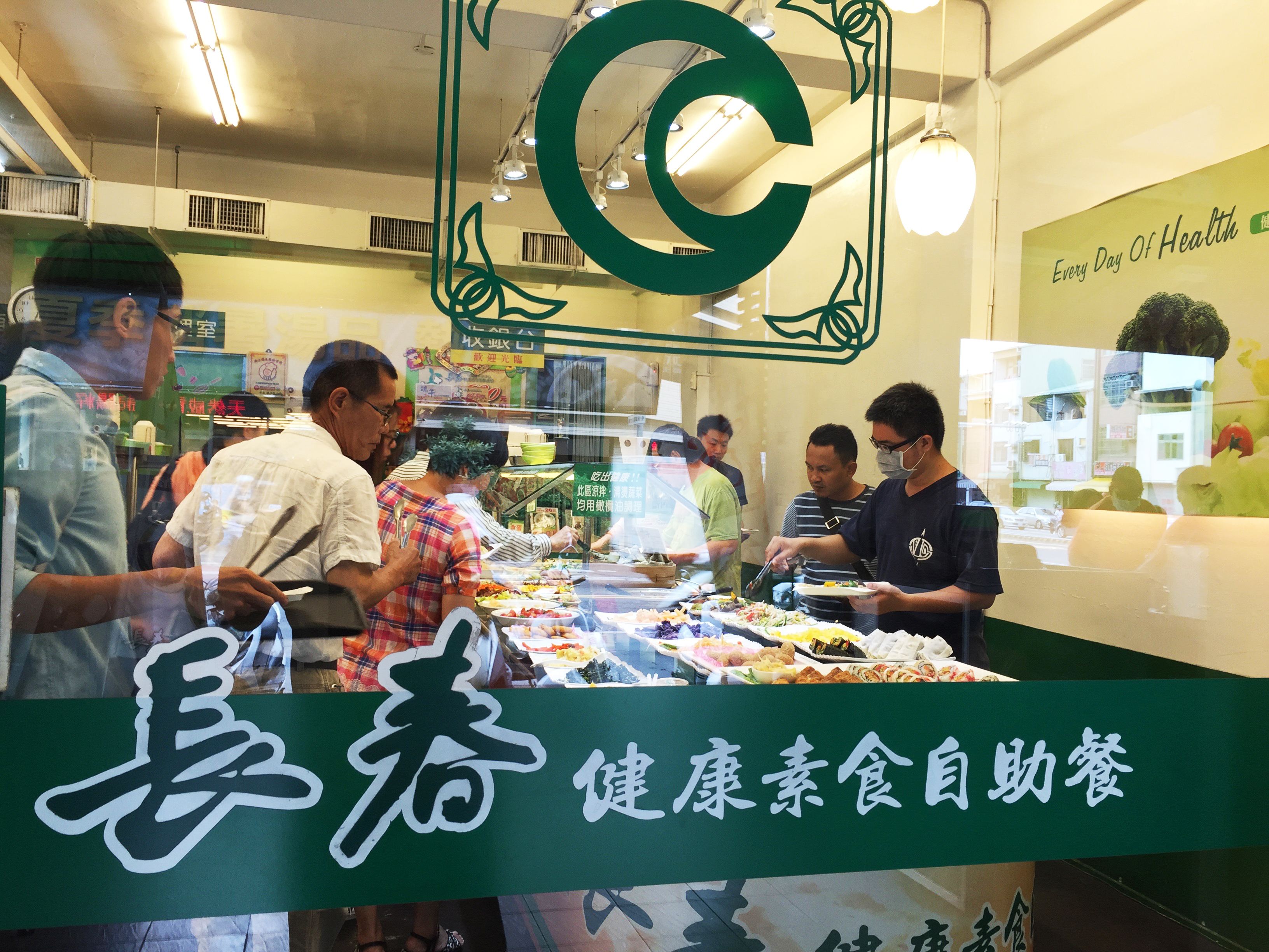 長春素食是台灣的連鎖素食自助餐廳,此店是在台南的開元店:台南市開元路355-3號。