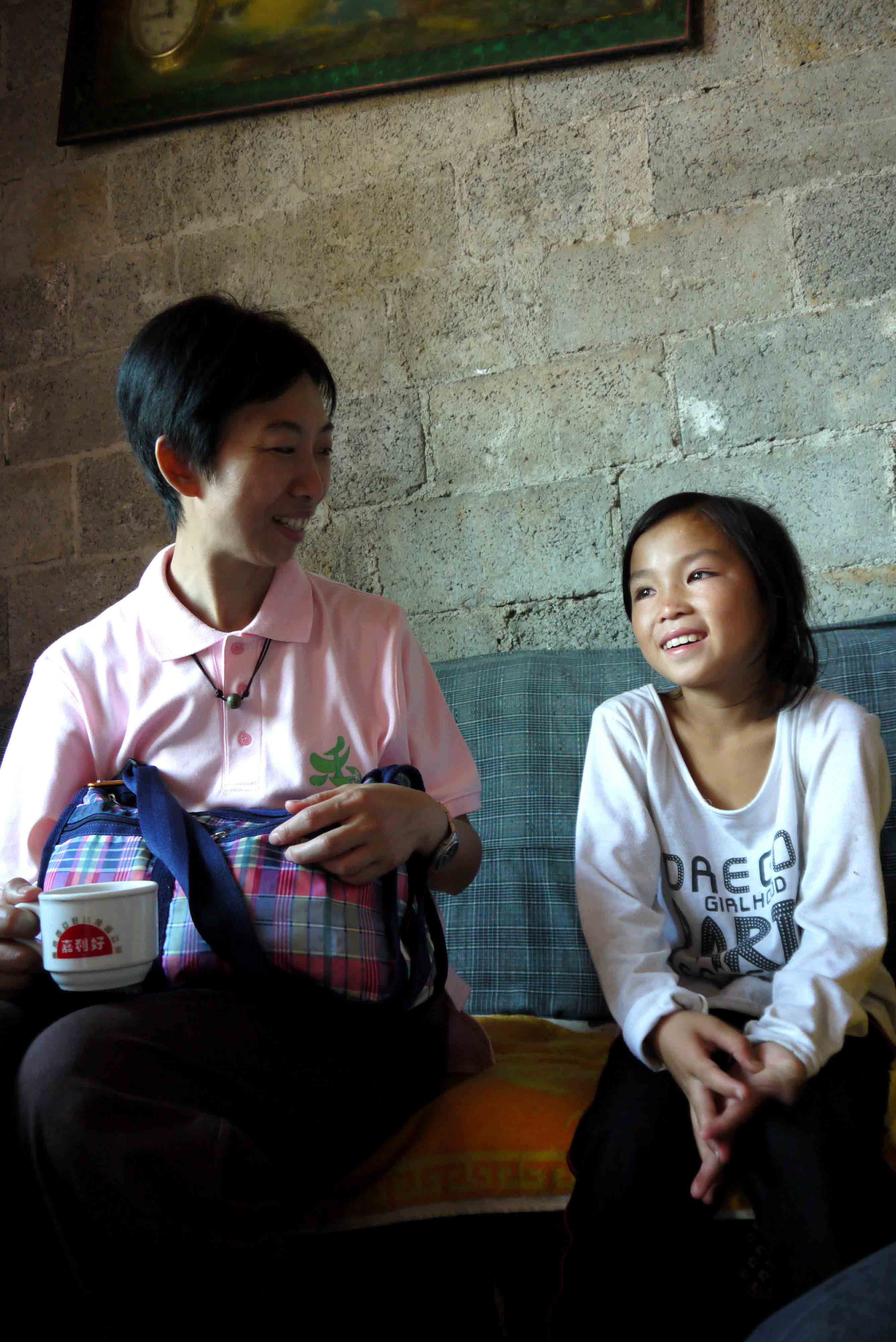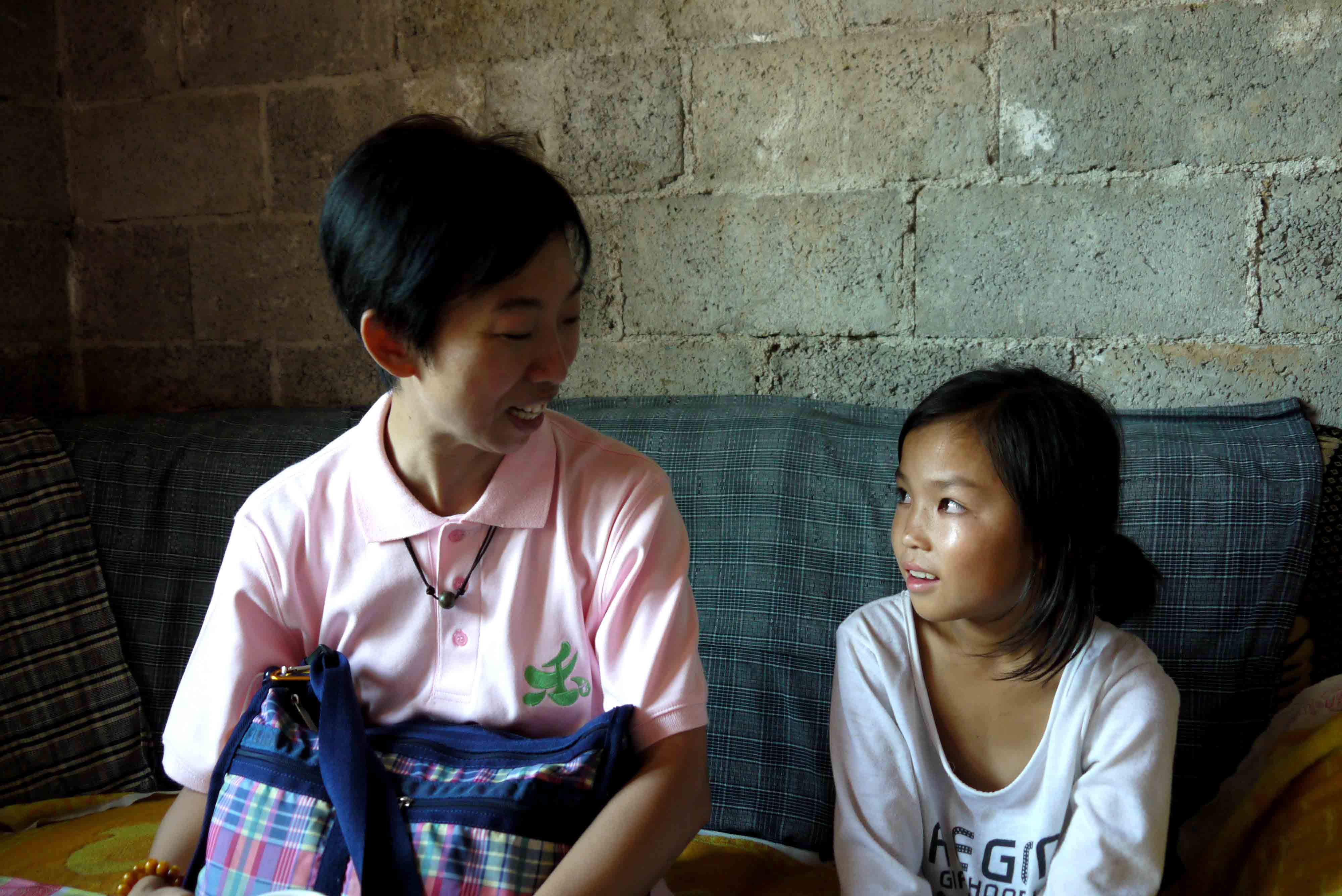 師父:放學後會做些甚麼? 明麗:放學後做家務,帶弟弟,洗碗,上山坡放牛。 師父:弟弟聽話嗎? 明麗:弟弟聽話。