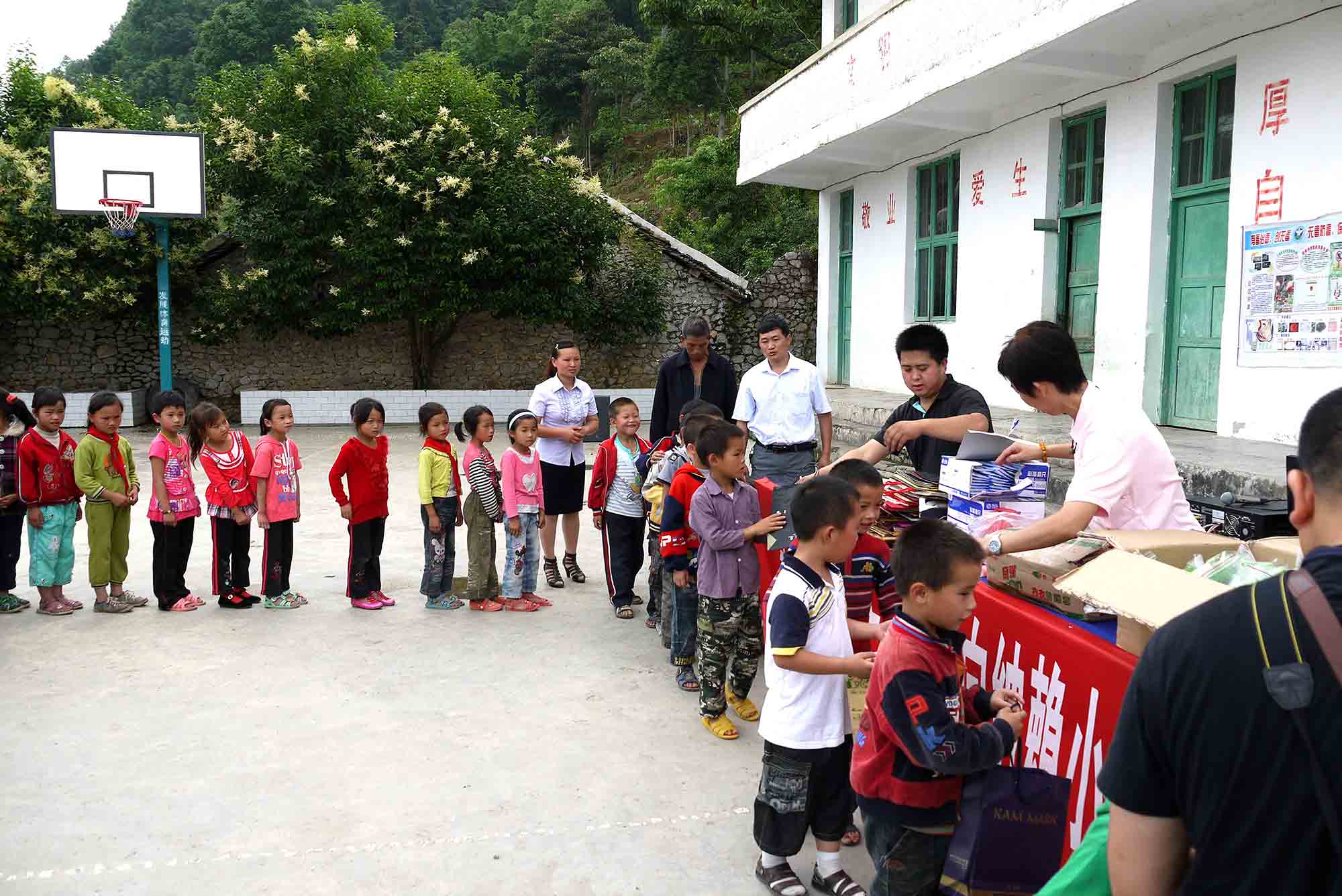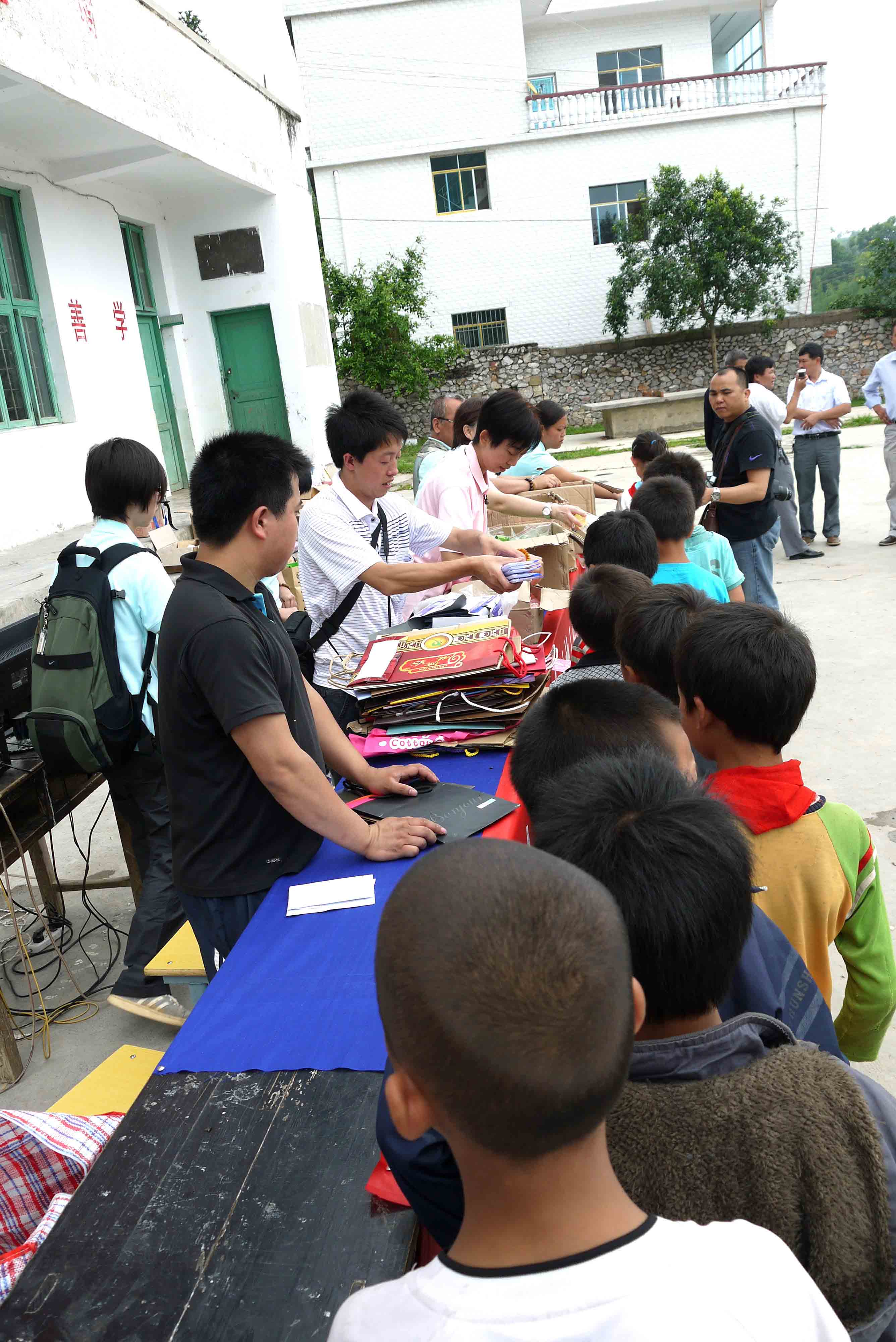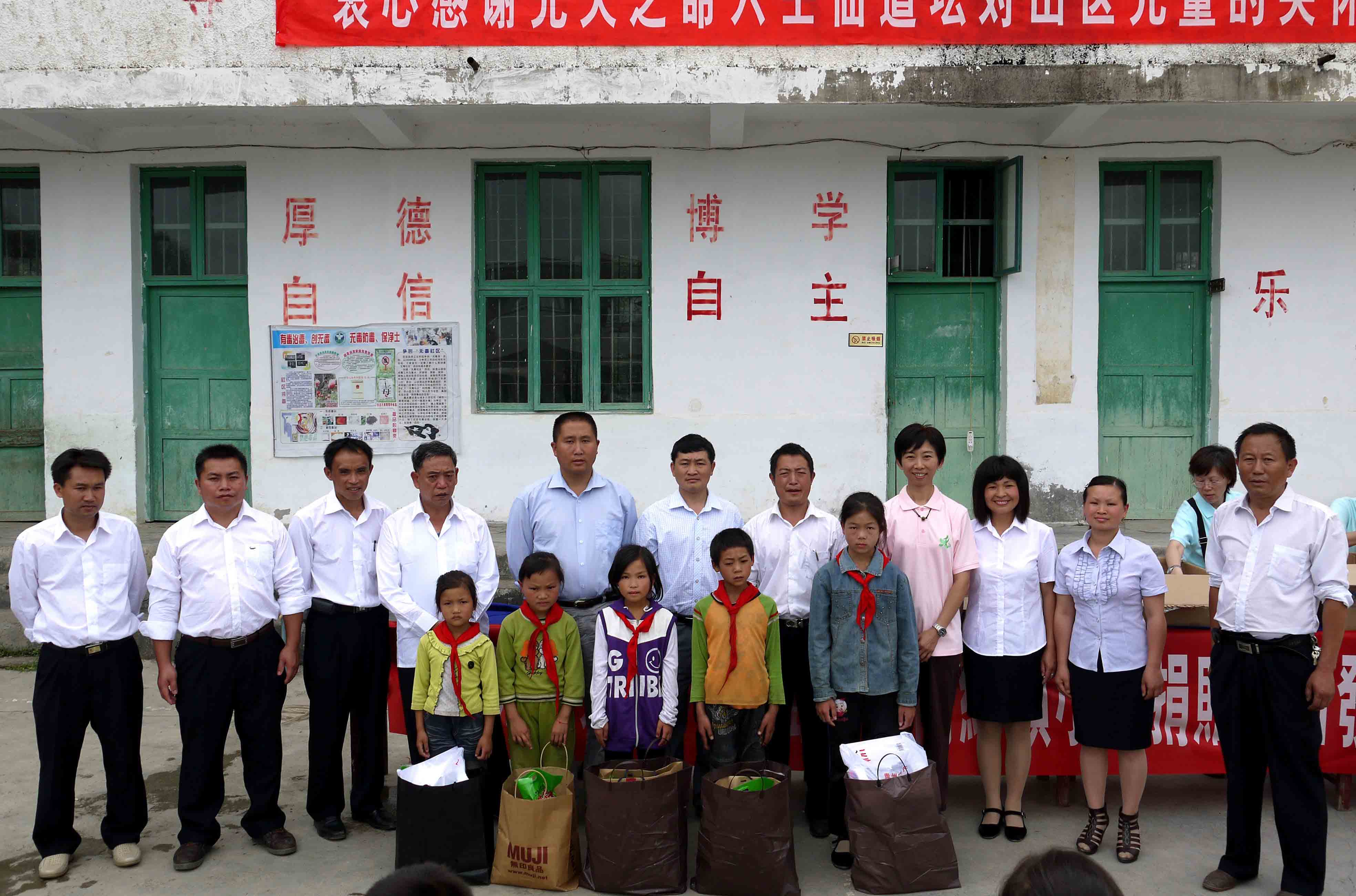 分發結緣物資時,納賴小學的老師、毛草坪小學劉波校長、劉敏也落力幫忙,善能感染人,連負責開車的師傅也自動請纓幫手,感恩!除每位同學一份結緣品外, 師父還另外結緣貧困戶學生紅包、家庭日用品和食用品。感恩 師父!