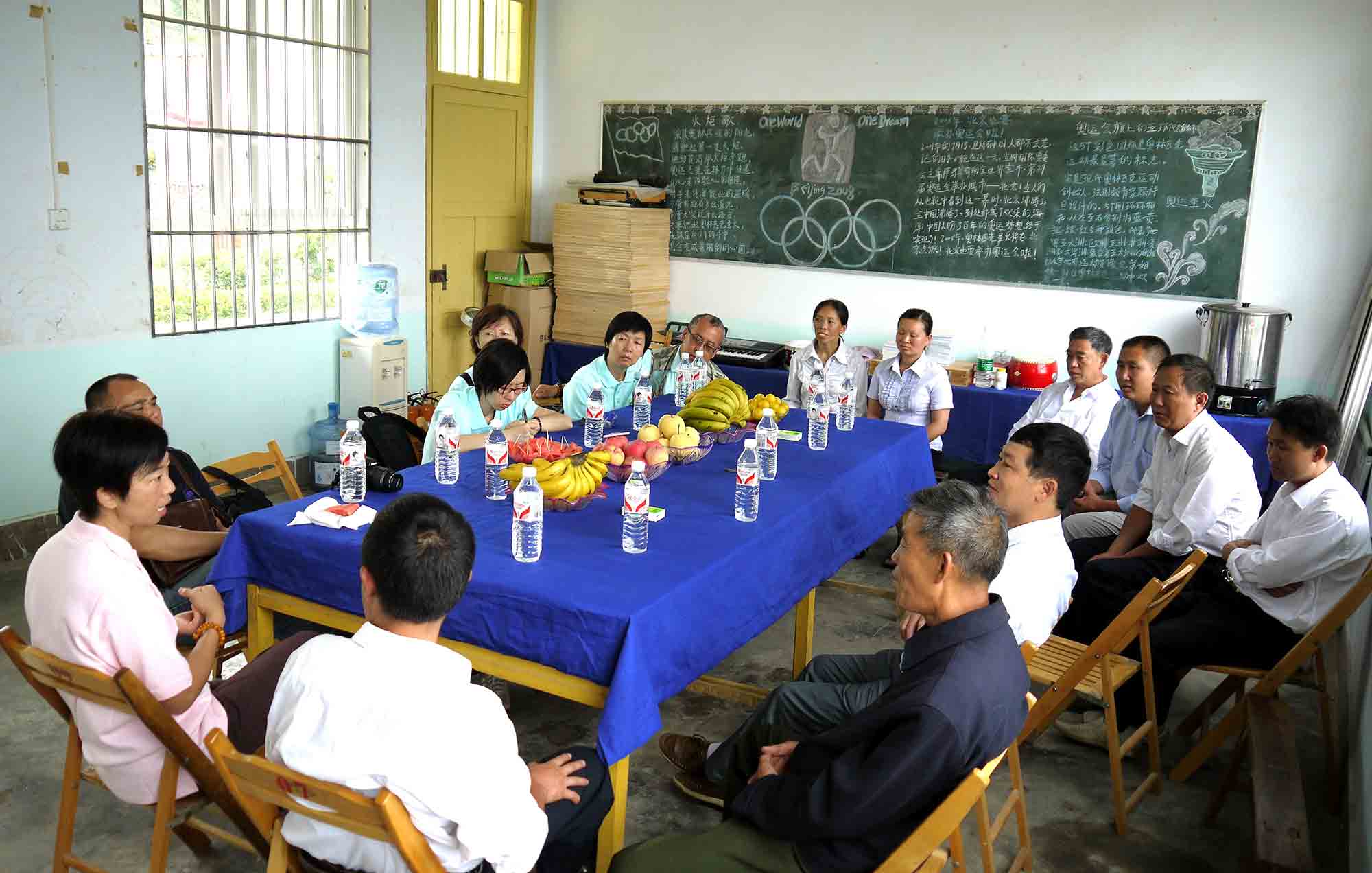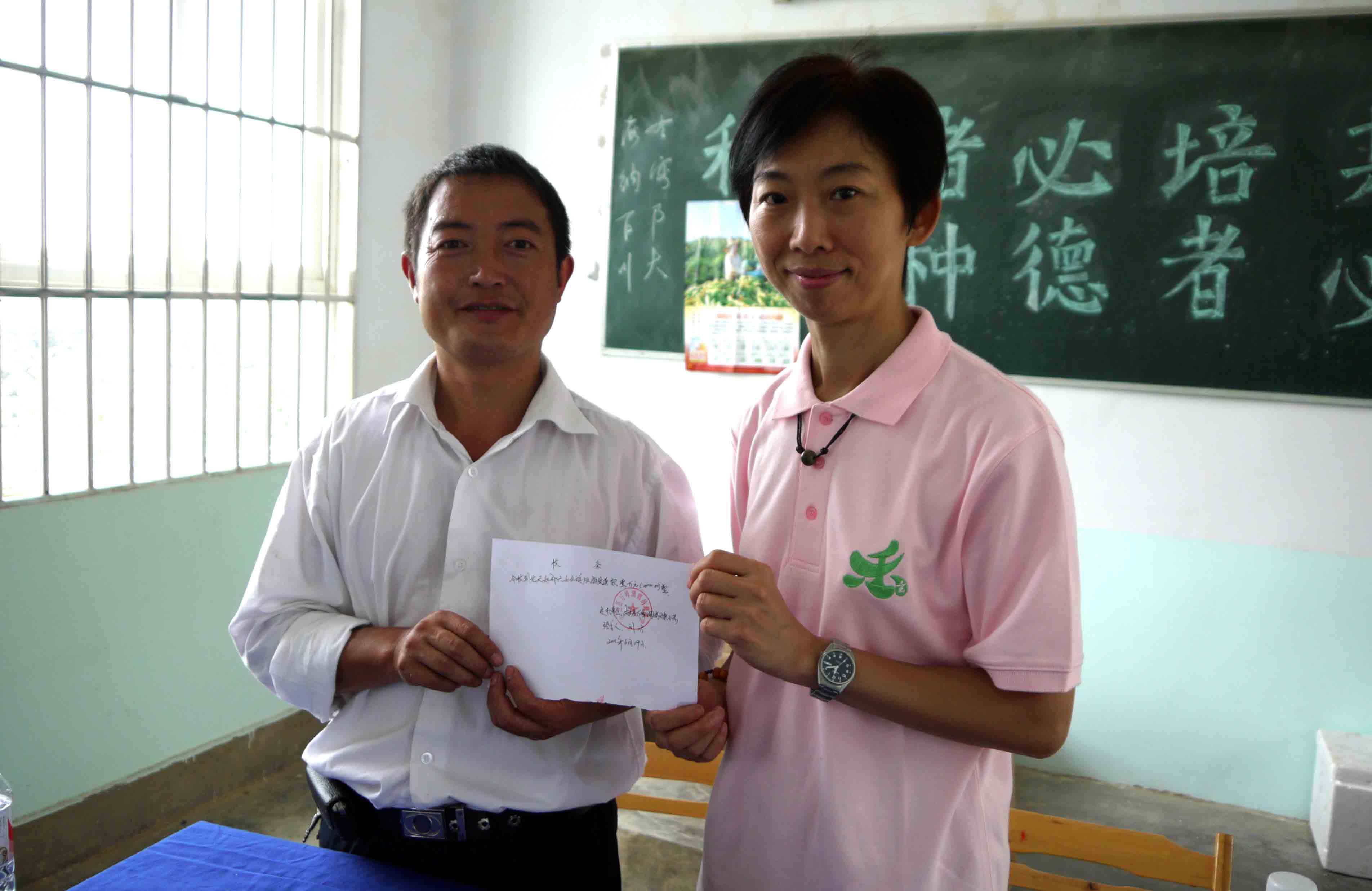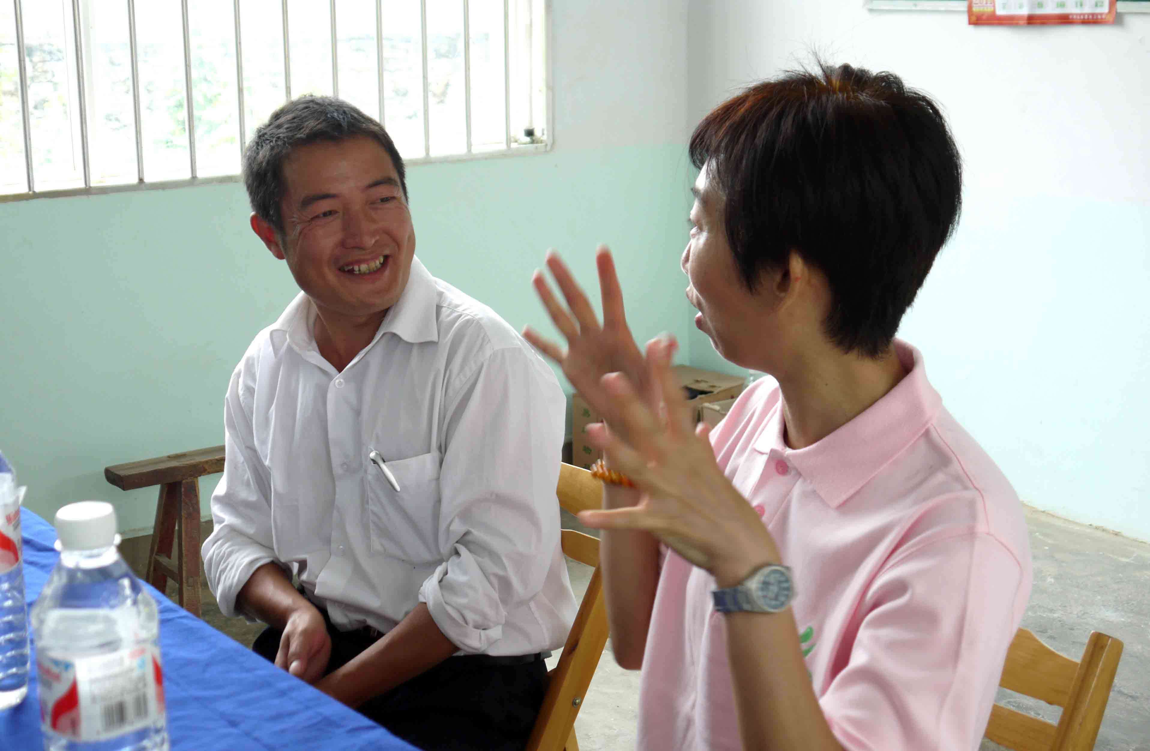師父甫到步,便與前書記、退休領導王主任、納賴小學劉方校長(右二)、毛草坪小學劉波校長、關山小學查連敏校長、納賴小學老師們作交流。 師父:「接近大自然是最美好的,人沒有受污染,純樸。大自然生活的人開心,香港生活愁眉苦臉,因為覺得苦。這裏的小孩,見到的都是笑臉,充滿希望。看到校長、老師愛學生的心,覺得山區學生很有福。」劉方校長:「香港學生壓力很大?」 師父:「很多測驗、考試、功課,學生壓力很大,不開心。」劉波校長:「這裏的學生單純,沒有上網。曾經有一名學生父母照顧得太好,孩子只顧讀書就可以了,終於考上了北大,但自理能力太差,連排隊打飯也不懂,在北大讀了半年,學校要求他休學半年,學好(照顧自己)了回去再讀。」 師父:「很希望香港澳門的學生到山區探訪。」最後, 師父將港澳的善心捐款捐贈納賴小學。感恩 師父!