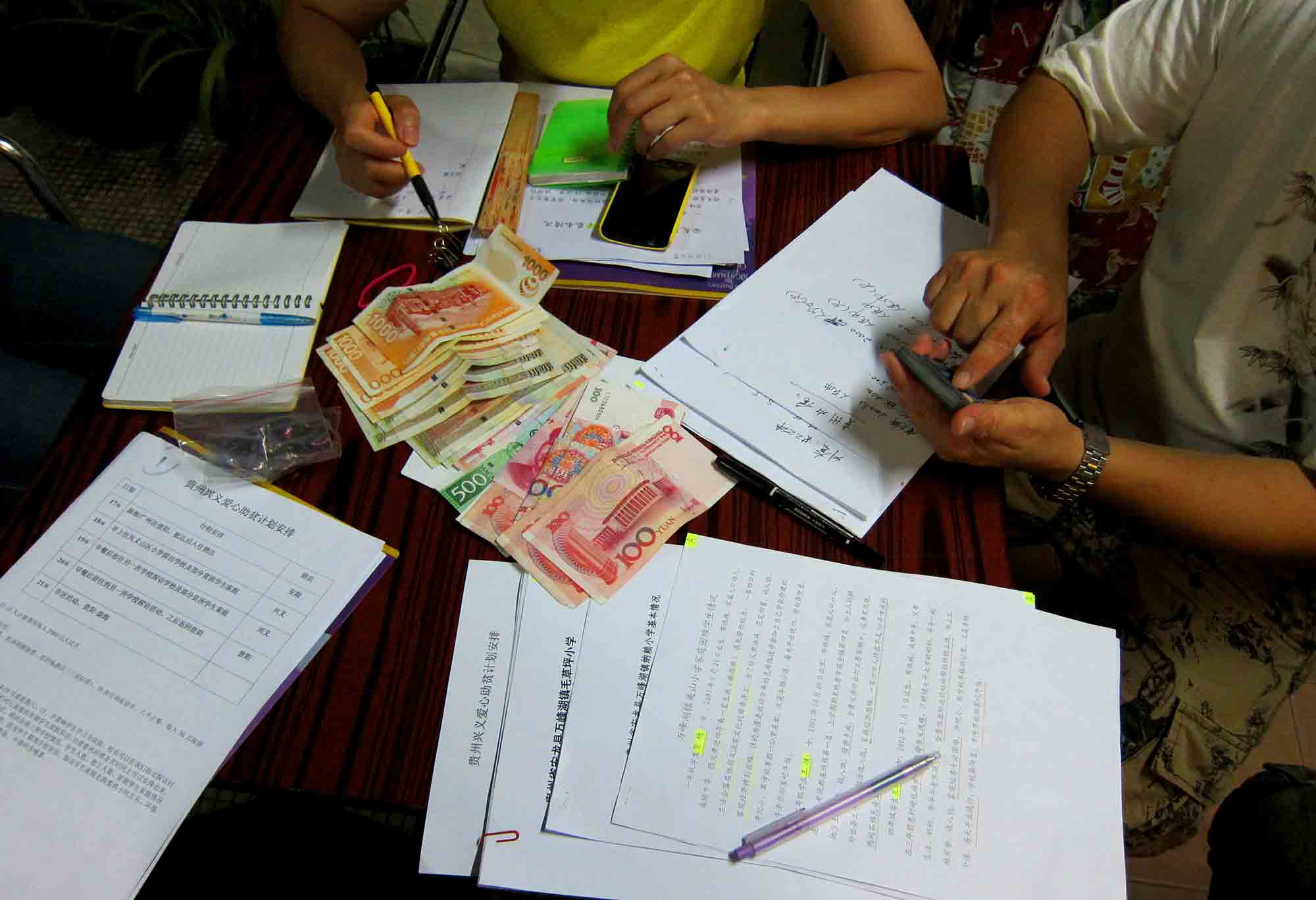 師父帶領弟子嚴謹籌劃是次功德旅程,功德旅程絕不是「去旅行」出埠玩樂,而是盡能力幫助有需要的人;更重要的是, 師父希望參與的弟子們,能從旅程中有所體會和感悟,加強道心,用心精進修道。全數用於購買物質、捐助學校和山區貧困家庭的功德金,出納數額均須清楚、準確記錄,電腦存檔,而部份物質亦會在出發前先托運到貴州,是次運送的主要是經過整理的二手衣物。感恩 師父!