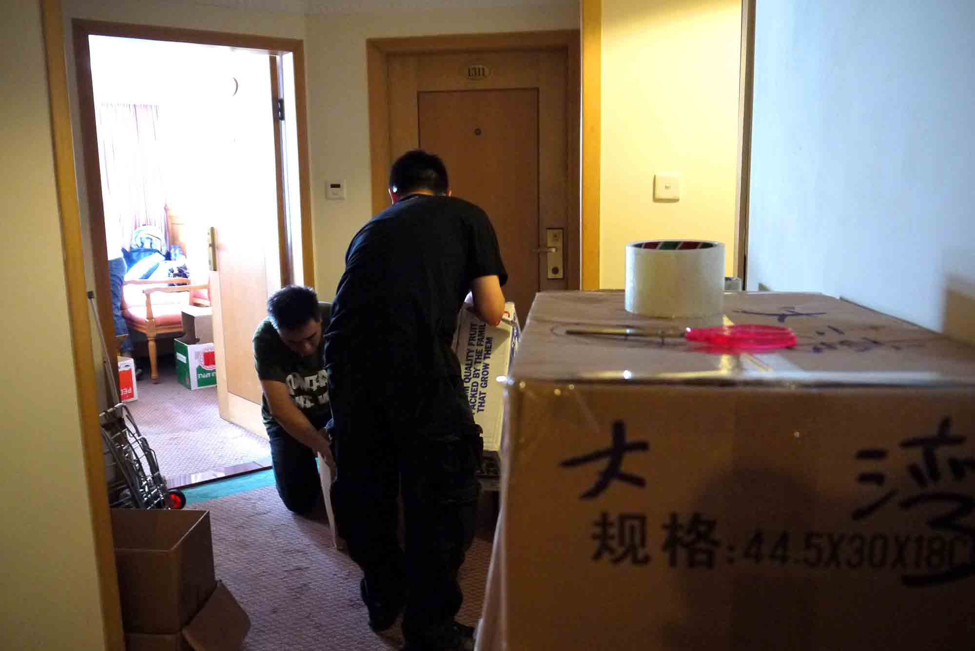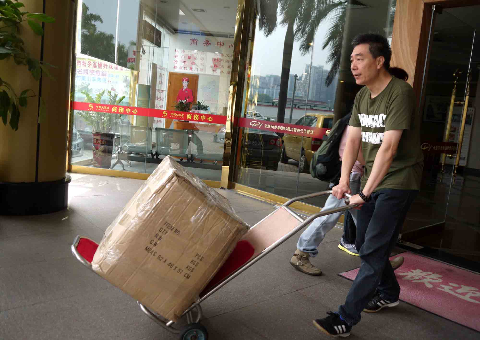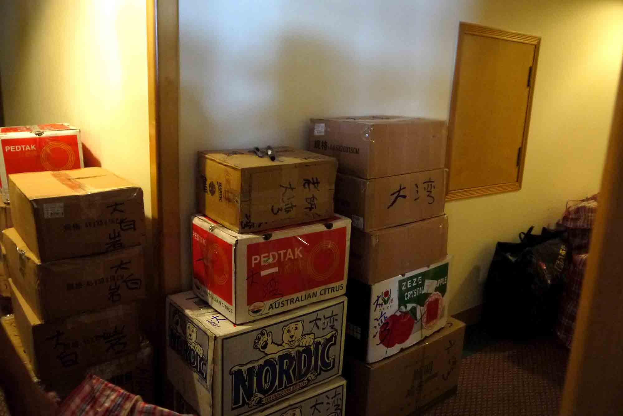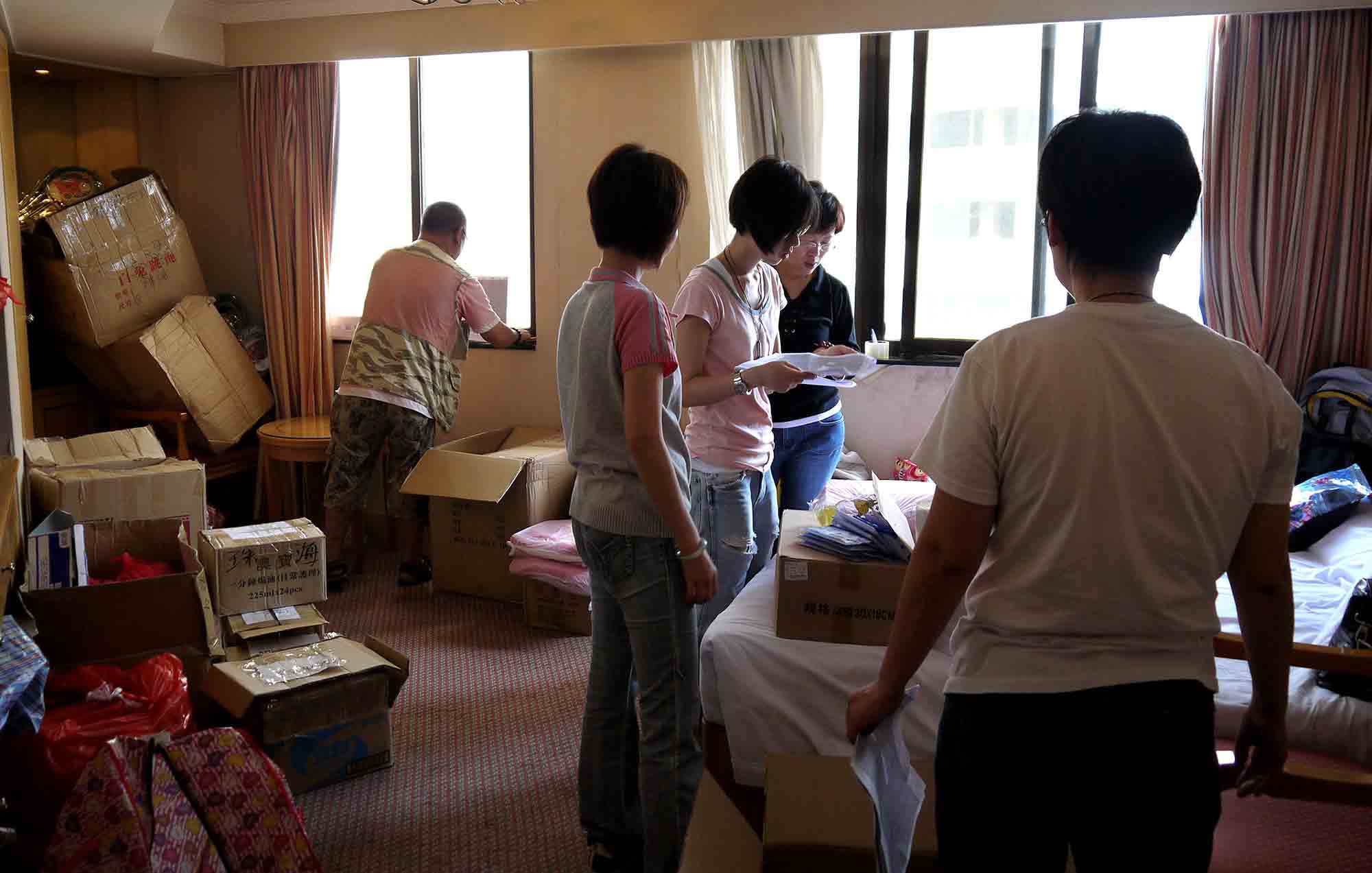 於珠海一酒店房間內,我們正準備寄往貴州山區學校的部份物資。大家同心協力,無分彼此,將物資分類包裝,準備托運寄給貴州四間山區小學共7個教學點,為的是將希望和關愛送給山區小孩。感恩 師父!到達托運公司,我們將小盒的物資歸一入在紅白藍大袋裡,再在每一袋/箱上貼上正確的寄貨地址,以確保物資不會寄失。
