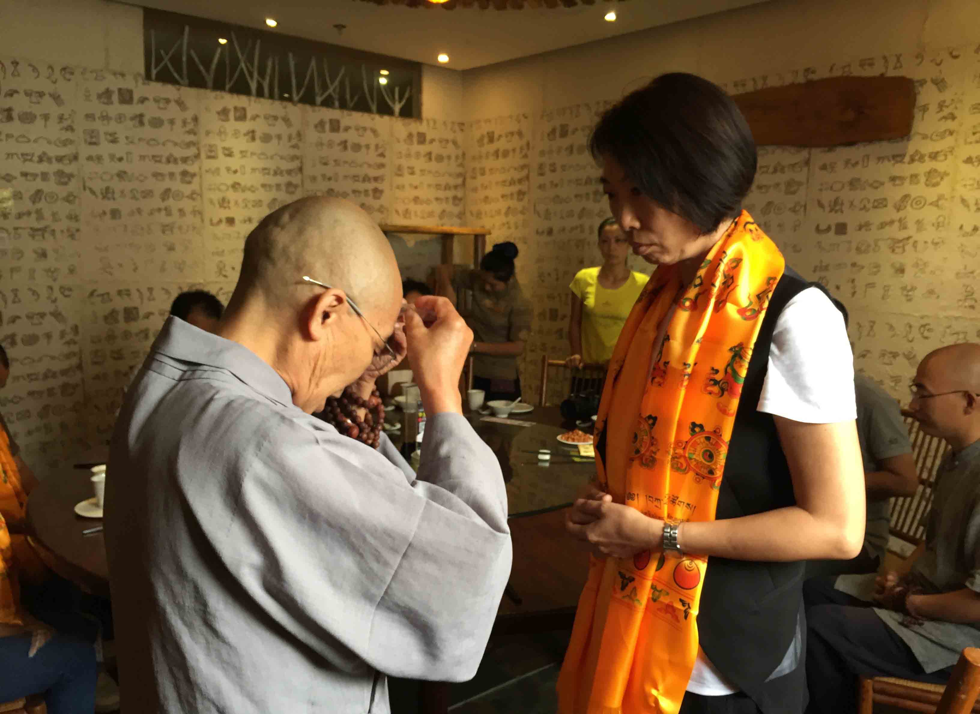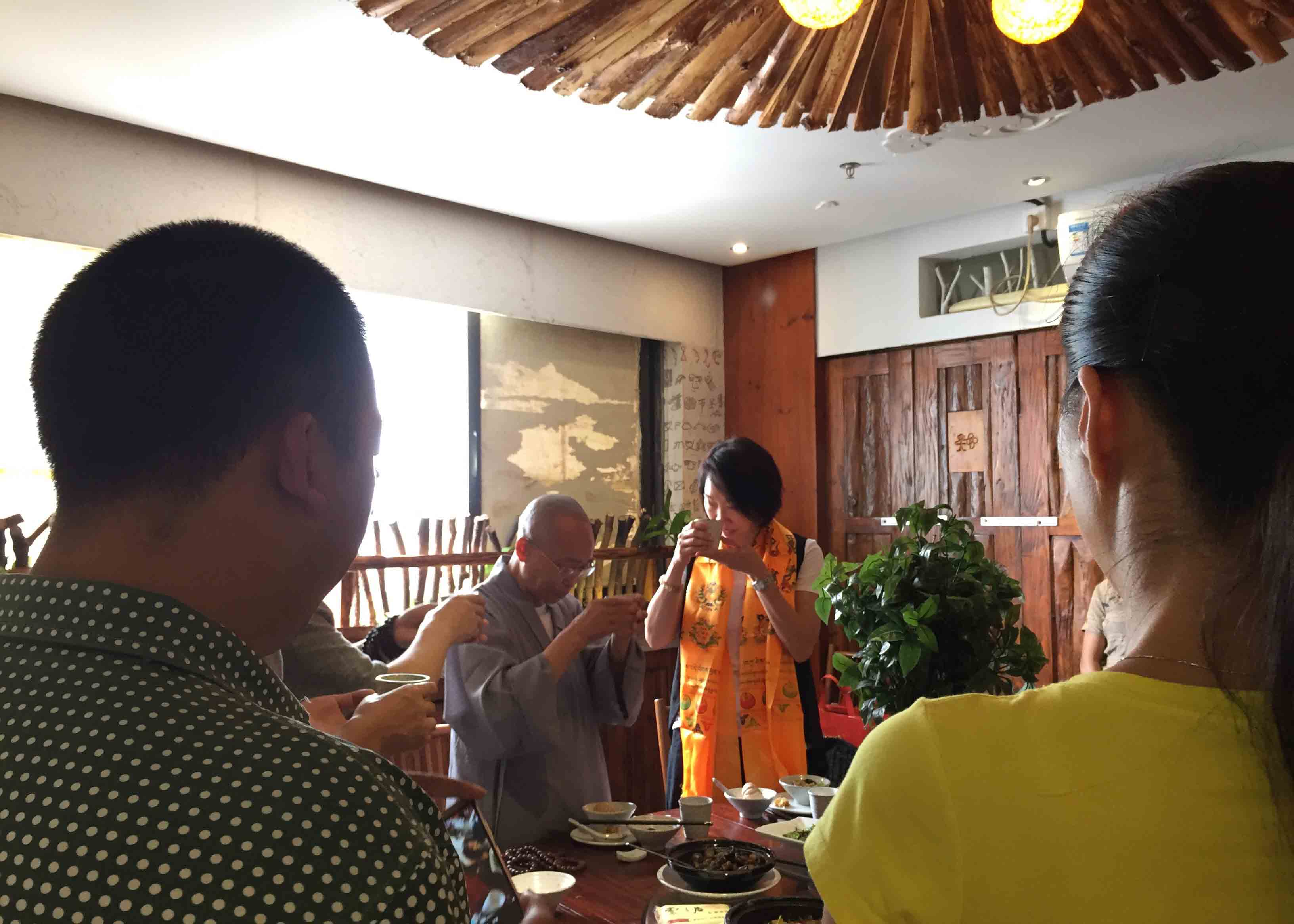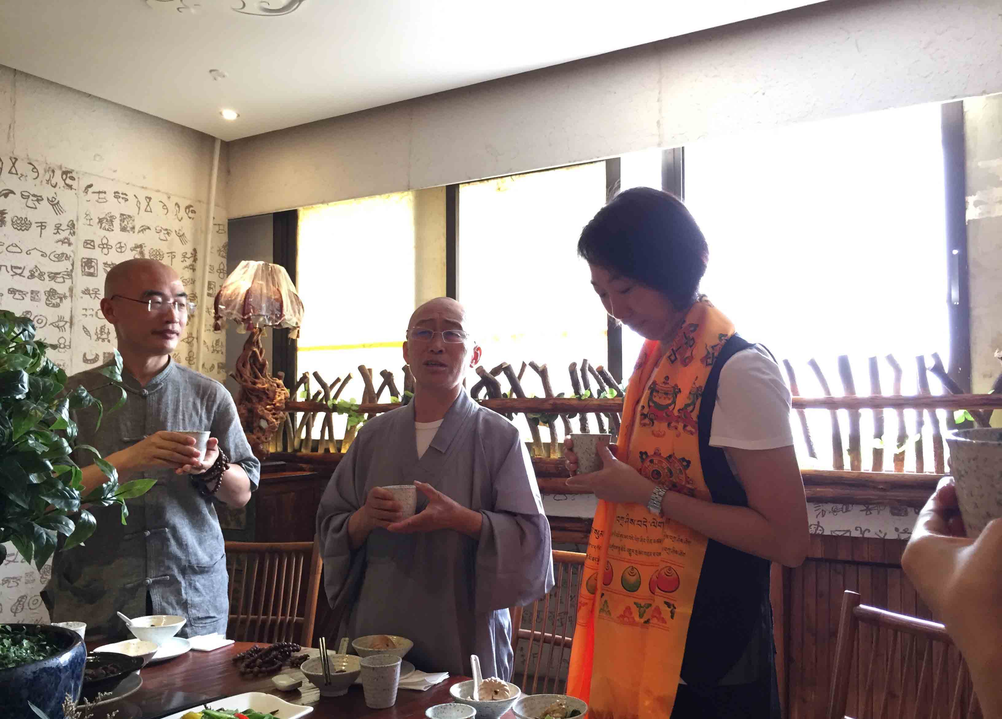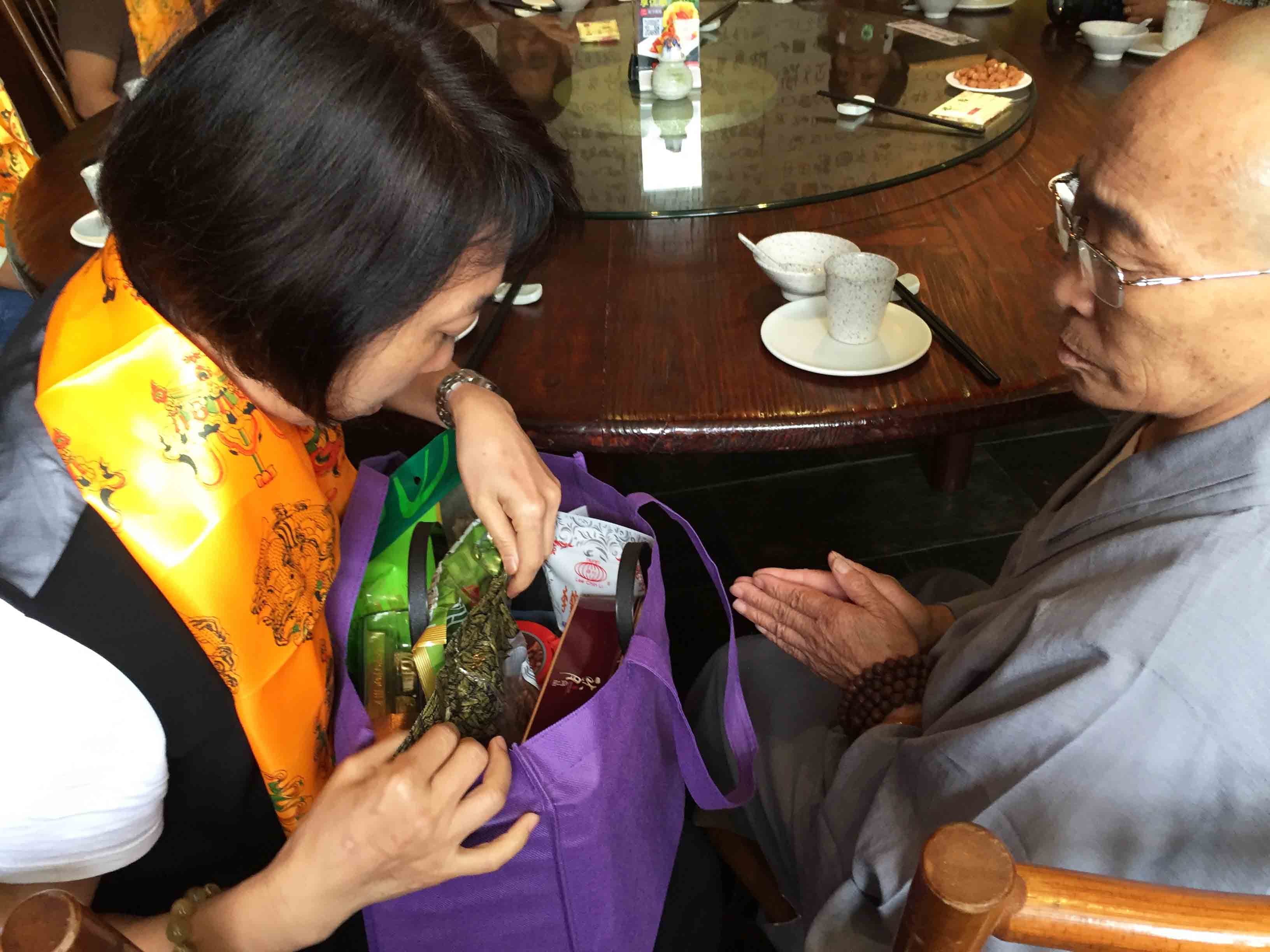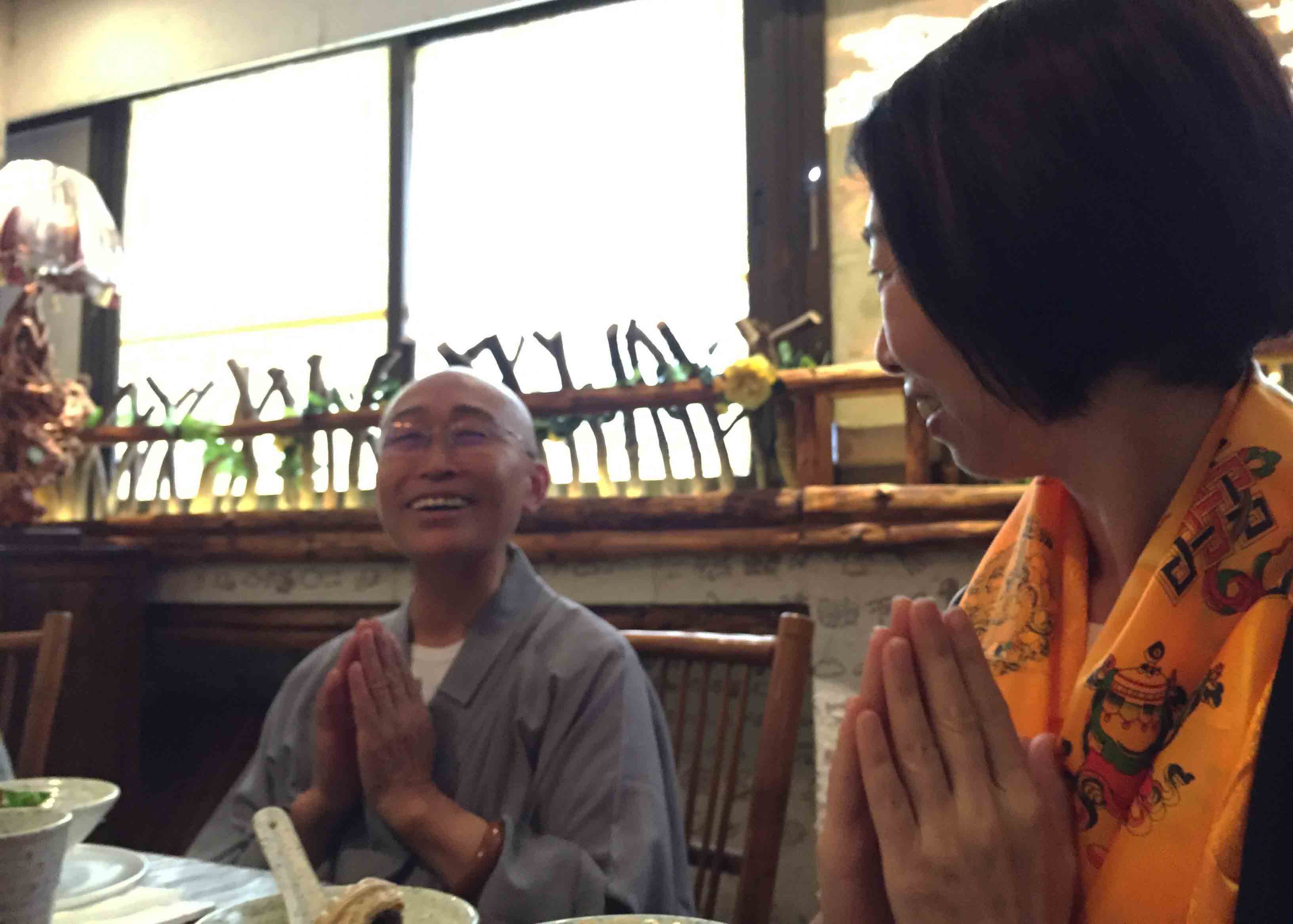 師父與四川寶興永福寺何師傅道緣始於2009年。 師父帶領弟子、善信眾到訪永福寺,當時 何師傅外訪並未在廟,經廟方人員同意, 師父帶領弟子清潔及以金絲帶、如意結等莊嚴神壇。翌年 師父再訪永福寺, 何師傅約定在廟中相聚。自始以後, 師父每年也到訪永福寺。但是,2013、14連續兩年因大雨造成山泥傾瀉,往寶興要道受到破壞而取消永福寺行程。因此, 何師傅藉著近日因道務往深圳數天,邀請 師父相聚,再續道緣。