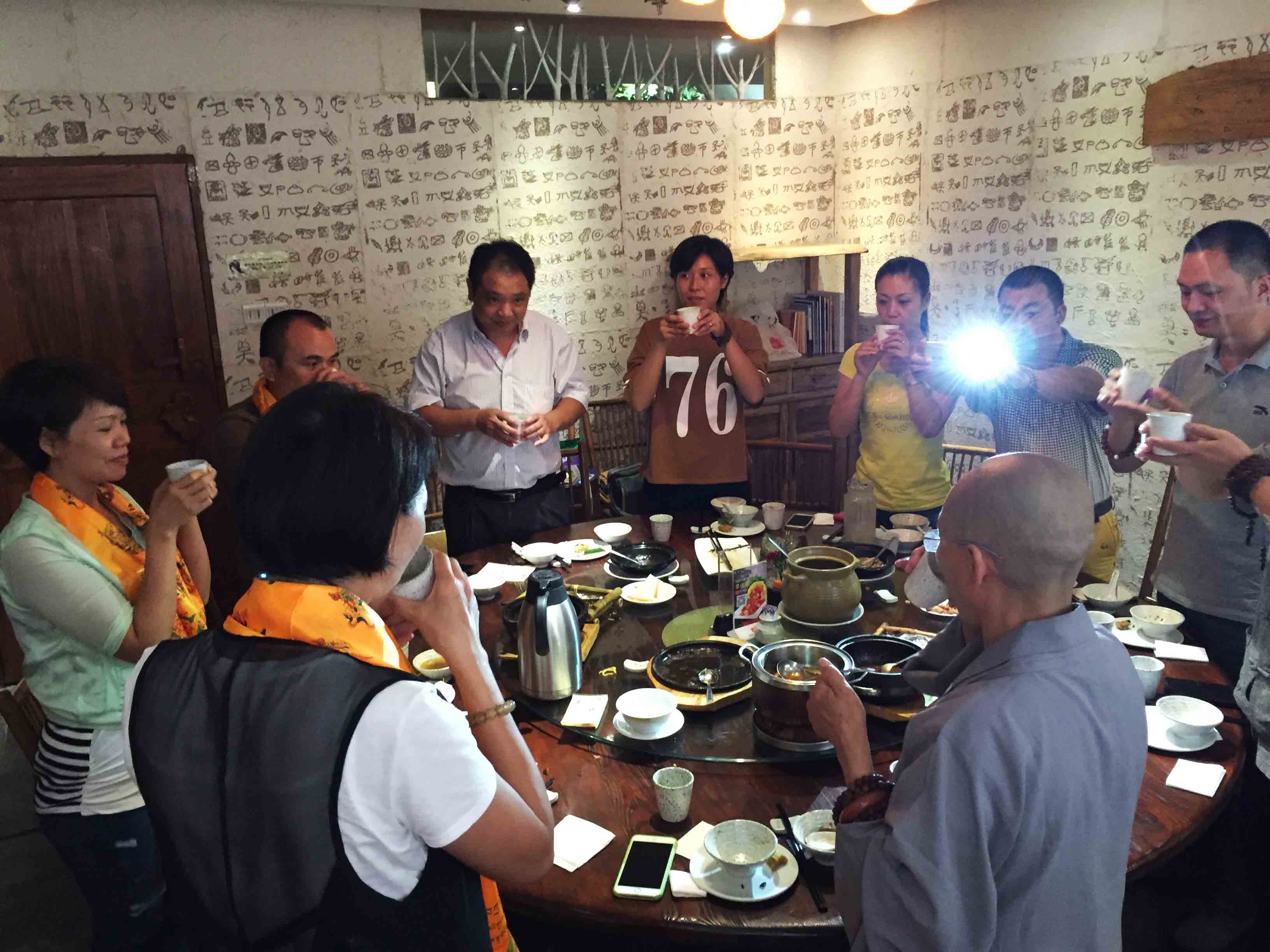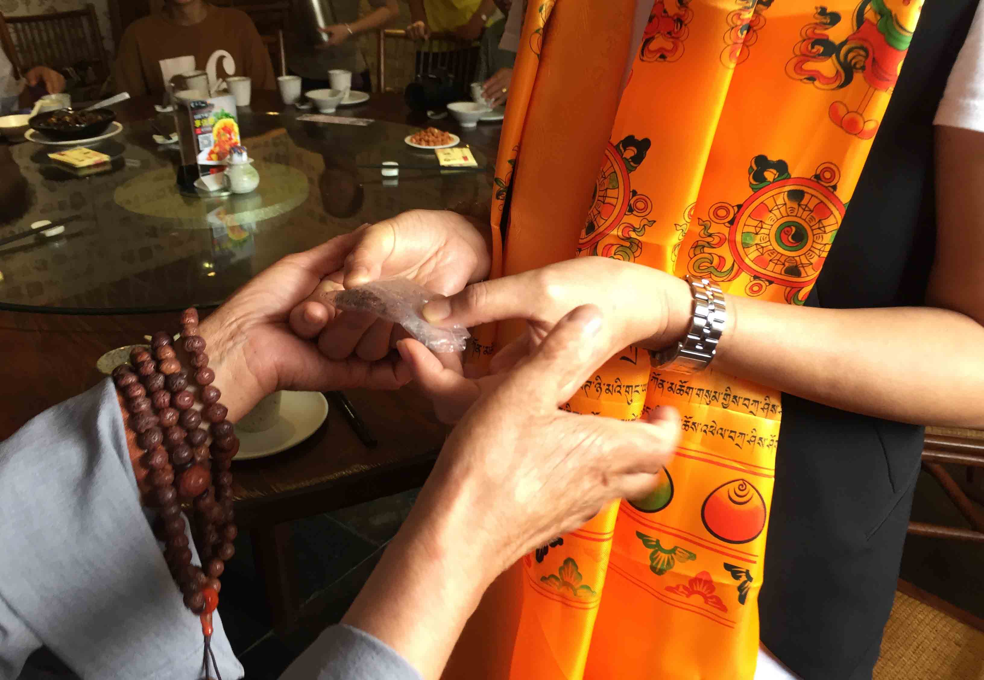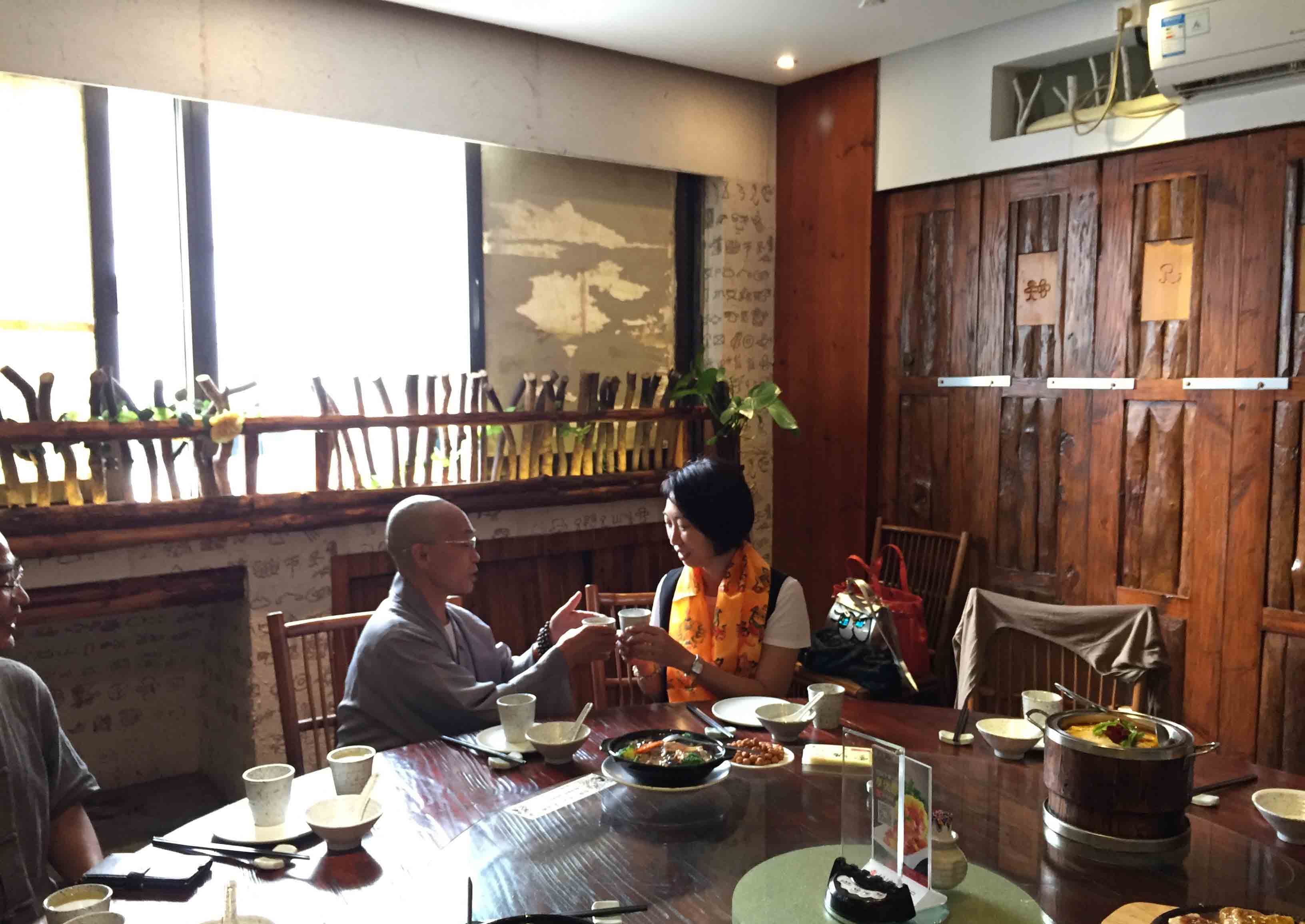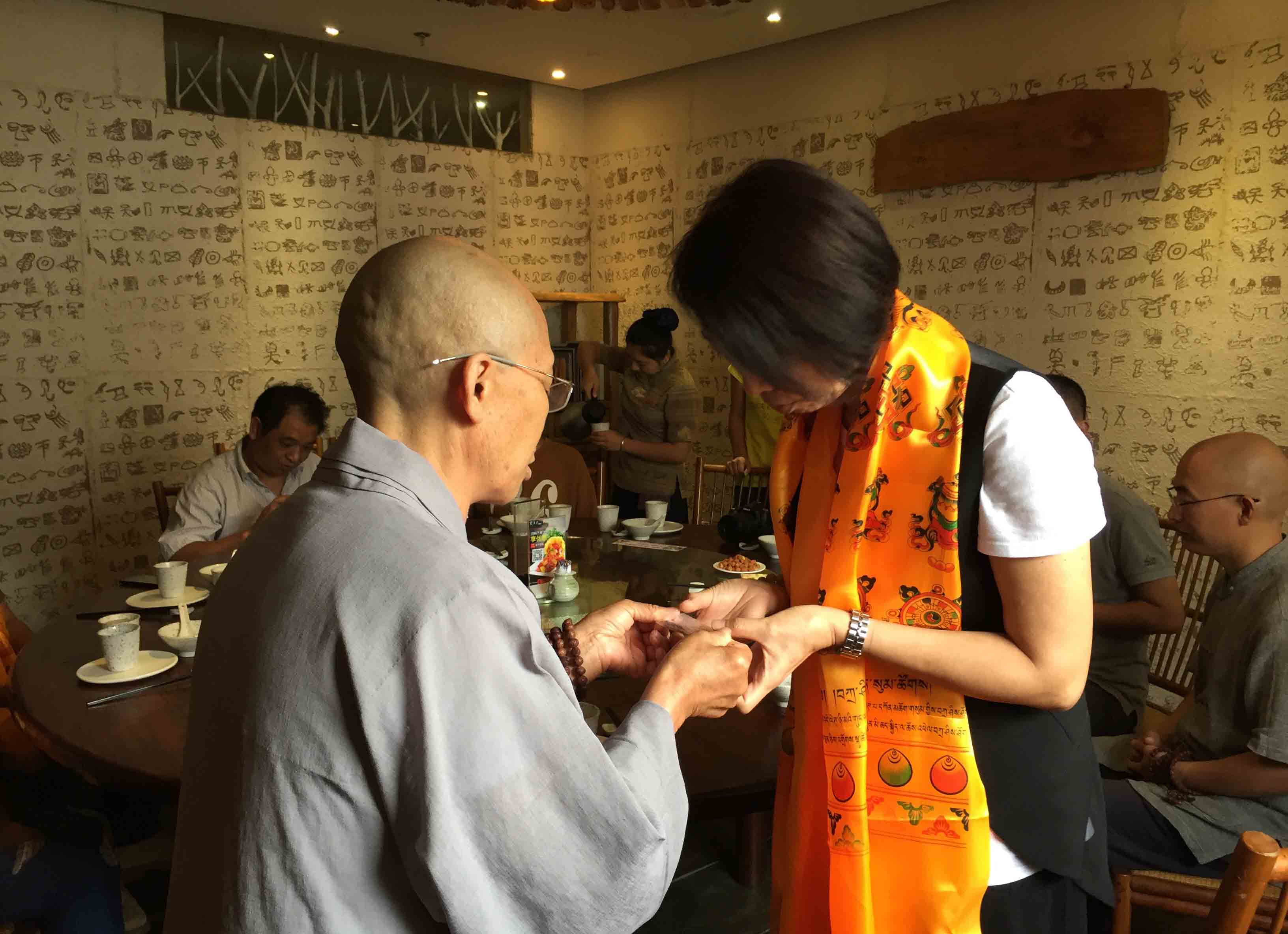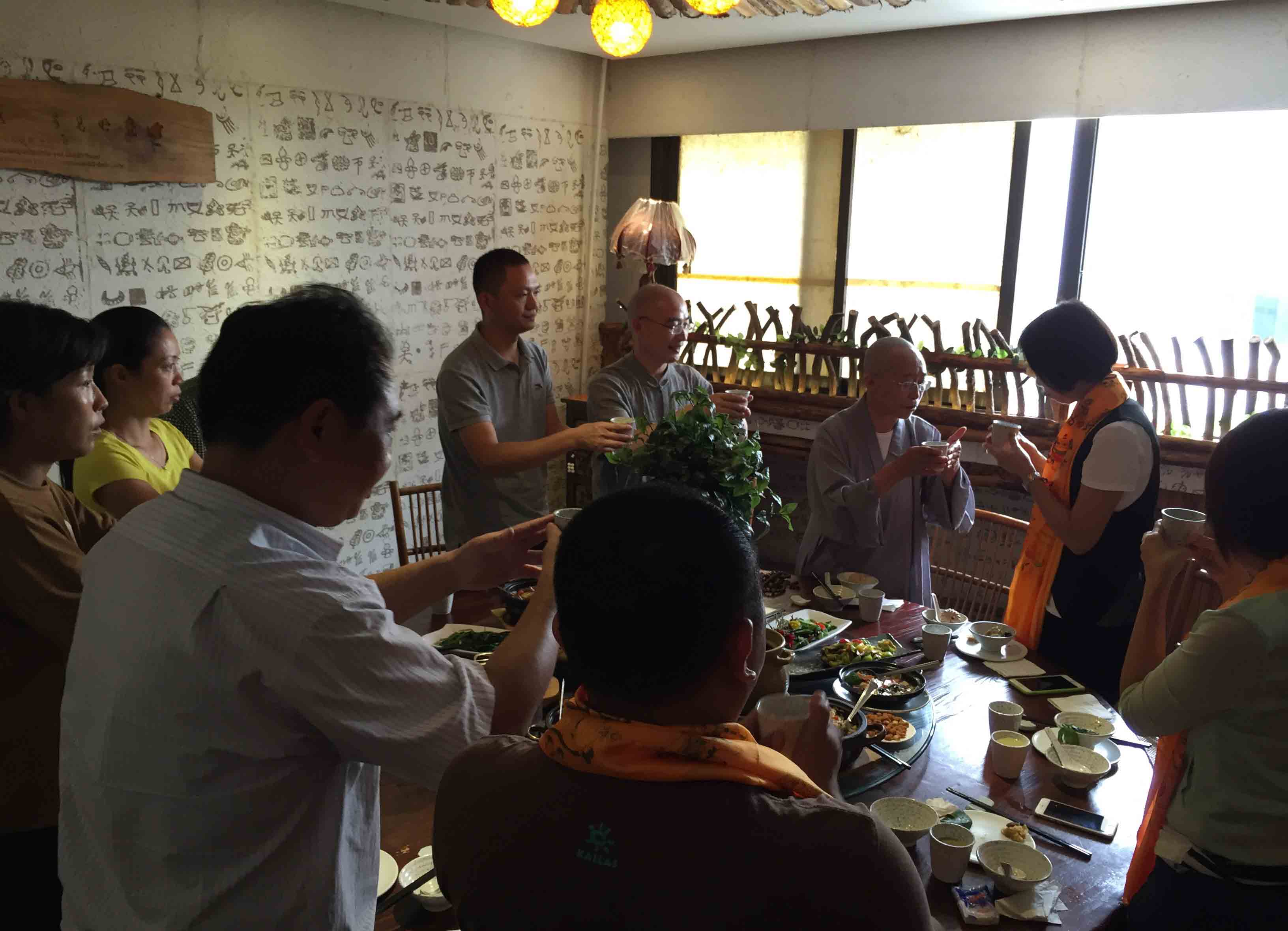 師父與四川寶興永福寺何師傅道緣始於2009年。 師父帶領弟子、善信眾到訪永福寺,當時 何師傅外訪並未在廟,經廟方人員同意, 師父帶領弟子清潔及以金絲帶、如意結等莊嚴神壇。翌年 師父再訪永福寺, 何師傅約定在廟中相聚。自始以後, 師父每年也到訪永福寺。但是,2013、14連續兩年因大雨造成山泥傾瀉,往寶興要道受到破壞而取消永福寺行程。因此, 何師傅藉著近日因道務往深圳數天,邀請 師父相聚,再續道緣。