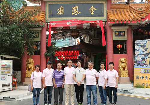 師父、 師伯與金鳳廟王主席、戴副主席、金鳳廟顧問李英俊先生(左三)、仇吉祺先生(左四)、陳清海先生(右三)、宏茂橋大樹腳大伯公廟主席劉泳江先生(右二)合照。