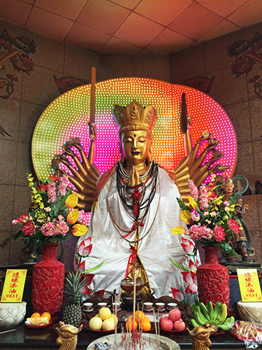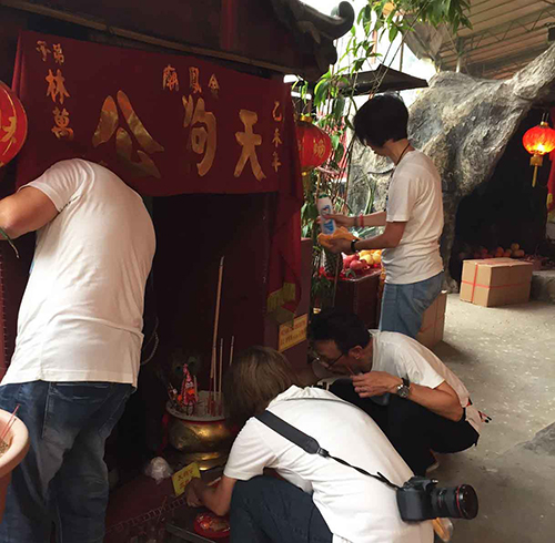 師父、師伯帶領眾人幫忙清潔金鳳廟護法 天狗公神壇。