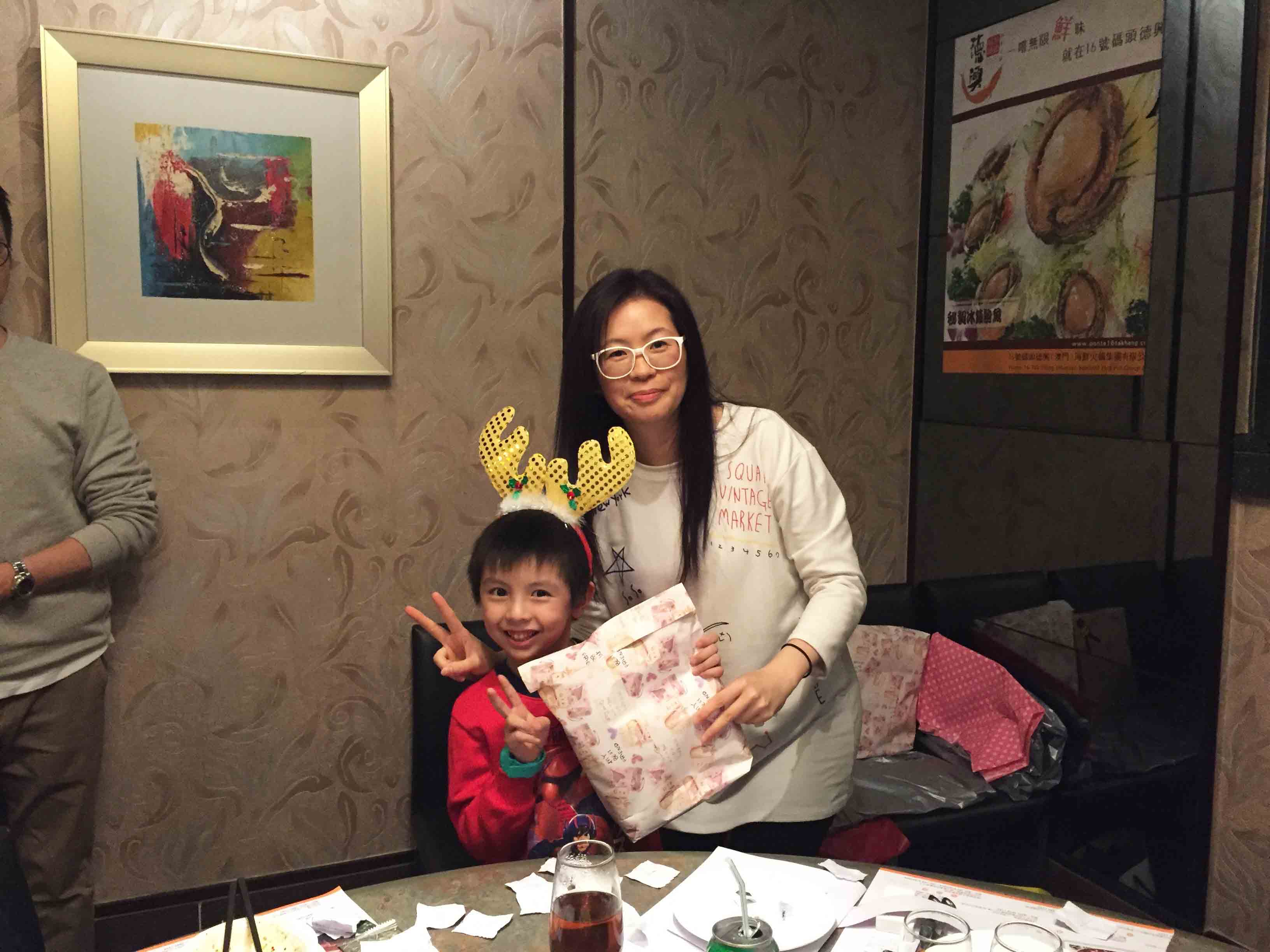 晚飯時開心交換禮物。