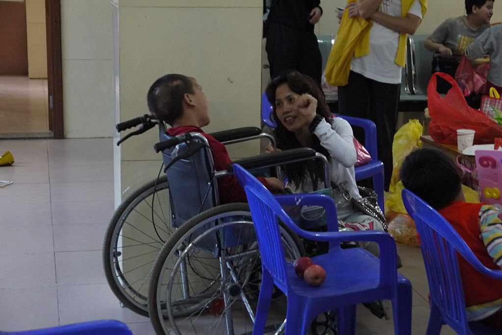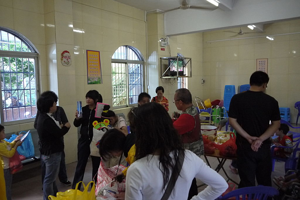 師父於探訪其間與在孤兒院工作的職員傾談,了解孤兒的情形。