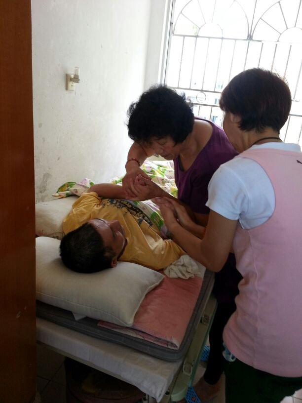 上週末, 師父與澳門的弟子,前往珠海匯合溫先生,探訪癱瘓人張俊鋒。今次已是 師父第三次探訪張俊鋒了。俊鋒今年32歲,十年前因意外而造成全身癱瘓。