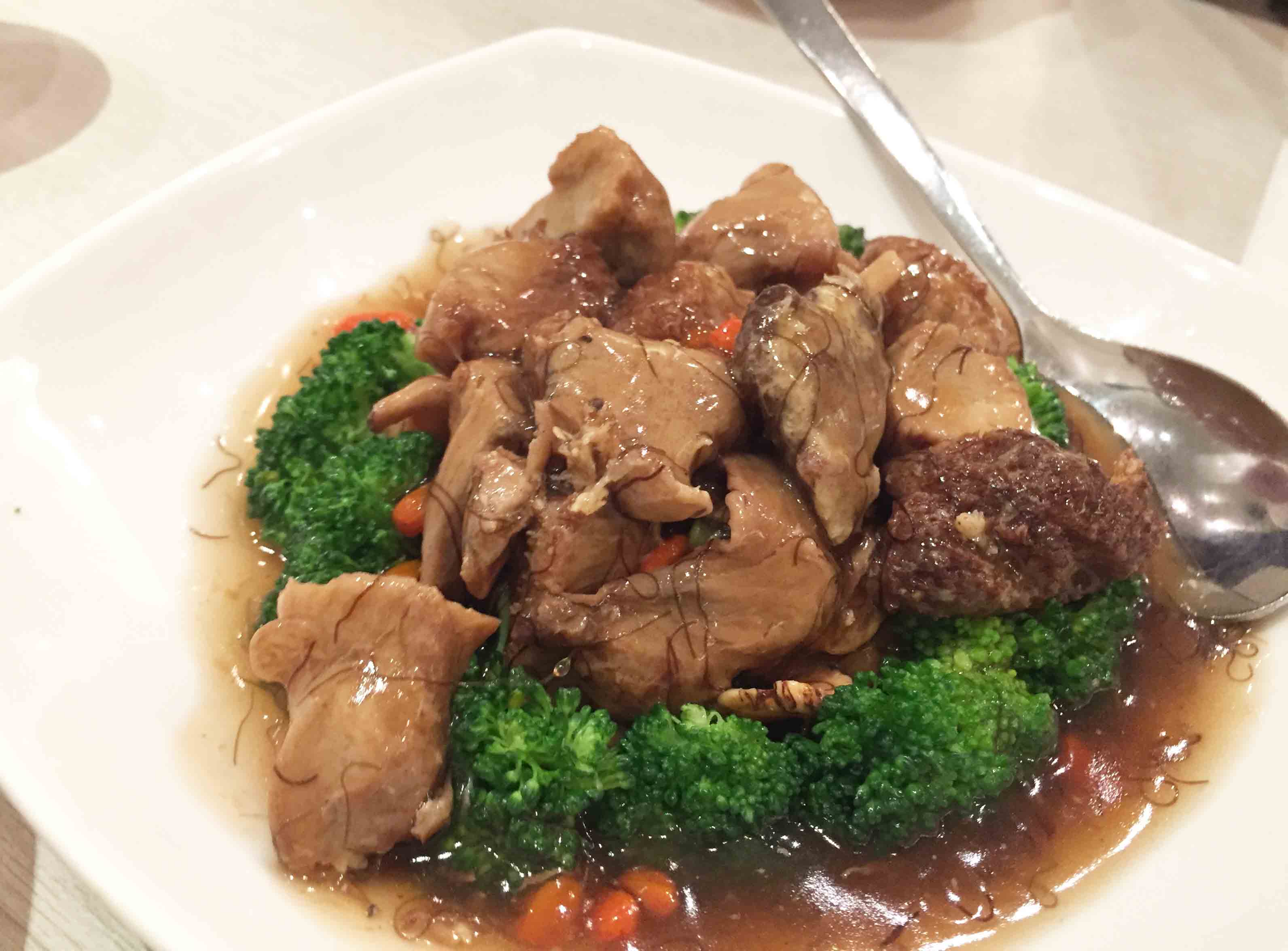 Broccoli w Braised Mockeyhead Mushroom 燉猴頭菇。