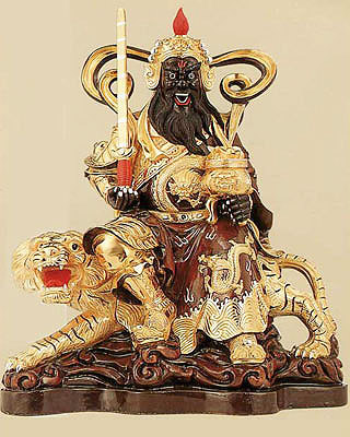 道教和世人奉祀的財神,影響最大的當推寒單爺趙公明。寒單爺是中國民間俗稱的流氓神,正確名稱是邯鄲爺,由於早年拜的人,普遍是一些地方角頭(黑社會老大),角頭識字不多,誤把邯鄲寫成寒單,甚至有寫成韓單的。據《三教搜神大全》載,趙公明神異多能,變化無窮,能夠驅雷役電,喚雨呼風,降瘟剪瘧,保命解災。故人稱「元帥之功莫大焉」。凡買賣求財,只要對趙公明祈禱,便無不稱心如意,故而中國民間奉其為財神。舊時年畫中,趙公明的形象多為頭戴鐵冠,手持寶鞭,黑面濃須,身跨黑虎,面目猙獰,因此又有人稱其為武財神。