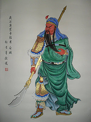 「武財神」關聖帝君即關羽關雲長。傳說關雲長管過兵馬站,長於算數,發明日清薄,而且講信用、重義氣,故為商家所崇祀,一般商家以關聖帝君為他們的守護神,同時亦被視為招財進寶的財神。信奉關帝聖君的商家,習俗上在正月初五會供上牲醴,鳴放爆竹,燒金紙膜拜,求關聖帝君保佑一年財運亨通。