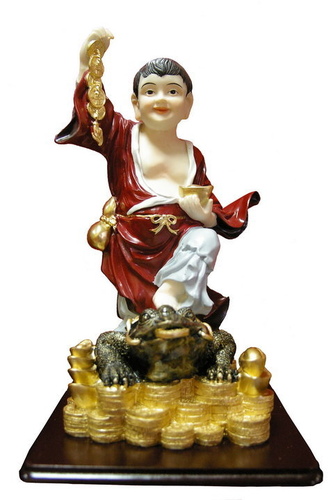 財神是道教俗神,中國民間亦流傳著多種不同版本的說法,月財神趙公明被奉為正財神;李詭祖、比干、範蠡、劉海被奉為文財神;鍾馗和關聖帝君被奉為賜福鎮宅的武財神。日春神青帝和月財神趙公明合稱為「春福」,日月二神過年時常貼在門上。