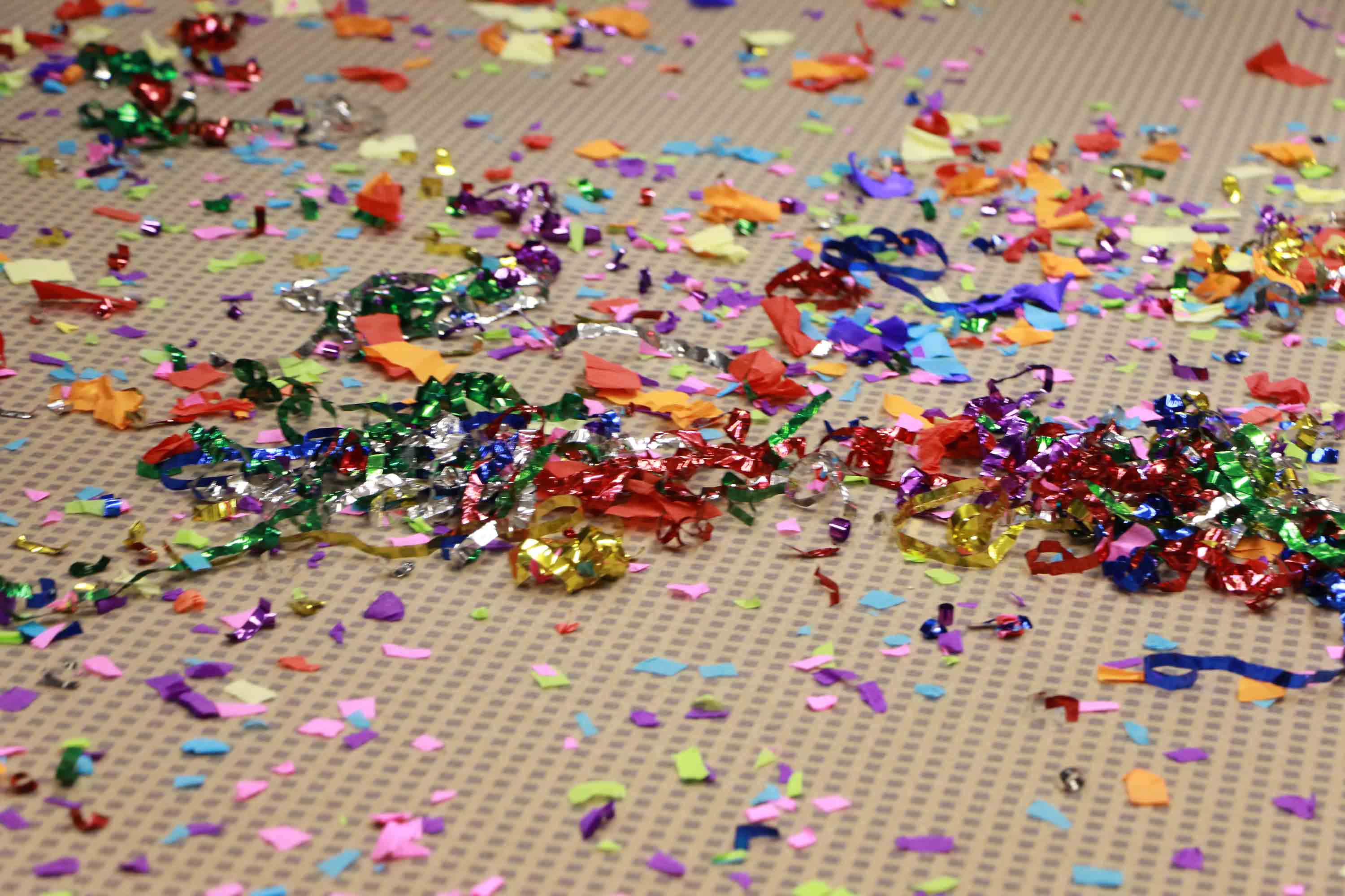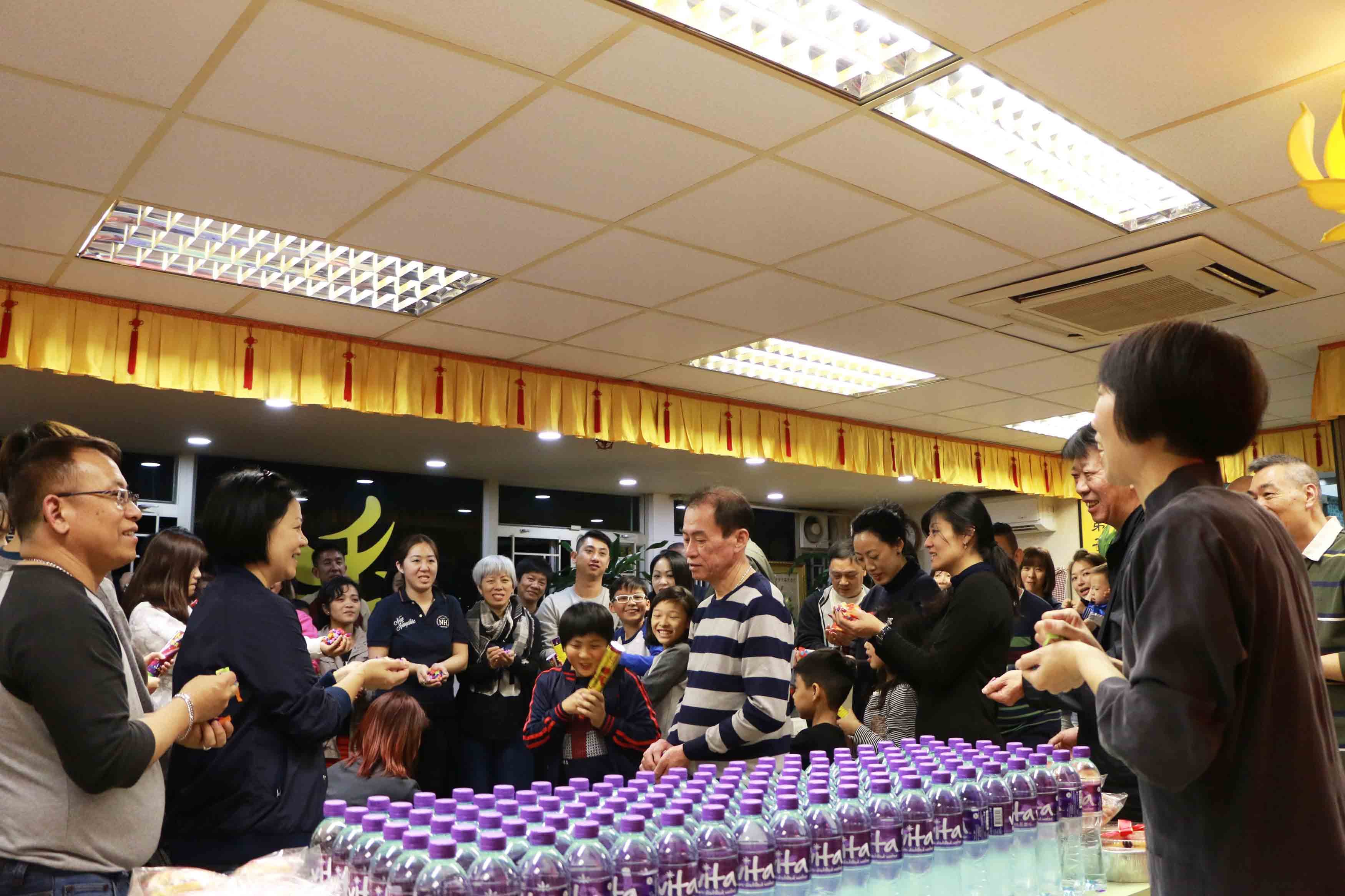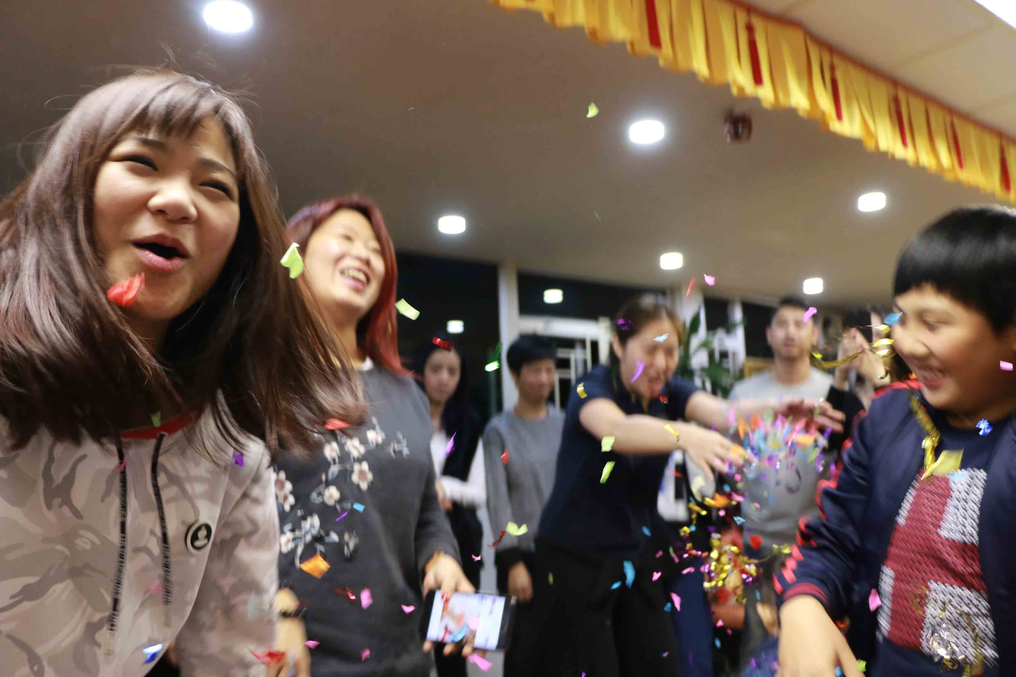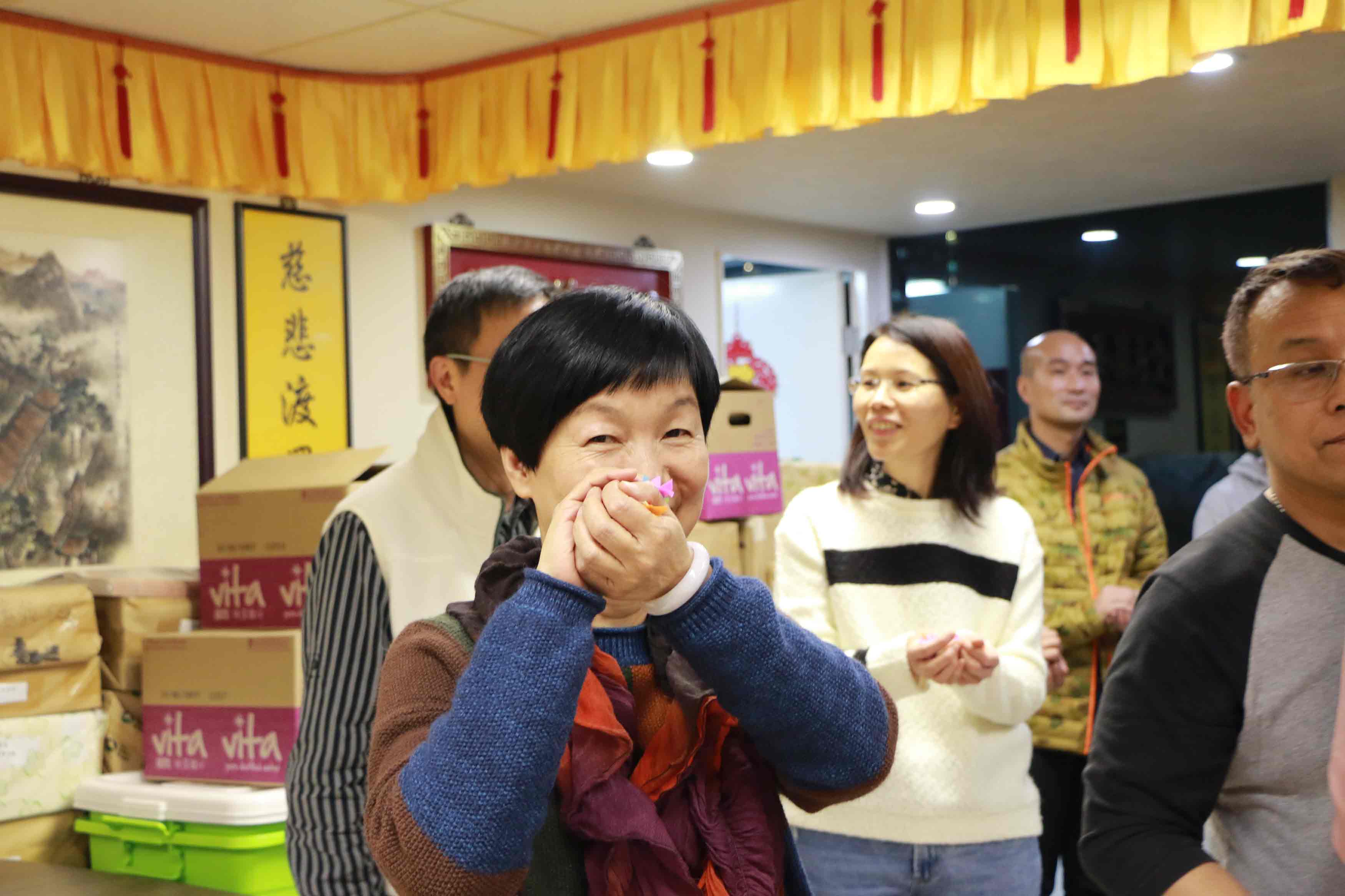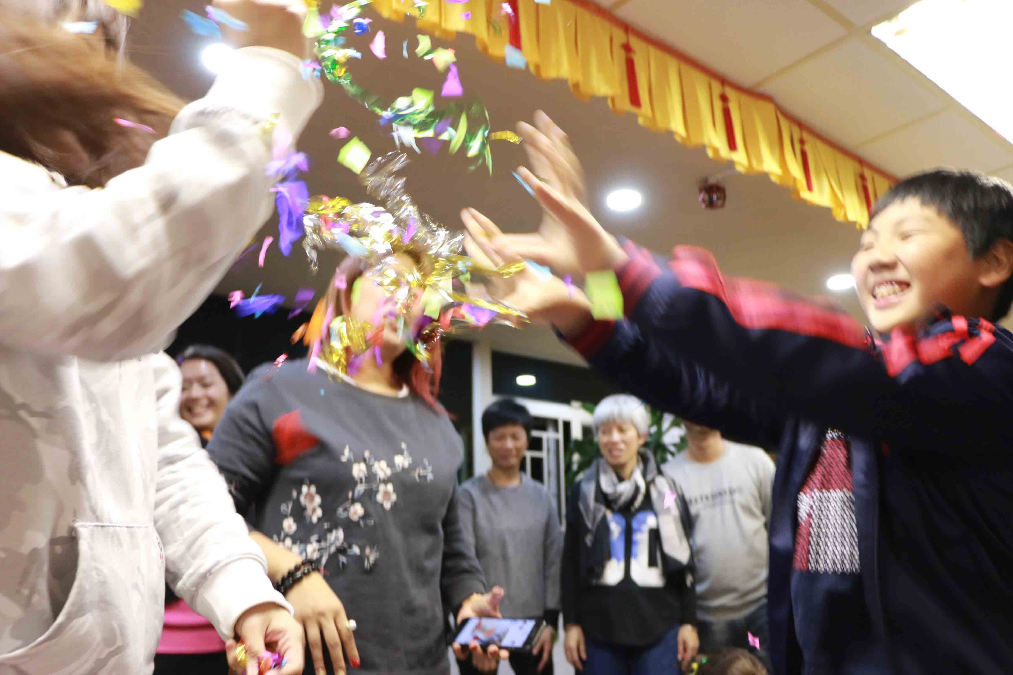 師父今年指示弟子預備「拉砲」、彩色「縐紙」,於完成祈福請神後,邀請在場弟子、善信一起將手中的彩紙用力拋出,喻意來年開開心心、充滿歡樂、事事順利、如彩紙般繽紛燦爛!