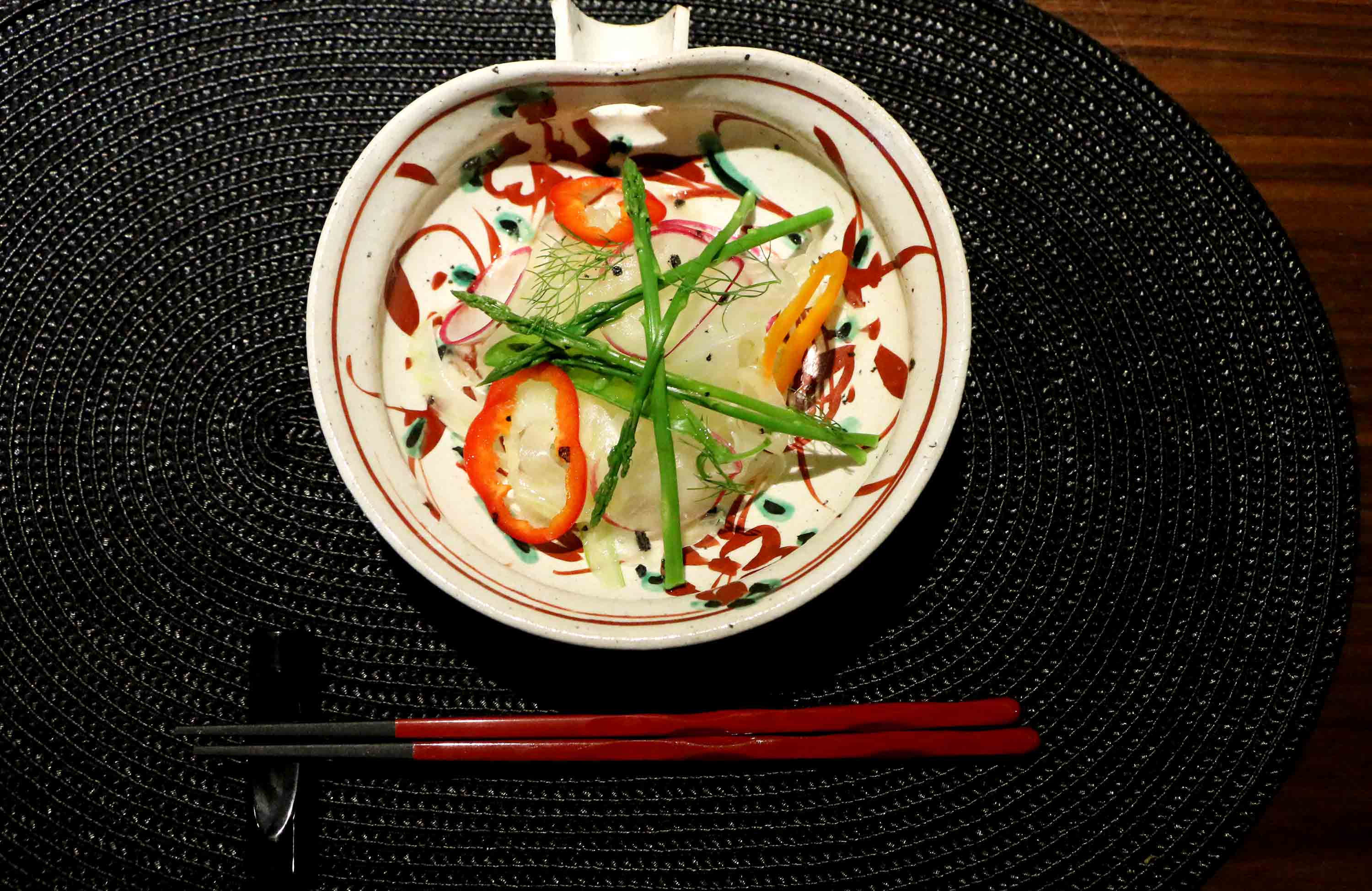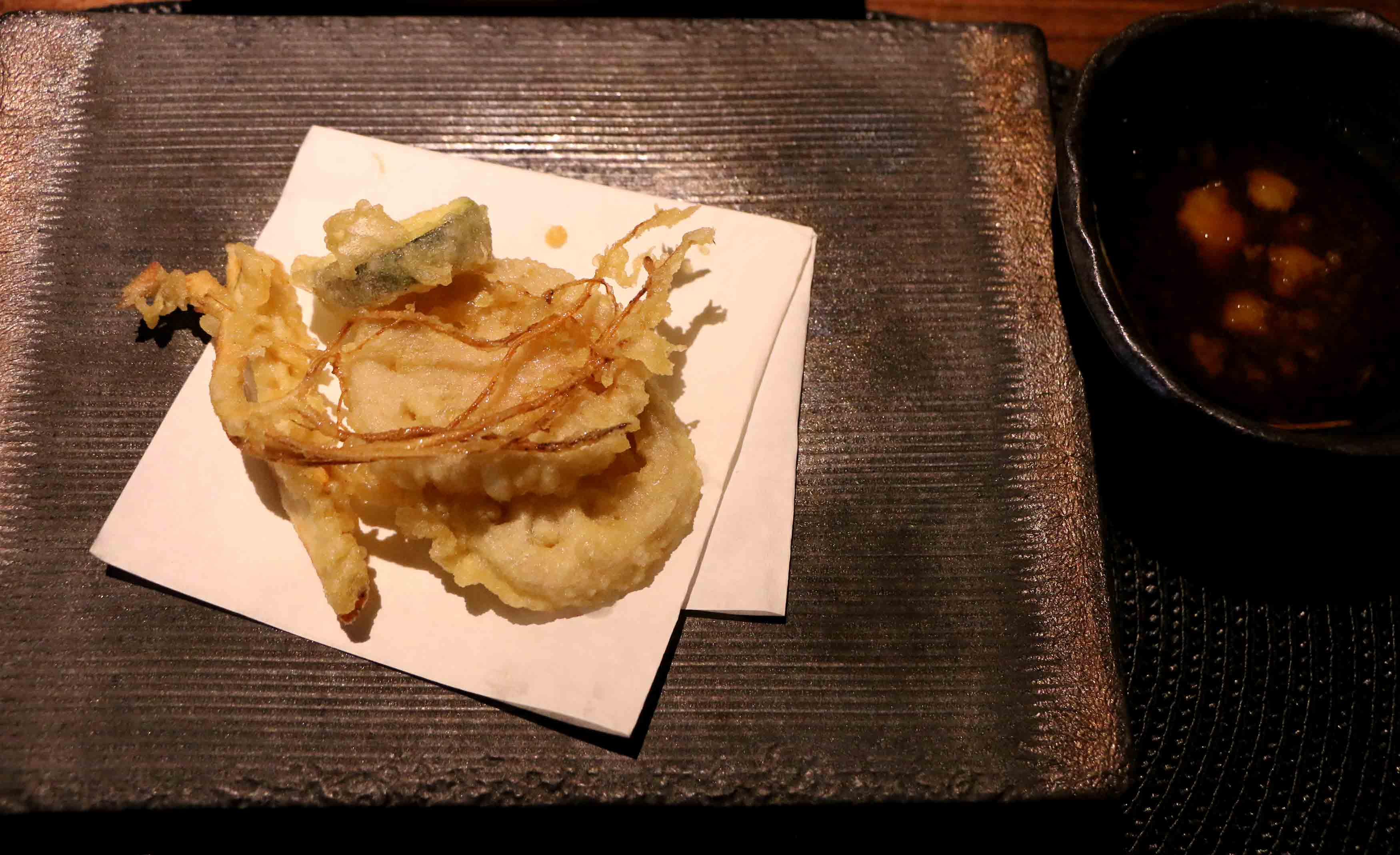 人參、節瓜、蓮藕、紅橘椒、白蘿蔔的天婦羅。