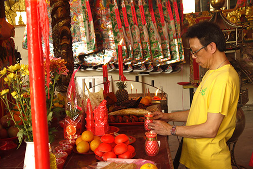 法然師伯代表上貢果蠟恭賀 三將軍寶誕。感恩 師父!感恩 師伯!