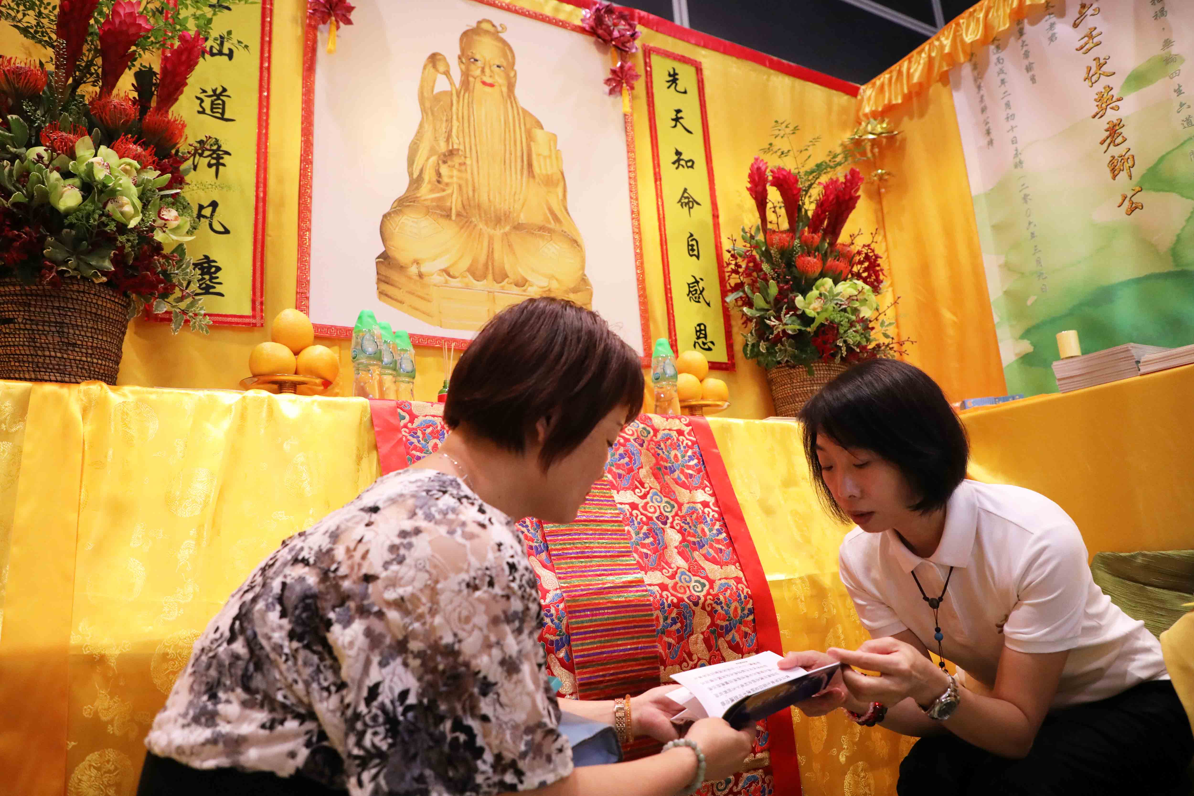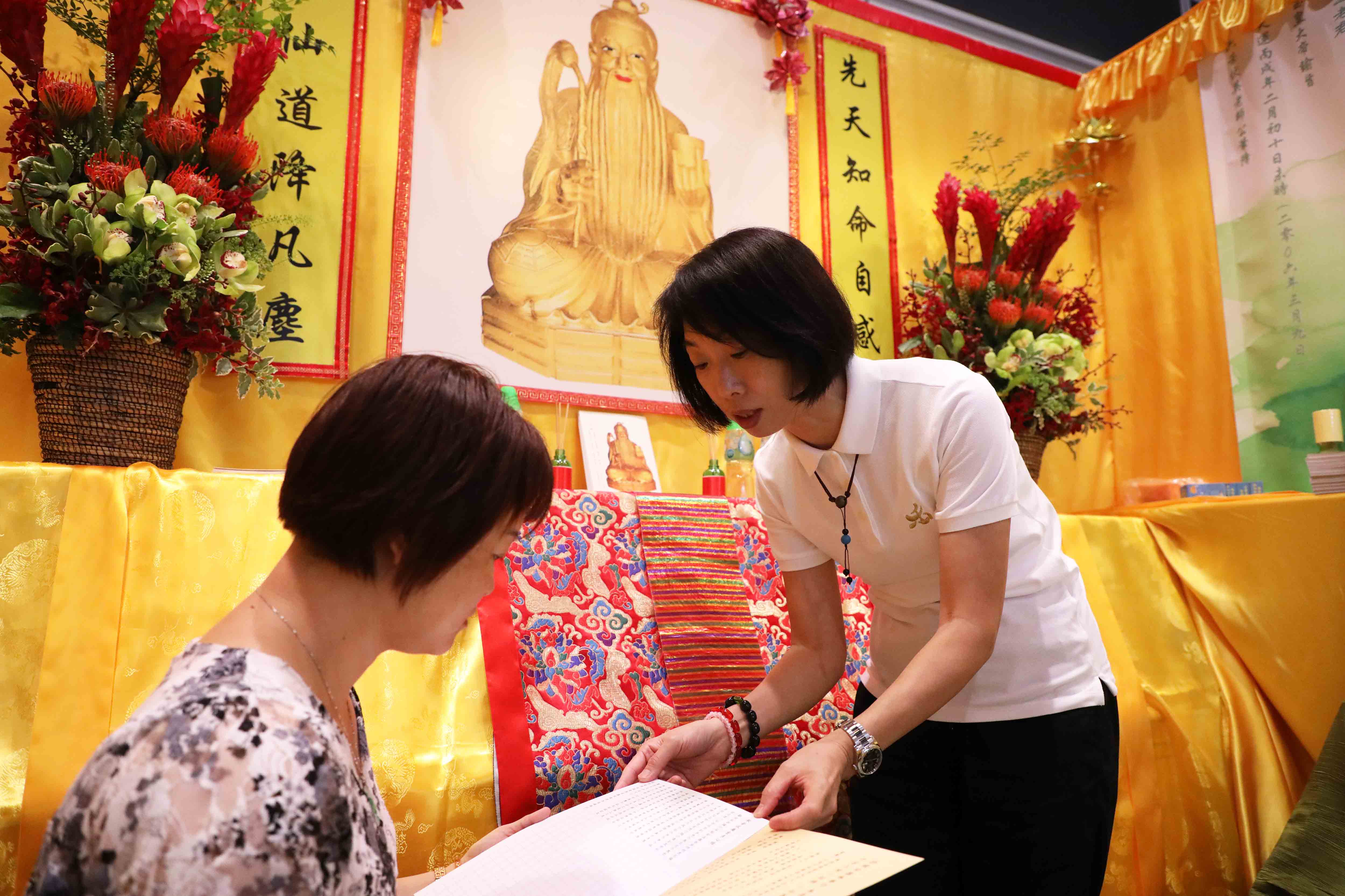 首天到訪書展並獲 師父開示的佩玲,翌日帶同媳婦再訪 師父,佩玲希望媳婦得到 祖師爺的加持,以及從 師父的開示教化中得到啟發,從而改善命運。感恩 師父!