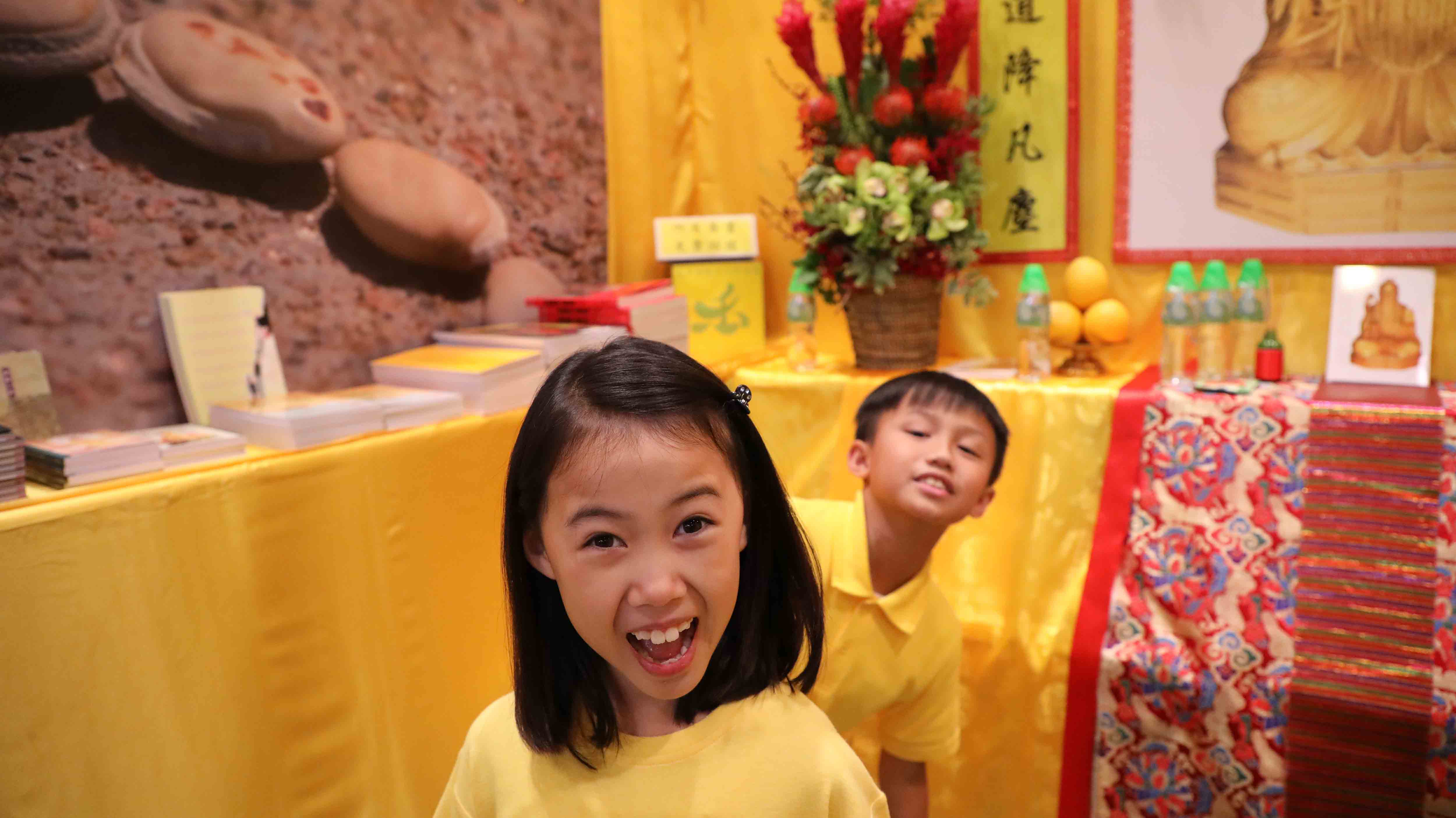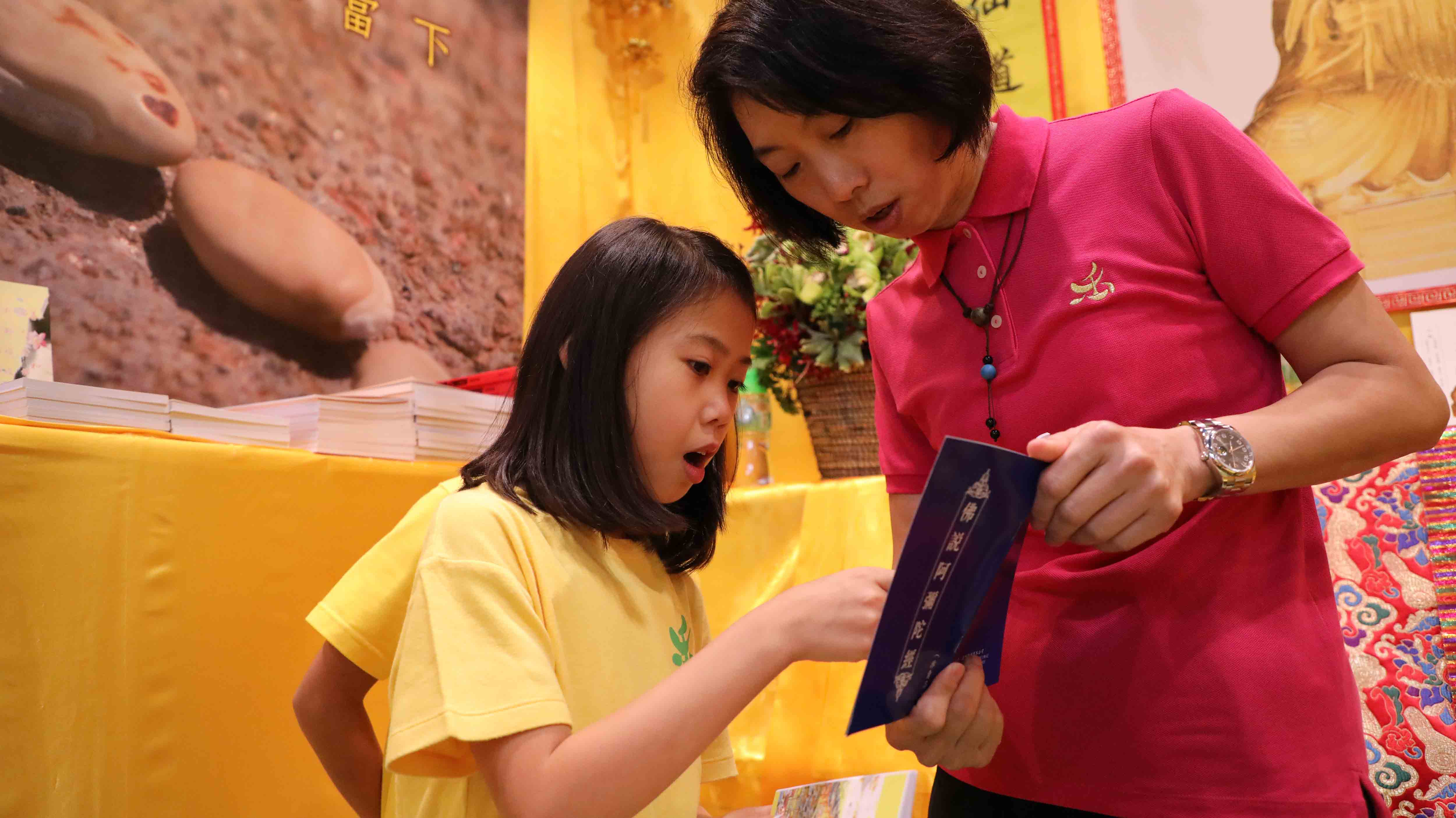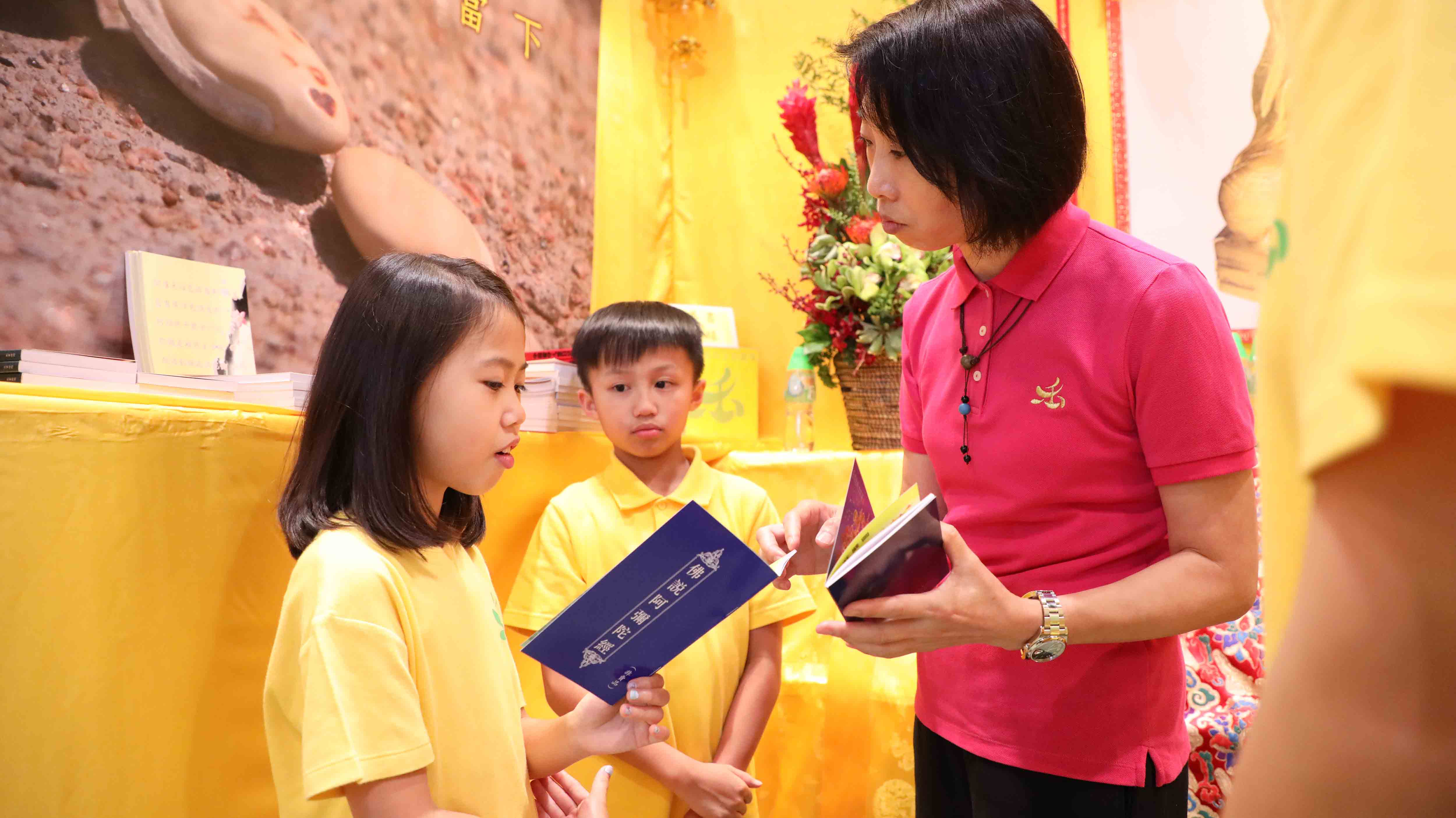 法將師叔帶同女兒Clare,法美師姐與兒子浩然、女兒靄欣,昨天一同參與書展當義工,小孩們都顯得非常開心。除幫手執執書、點算來訪人數外,還學習抄寫《弟子規》,小孩對佛道興趣甚濃,當場向 師父問道, 師父因材施教,隨緣教導開示,感恩 師父!
