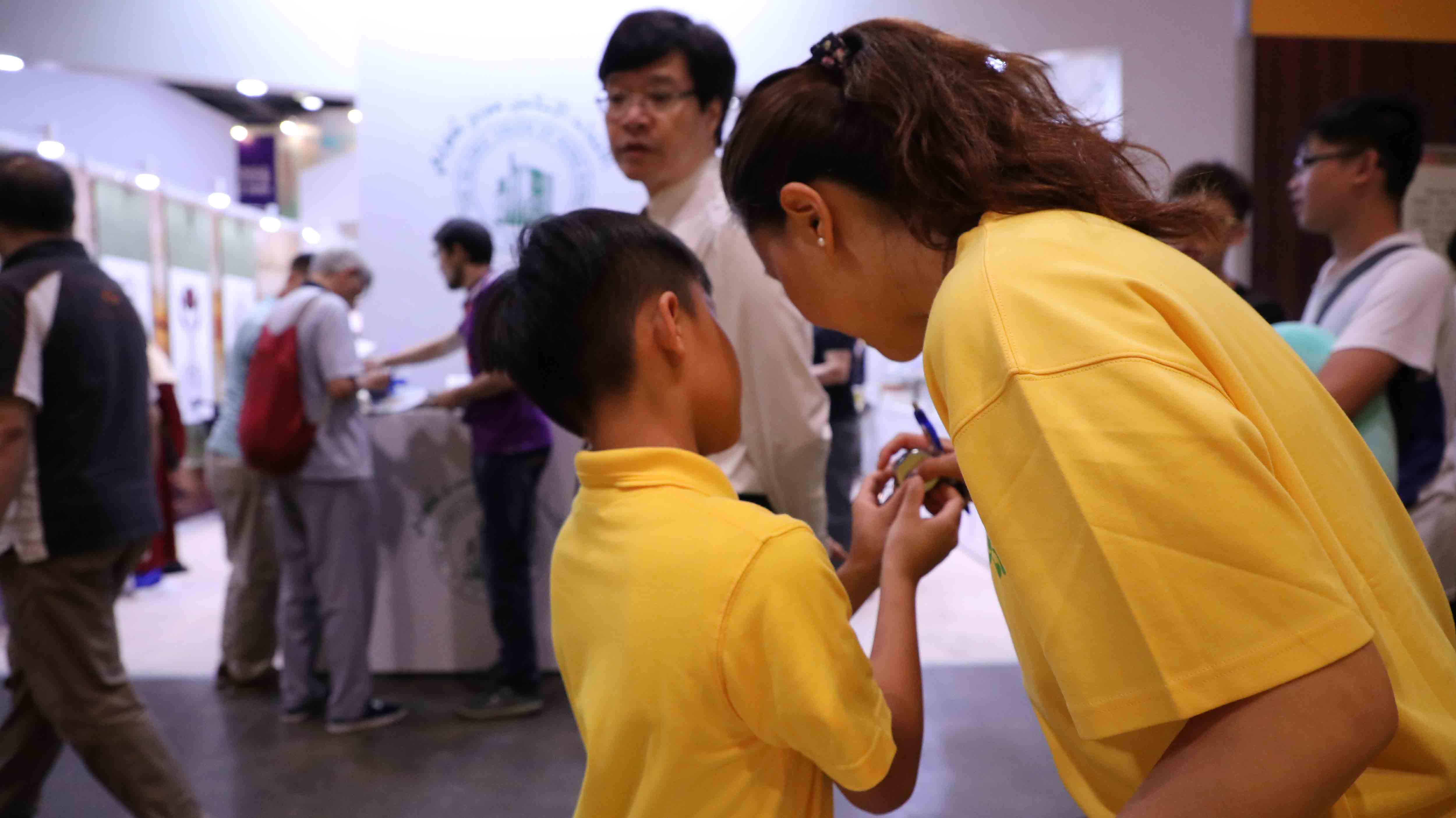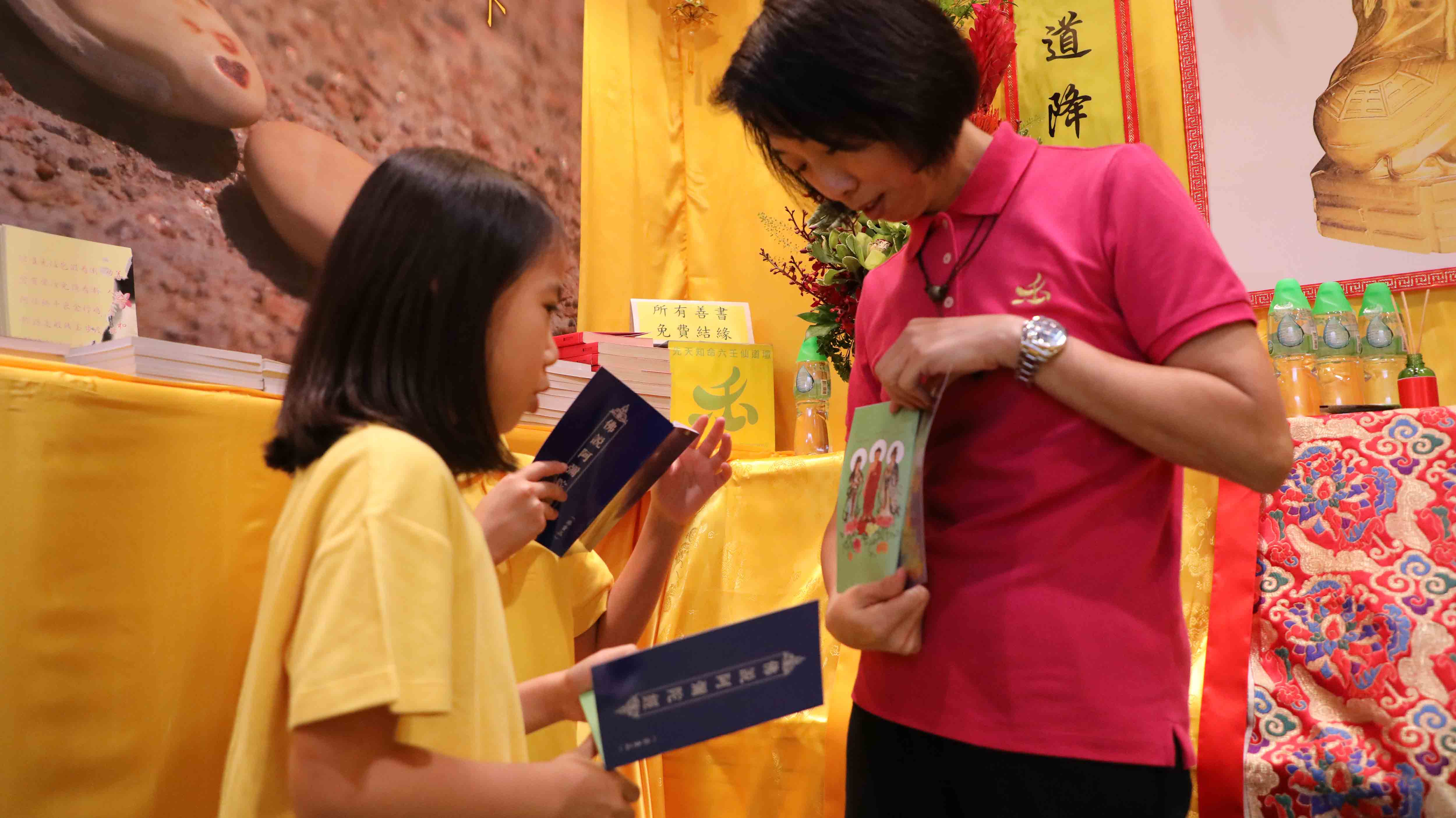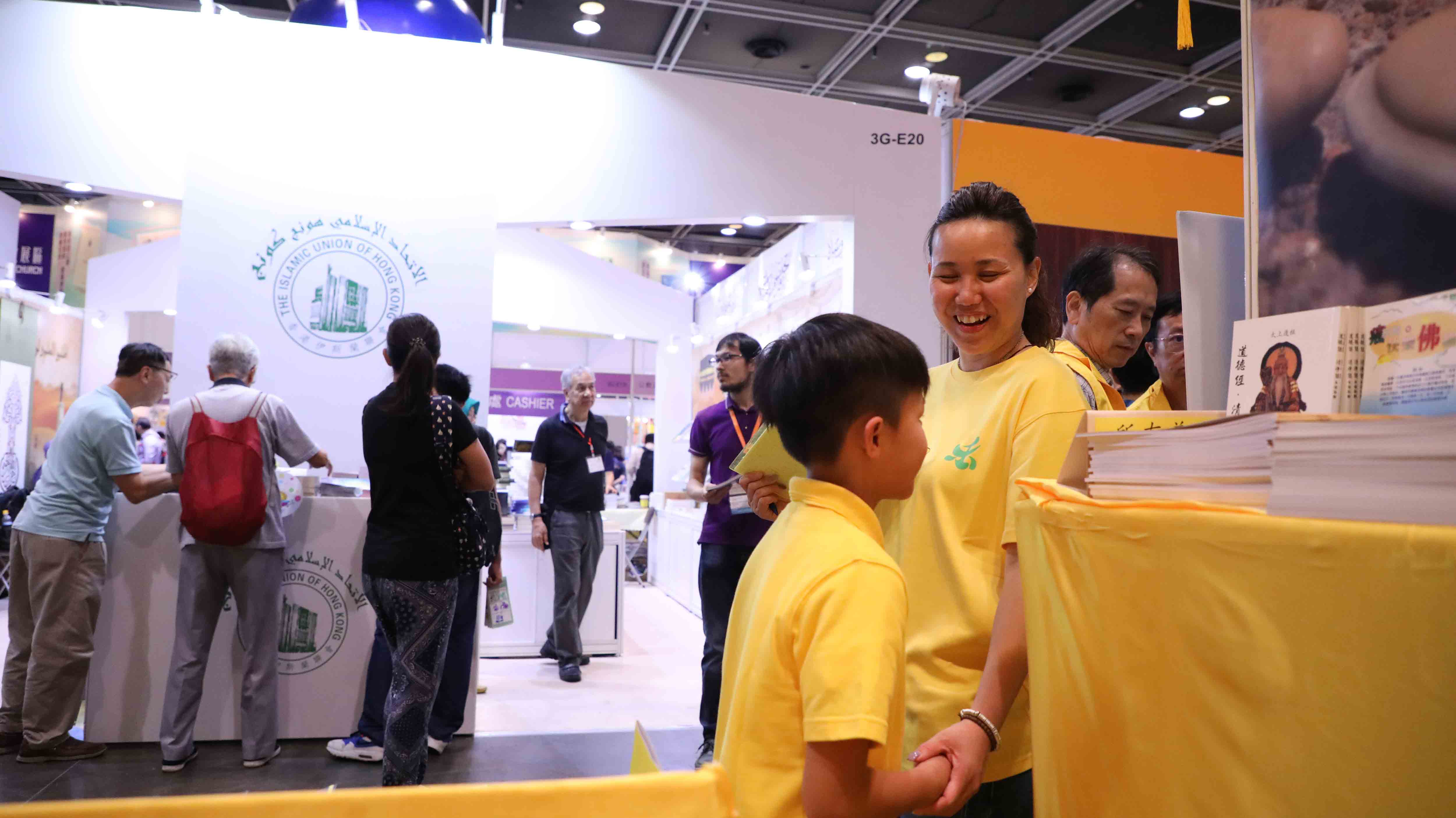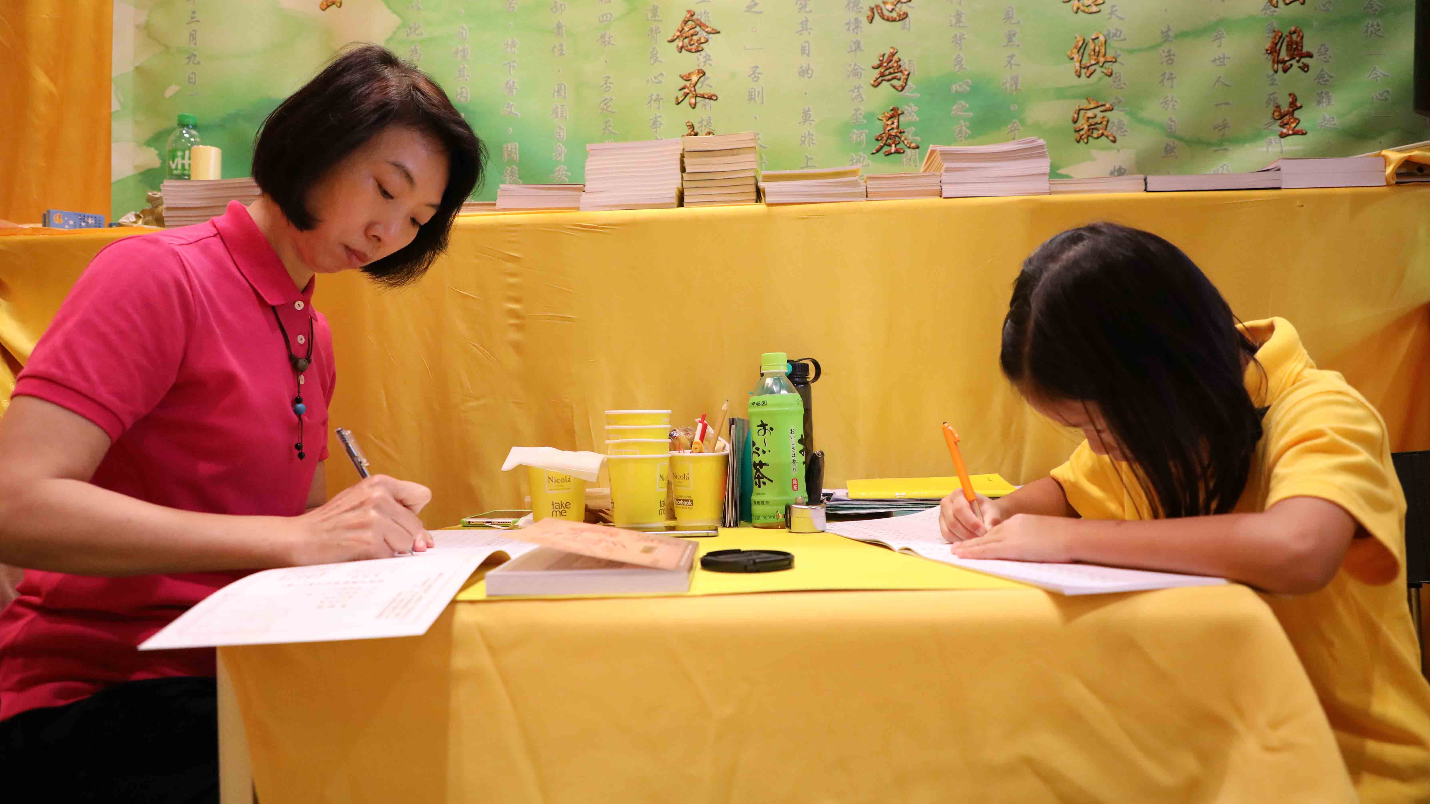法將師叔帶同女兒Clare,法美師姐與兒子浩然、女兒靄欣,昨天一同參與書展當義工,小孩們都顯得非常開心。除幫手執執書、點算來訪人數外,還學習抄寫《弟子規》,小孩對佛道興趣甚濃,當場向 師父問道, 師父因材施教,隨緣教導開示,感恩 師父!