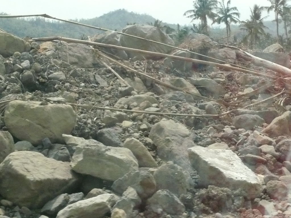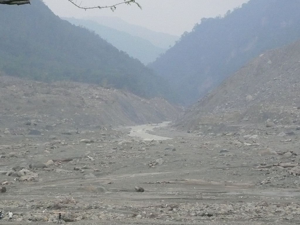 山崩後草木了無痕跡, 土石流把原來位於山谷的小林村,淹蓋成廣濶的爛地。