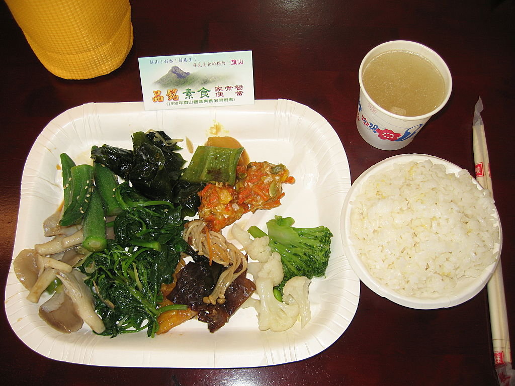 大約12時半,我們到了旗山鎮,沿途找到了一家素食店,便決定先吃午飯,這家素食店是自助形式的!