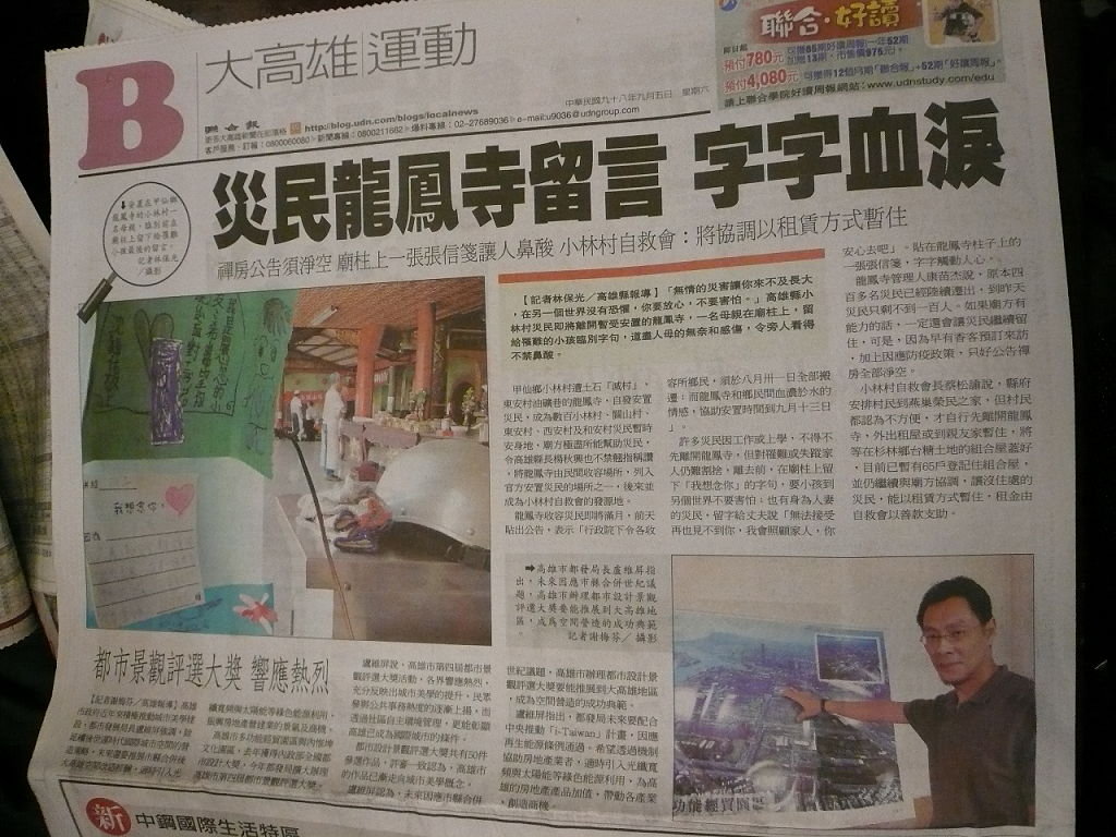 9月4日, 師父聯絡過小林國小的王校長,他因事務煩忙,安排了丁老師到甲仙鄉與我們滙合,再帶我們往小林。因為5號是星期日,學生都放假回家了,所以我們便改變計劃,前往小林村災區及探訪住在五里埔的小林國小學生。(小林國小本來有87名學生,但生還的只有30名學生)昨天吃過晚飯後,我們乘的士回賓館時,便約好了的士去小林村。