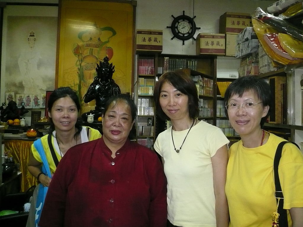 因店內的書很殘舊, 師父問她(在店內的女士,相信是老闆)是否介意替她抹書,她說沒所謂,所以就略抹。 師父見到店內有尊30-40吋大黑色的像,很莊嚴,問是那位佛菩薩,( 師父用意是打開話題,既然供佛菩薩,又是佛具店,書是出售的,包括結緣書,不應咁污漕)