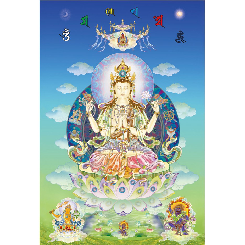 另外,觀世音菩薩的造形中最引人注意的是「千手千眼觀音」,千手表示遍護眾生,千眼表示遍觀世間。 因為世間如同苦海,那個眾生沒有痛苦?因此觀世音菩薩就特別忙碌,唯恐兩隻眼睛看得不夠周詳,兩隻手忙不過來,就發展成千臂千眼等形象。