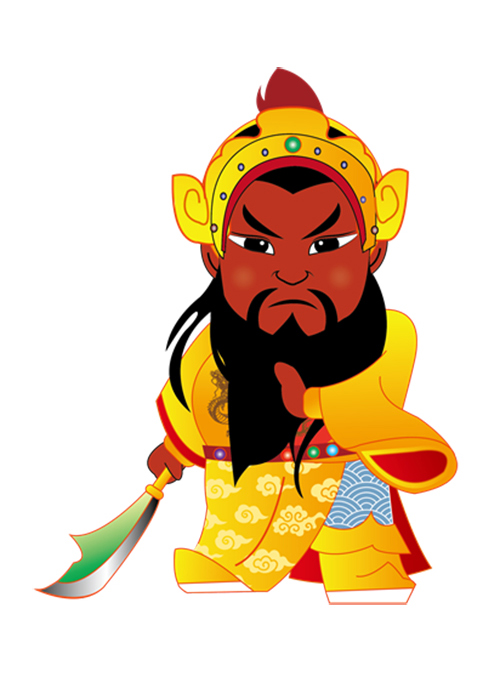 據史書記載,關羽二十九歲時,因當地鹽商欺壓百姓,出逃到河北涿州,結識張飛,再遇劉備,三人情若兄弟,金蘭結盟。從而跟隨劉備,為匡復漢室南征北戰,四十歲時被封為壽亭侯,四十九歲封為襄陽太守、蕩寇將軍,五十四歲封為董督荊州事。五十九歲(公元 219) 年時,在湖北當陽捨生壯別人世。傳說關羽身長九尺六寸、鬚長一尺六寸,面如重棗,唇若抹朱,丹鳳眼,臥蠶眉,與其忠義之氣概正好互為表裏,是以讚曰:「精忠沖日月,義氣貫乾坤,面赤心尤赤,鬚長義更長。」