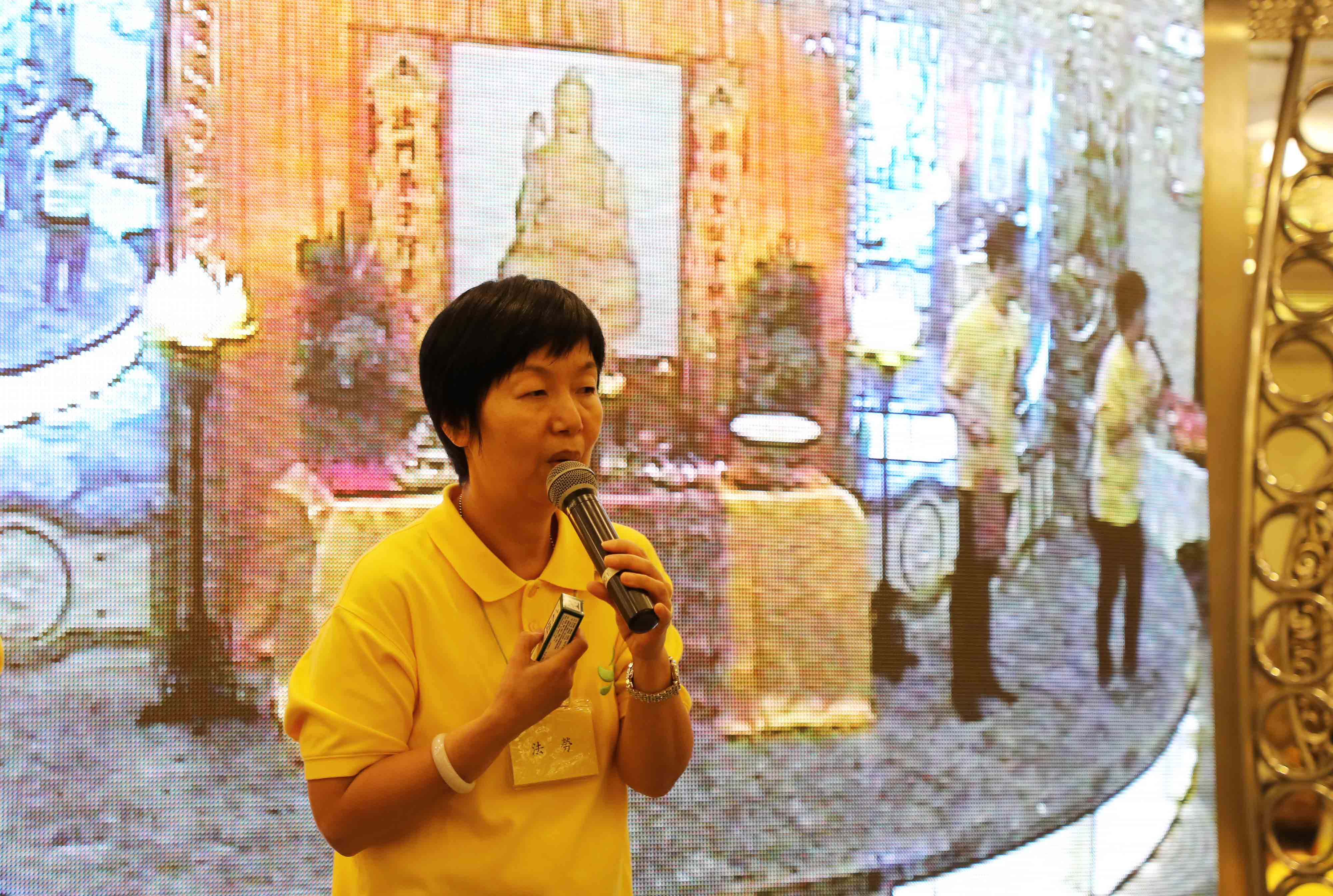 席間法勞師姐分享早前以 祖師爺開光的藥油,救助一位在街頭昏倒不適的伯伯之見證。