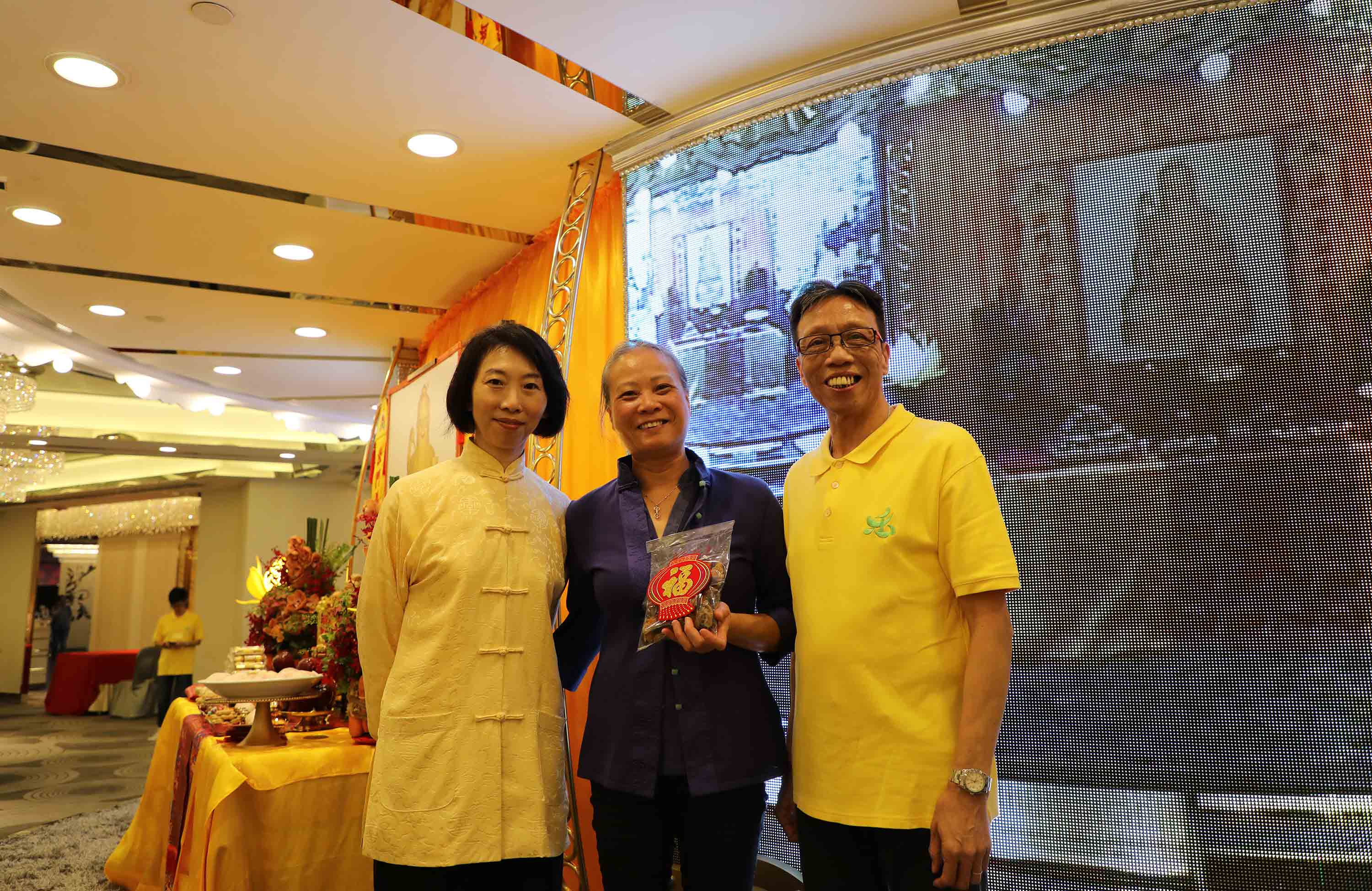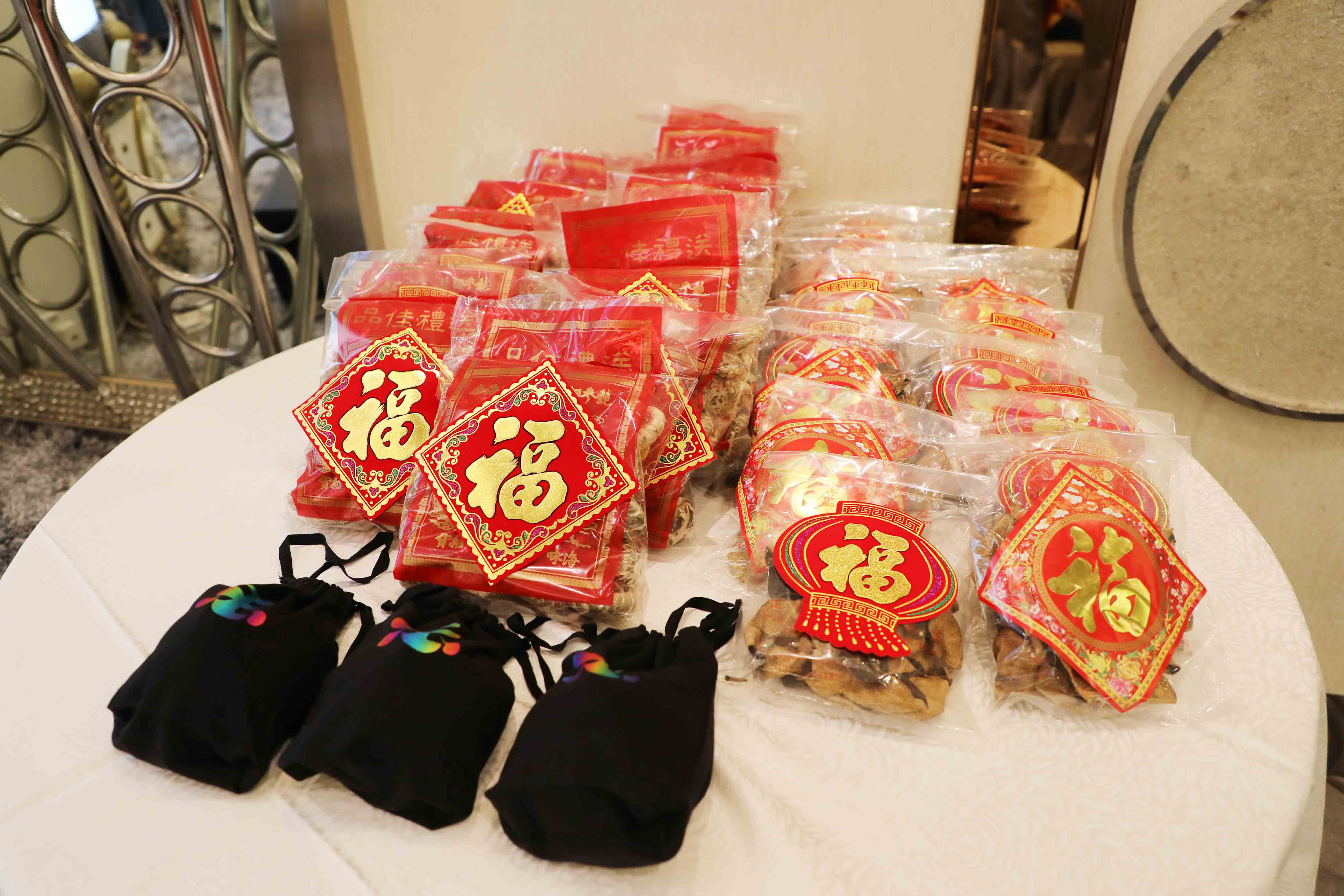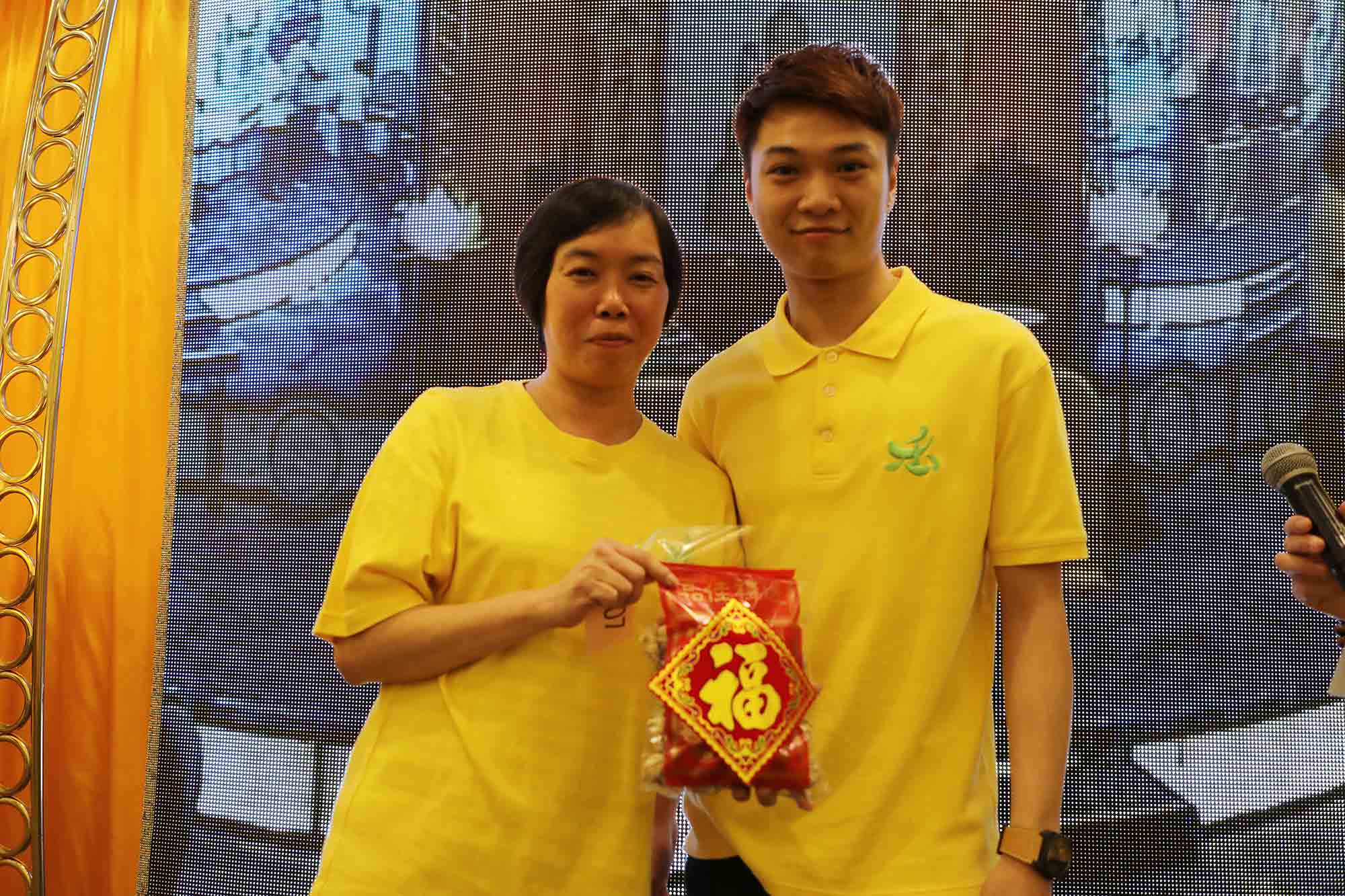 抽獎禮品: 祖師爺開光果皮、冬菇;以及三份大獎:以 法門Logo小袋子袋著、裝有 祖師爺開光茶葉的茶盅。