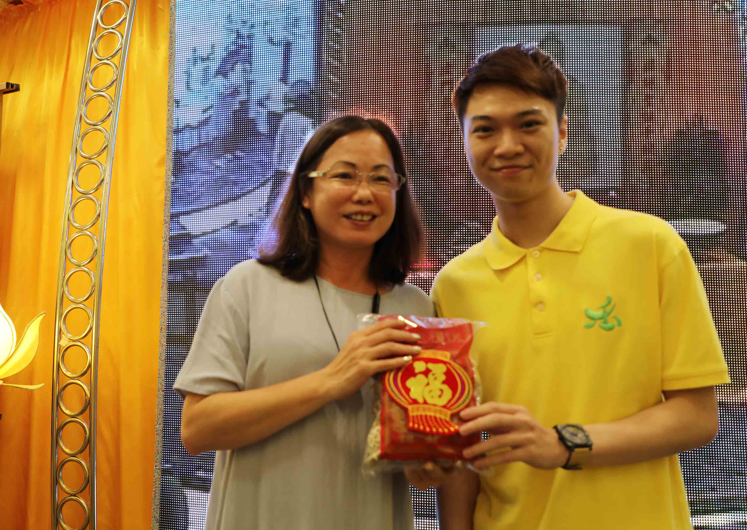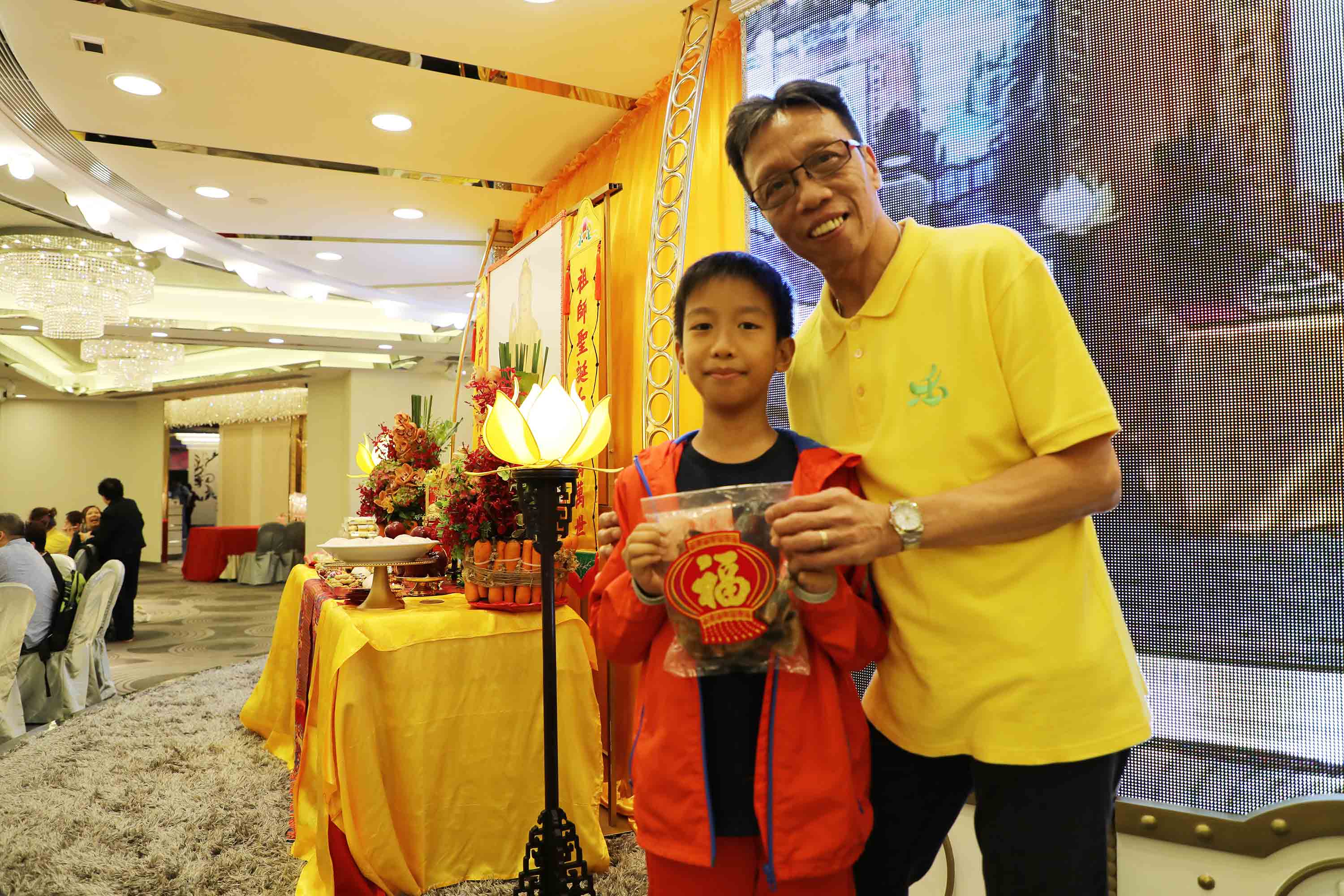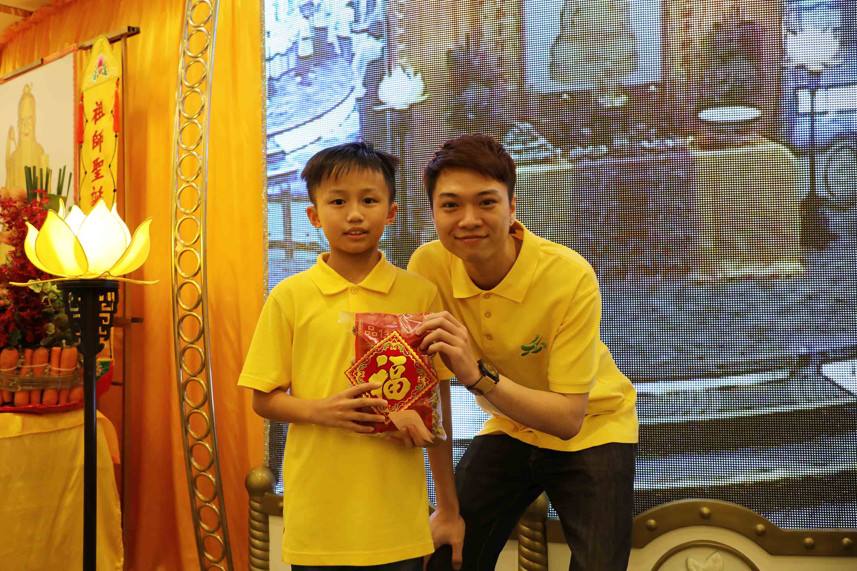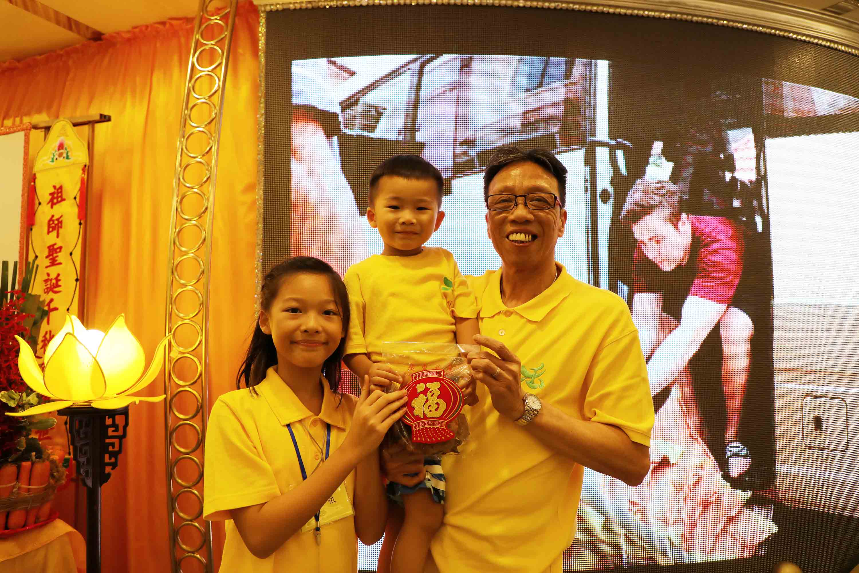 抽獎禮品: 祖師爺開光果皮、冬菇;以及三份大獎:以 法門Logo小袋子袋著、裝有 祖師爺開光茶葉的茶盅。