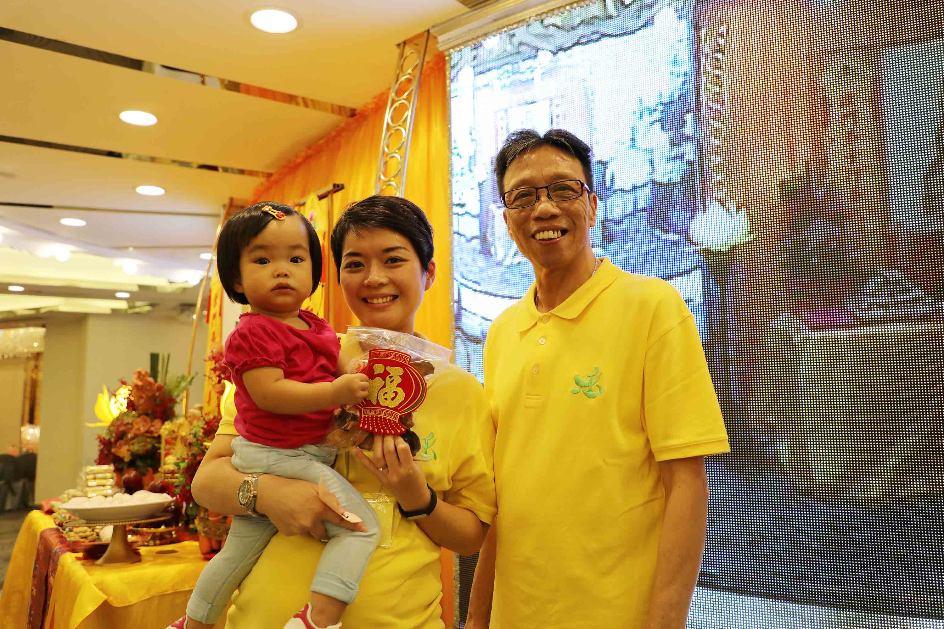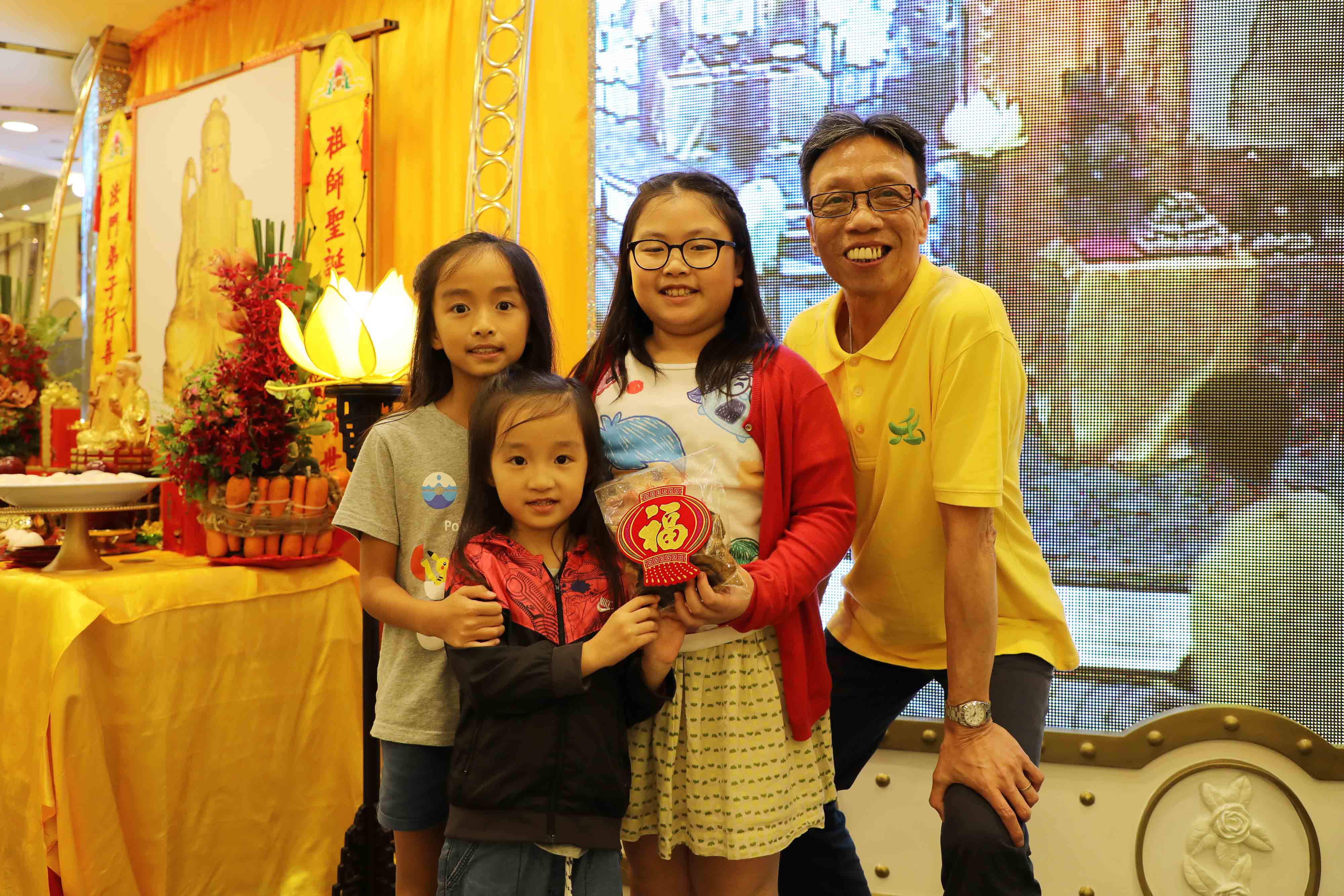 師父指示,將貢壇生果、糖果於離場前與現場長者、小孩結緣分享。感恩 師父!