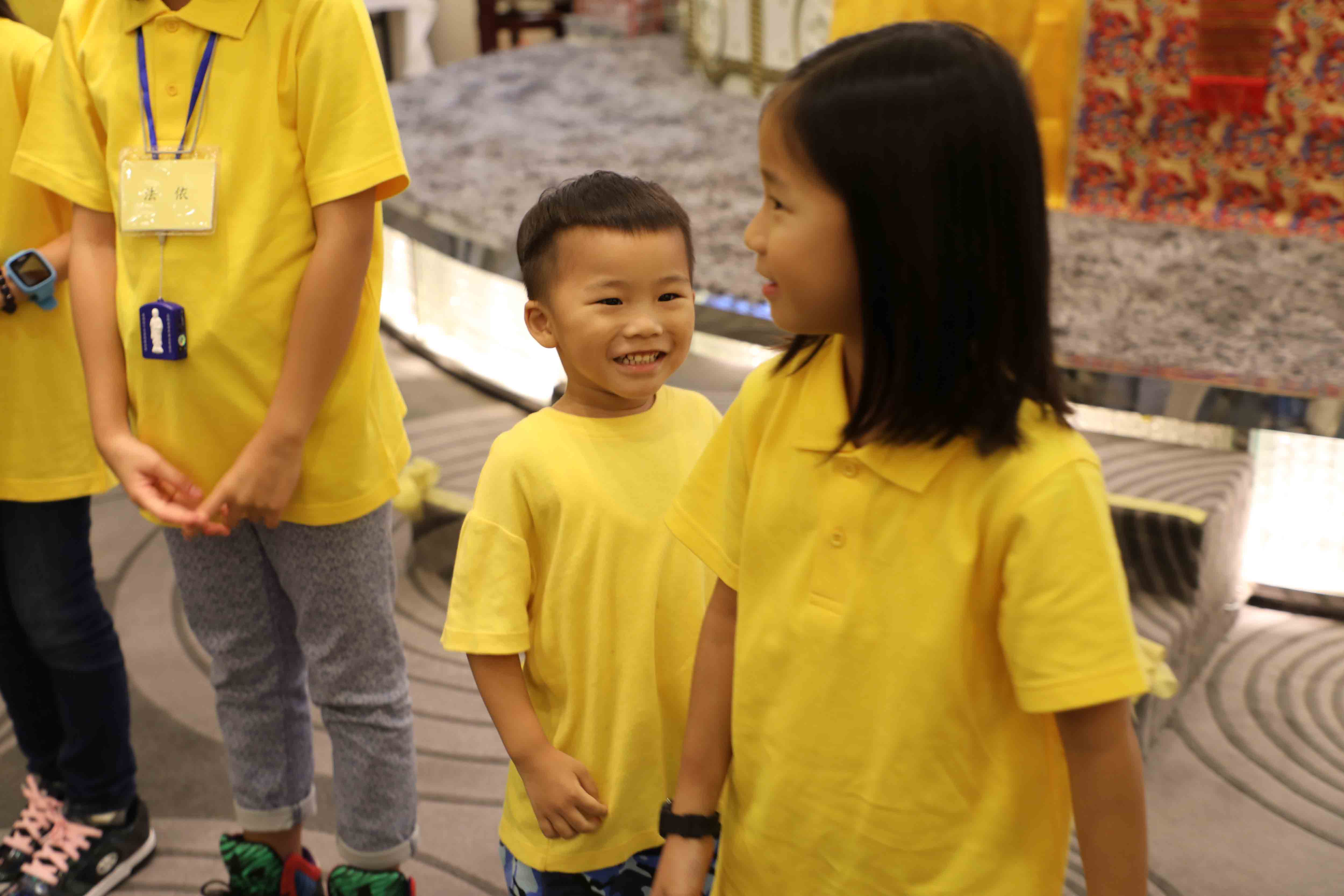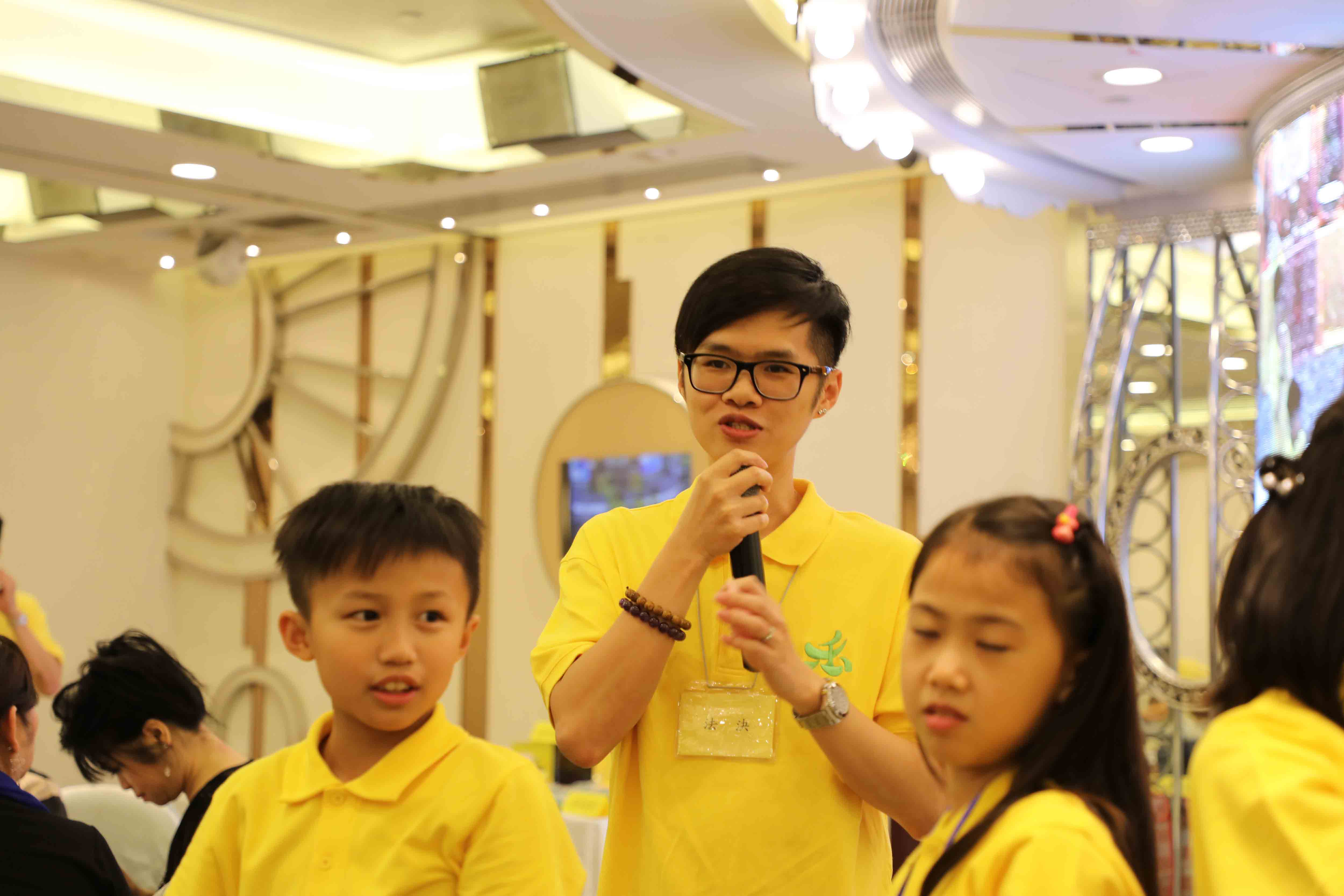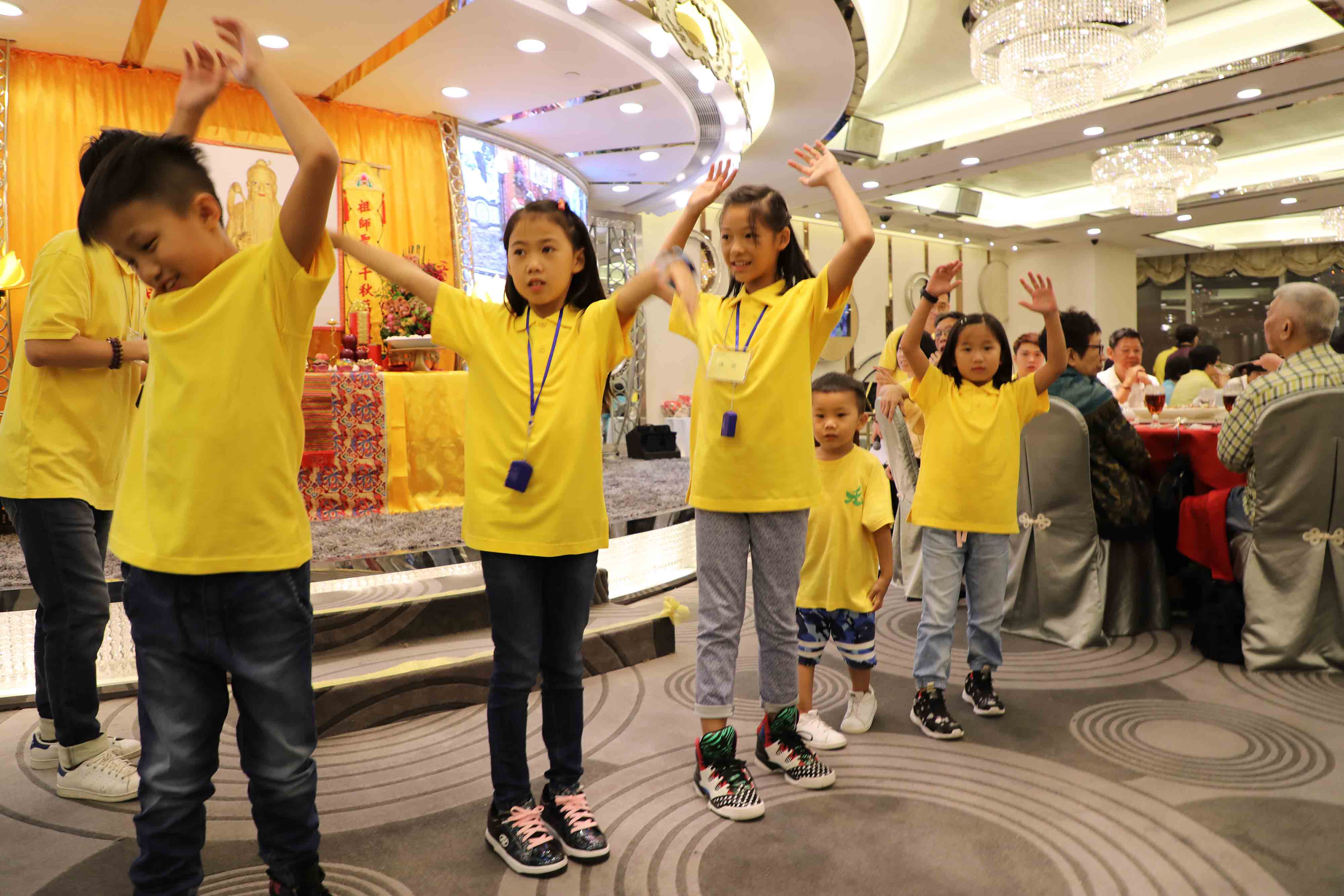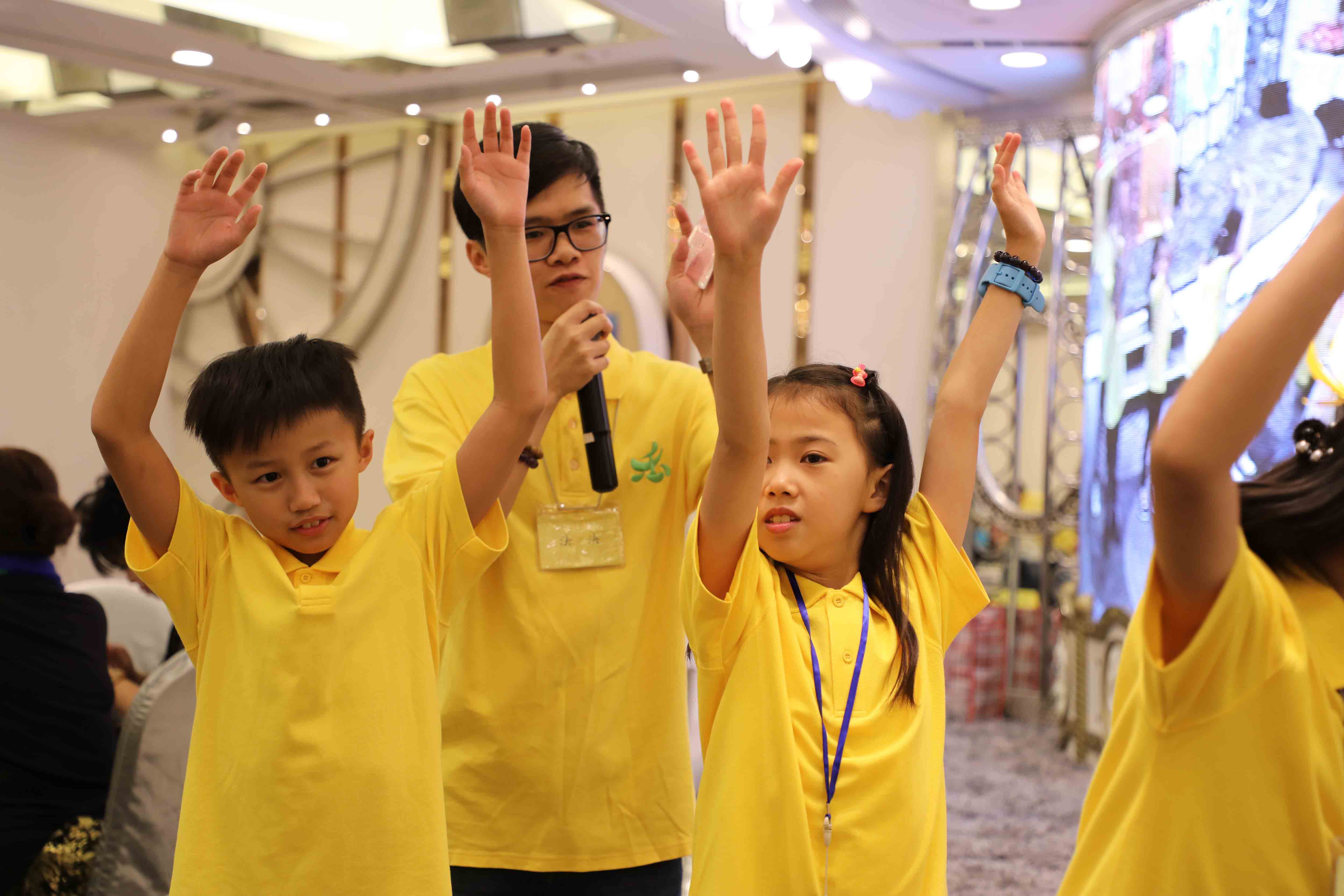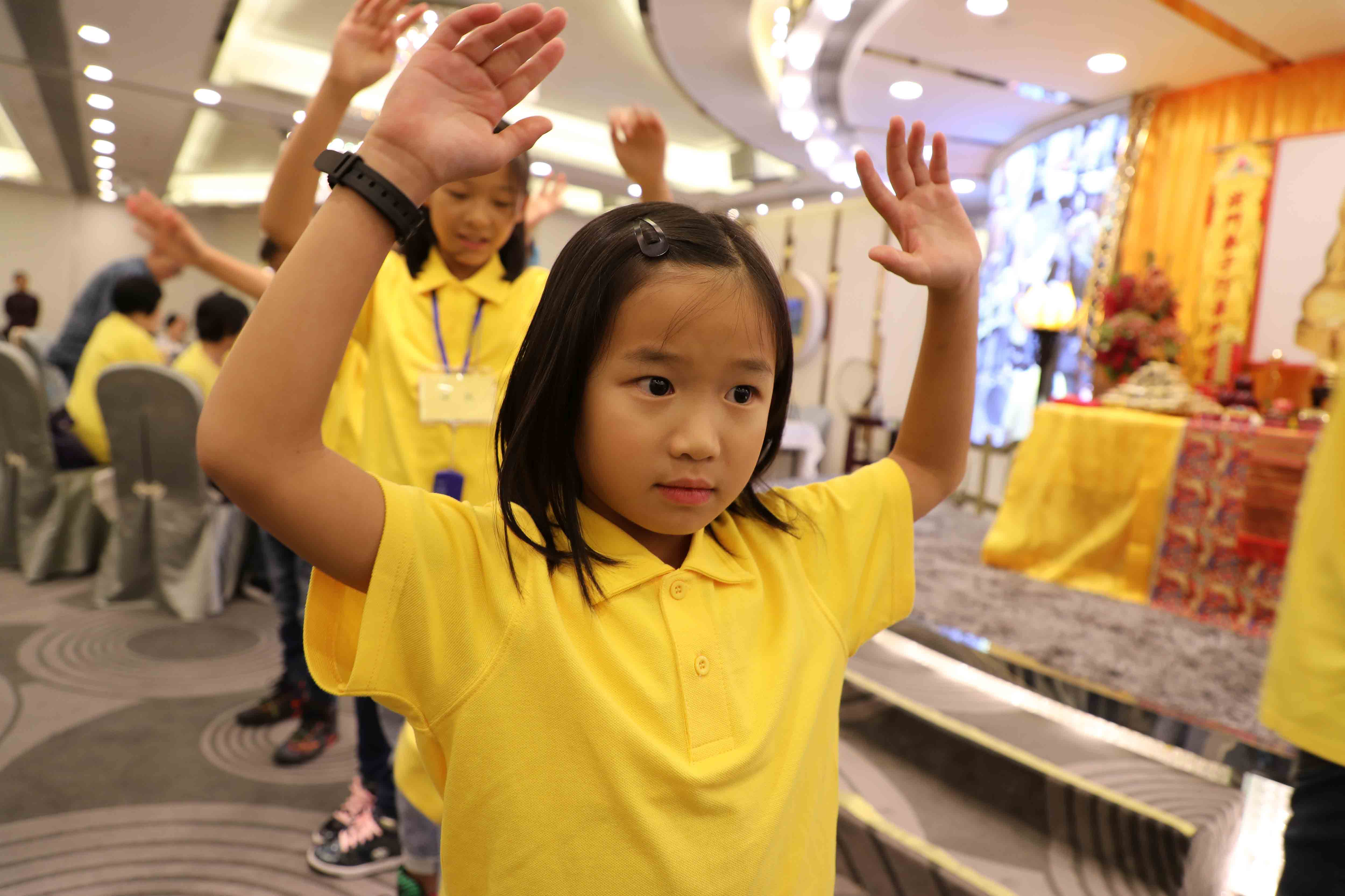 小孩們表演養生甩手功。