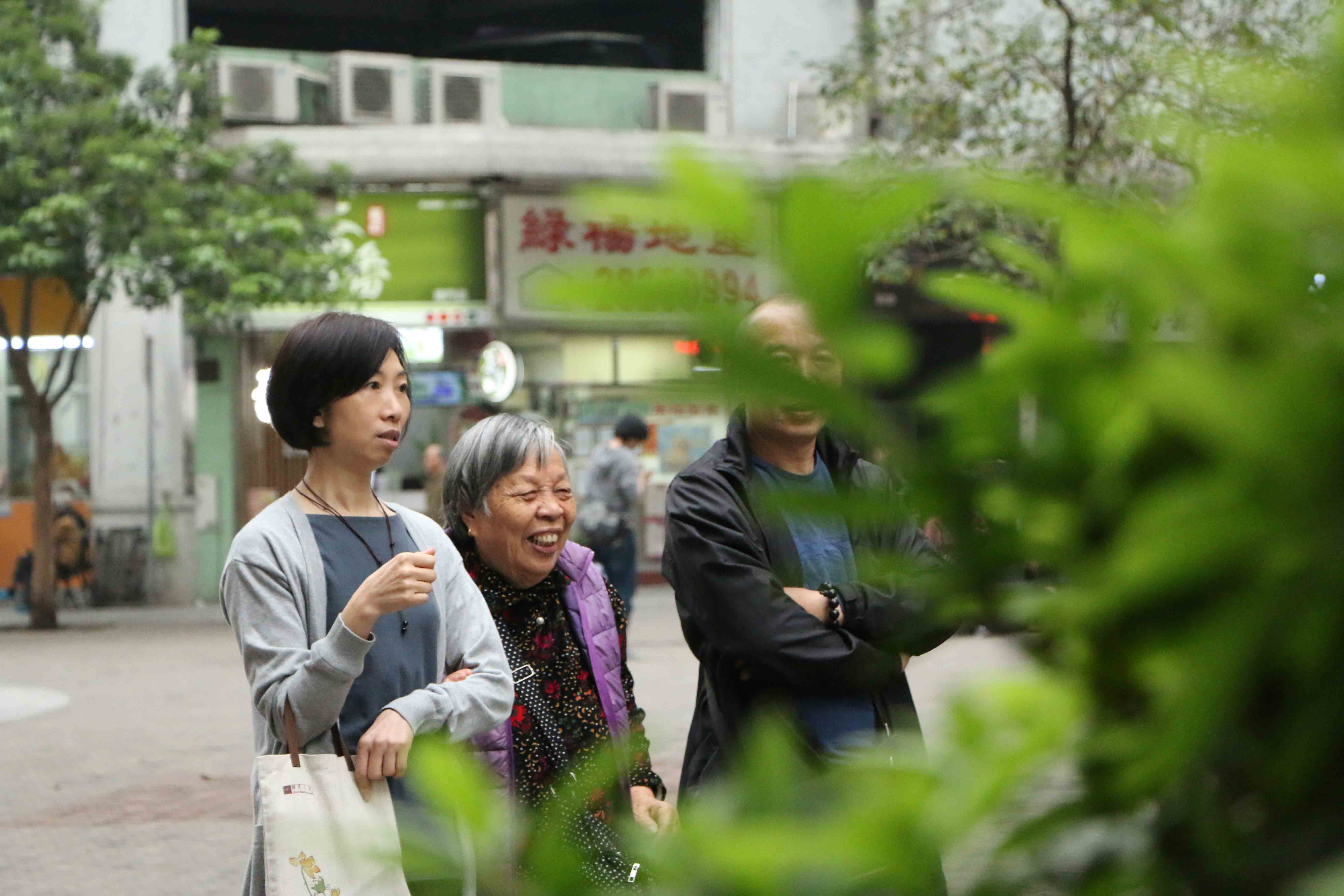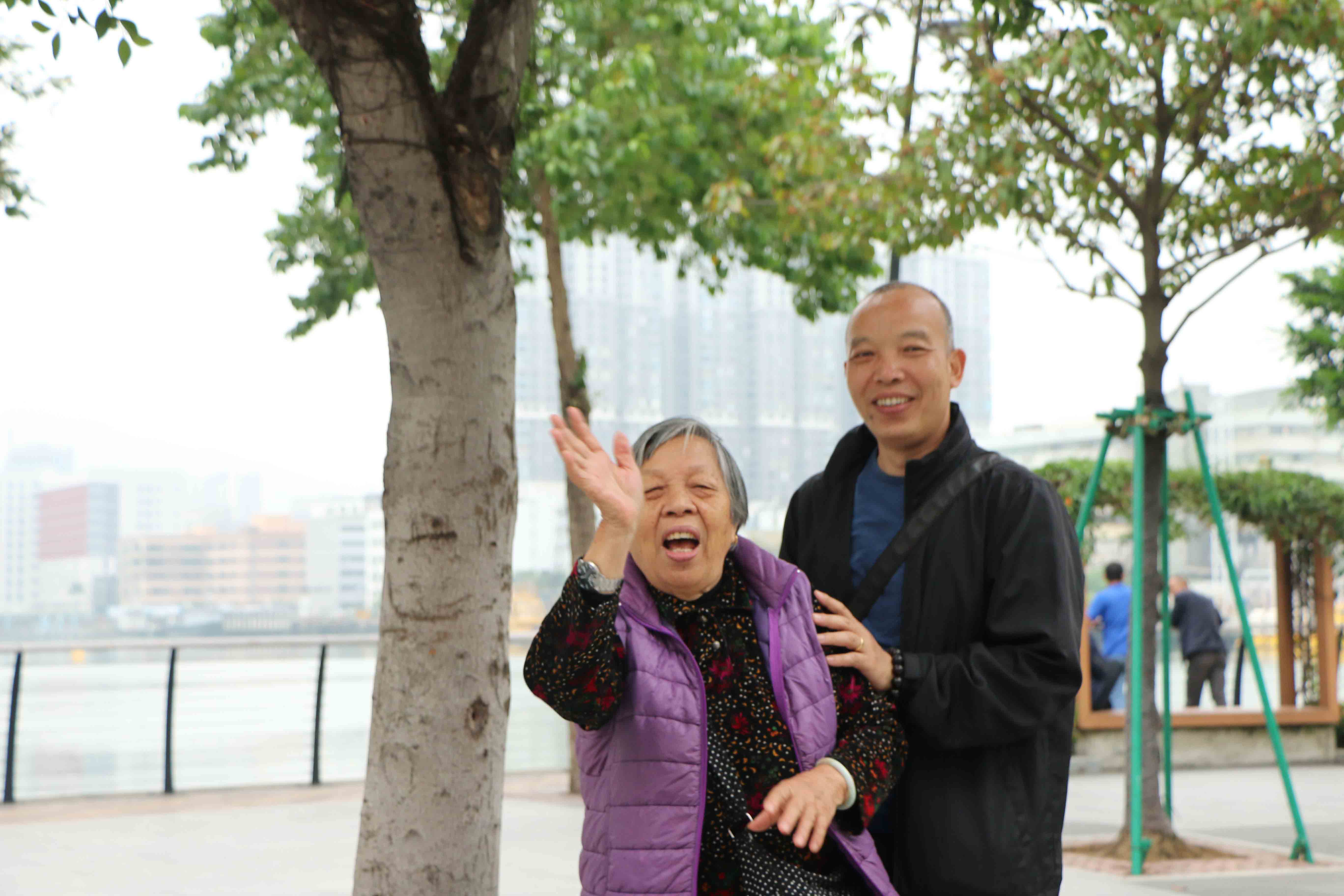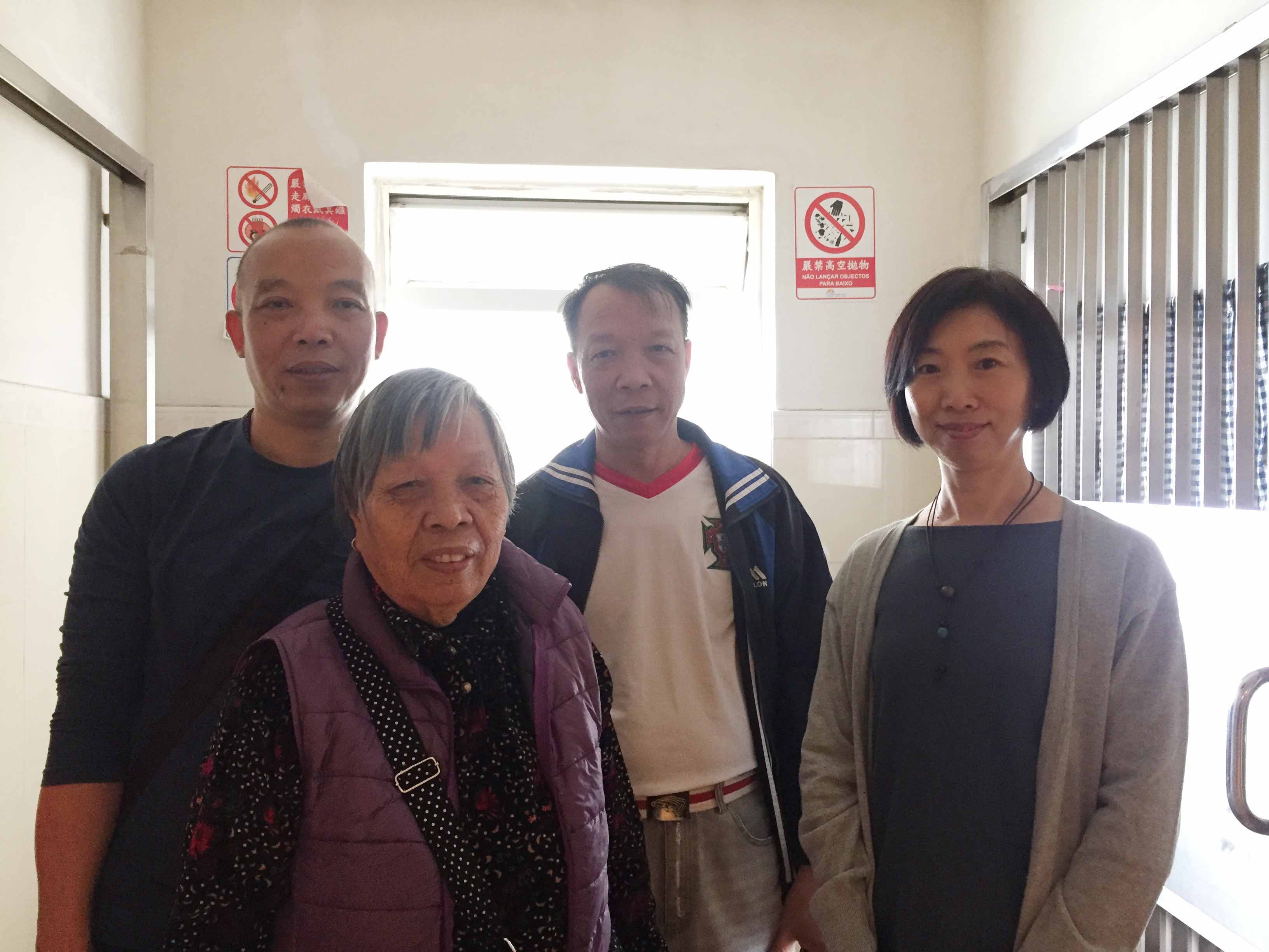 師父提議與鄺婆到樓下餐廳吃下午茶,出門口時巧遇鄺婆兩位兒子,孝順的他們時常都會探望獨居的鄺婆。