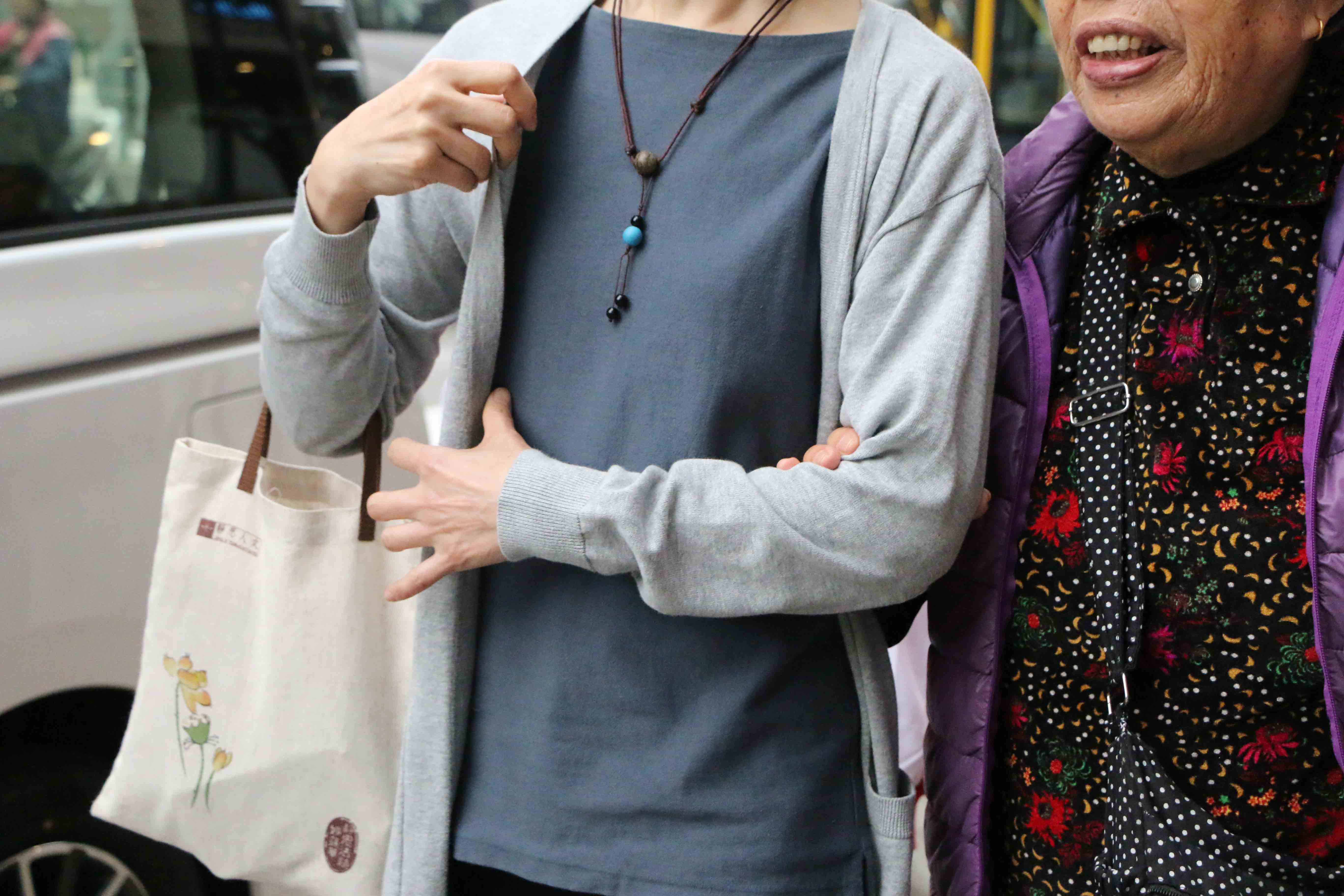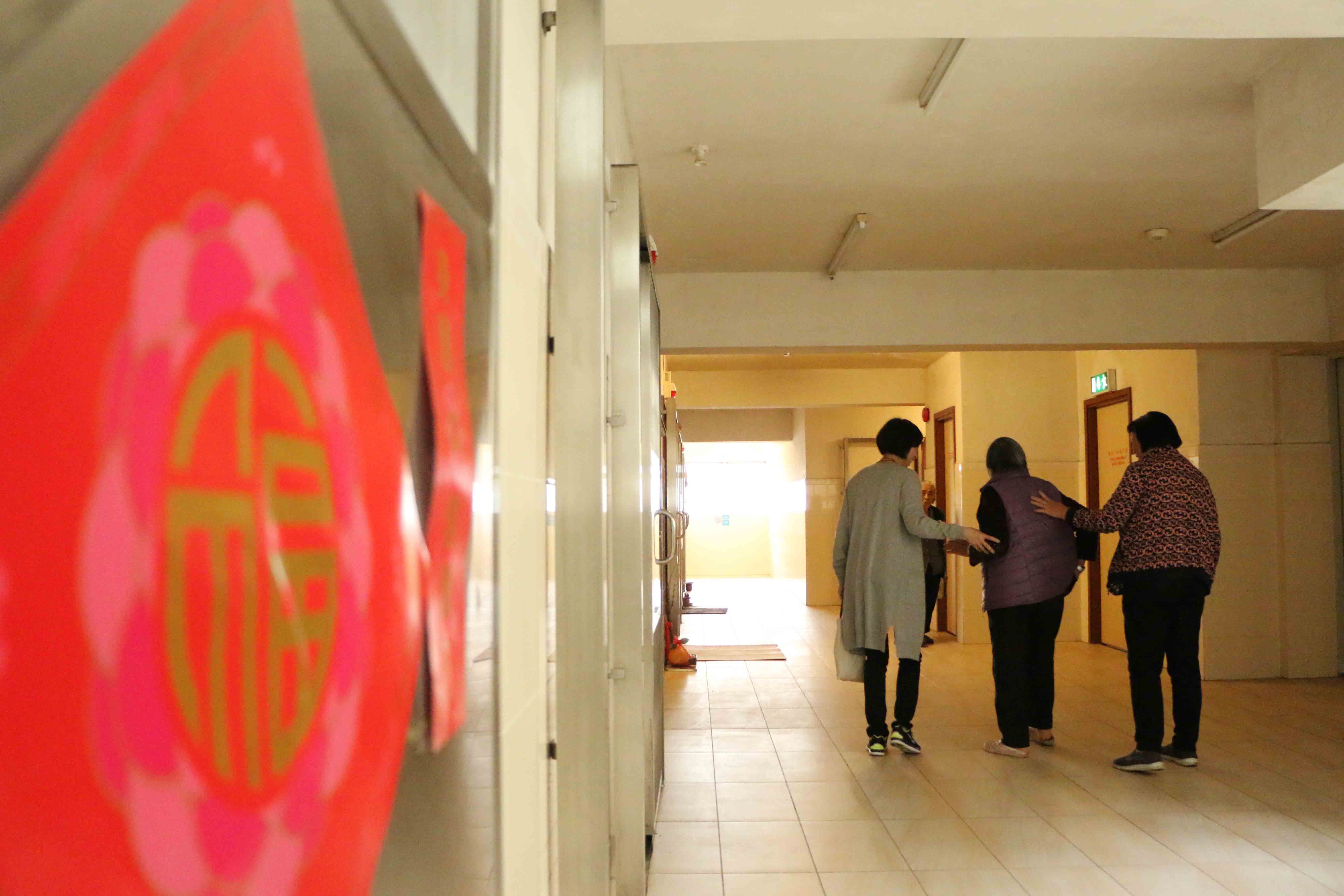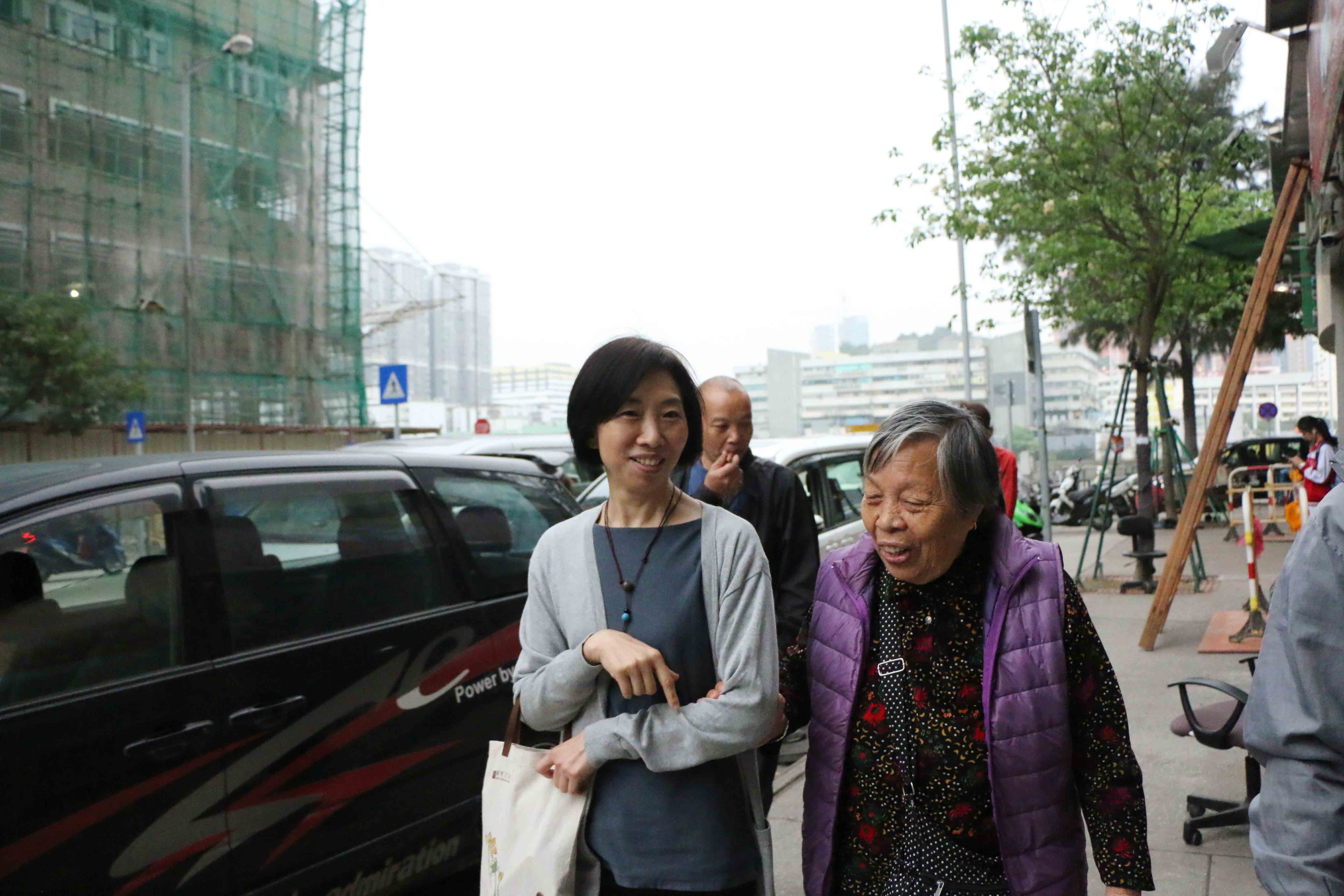 師父提議與鄺婆到樓下餐廳吃下午茶,出門口時巧遇鄺婆兩位兒子,孝順的他們時常都會探望獨居的鄺婆。