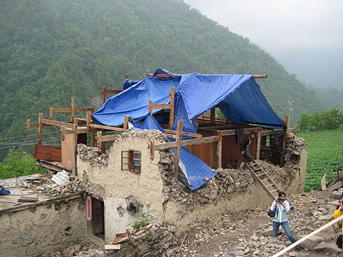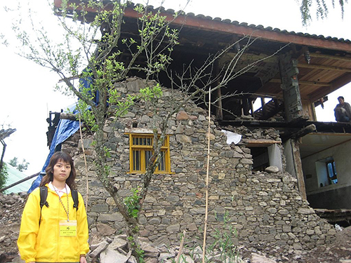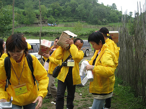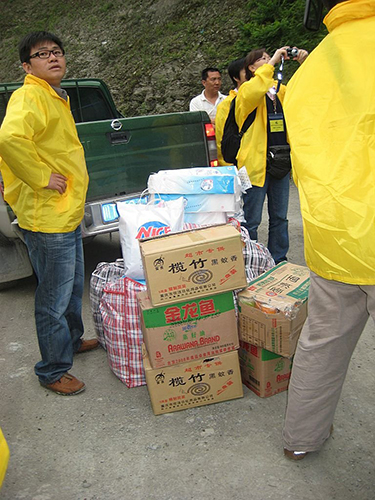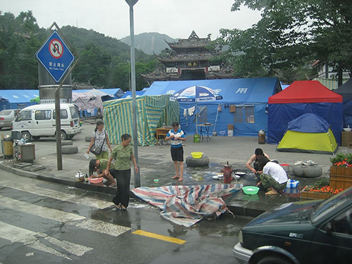 地震後,居民住在街上的帳蓬裏,起居生活都在街上,婦女便在街邊洗頭、洗菜燒飯。