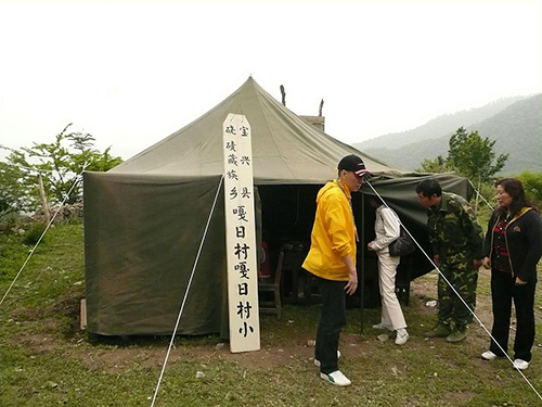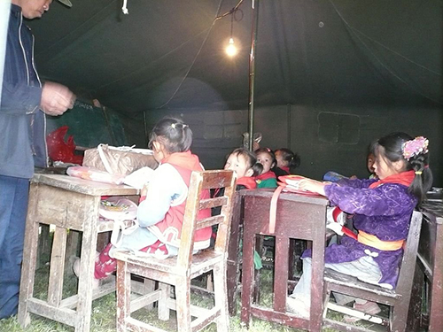 帳蓬裏,小朋友在昏暗的燈光下繼續上課。