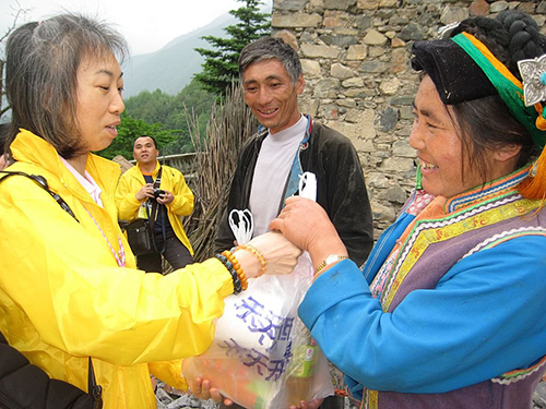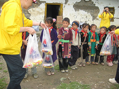 與山區小學老師(後排帶帽的2位)及學生大合照。