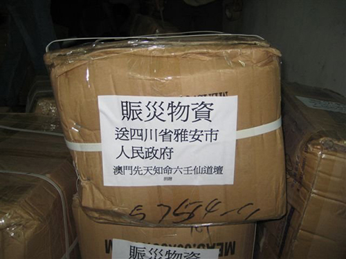 出發前已由深圳寄了多達五千公斤的物資往雅安市,當中包括棉被、賬蓬、毛巾、垃圾袋、手套、藥物等等。