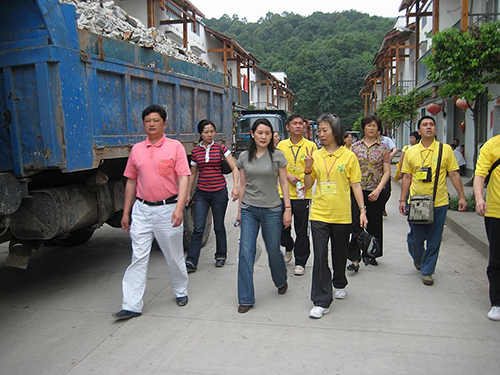 師父與眾弟子、善信及導遊溫先生一行11人在深圳機場準備上機前往四川成都,展開為期5日的賑災之旅。
