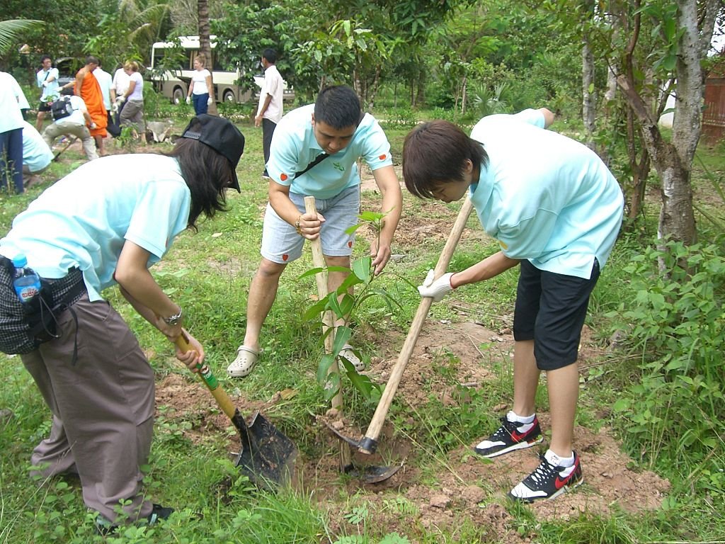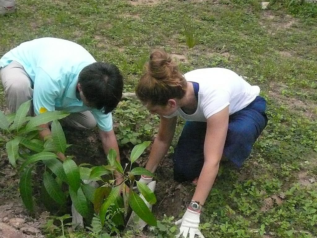與由芝加哥來的義工一起為孤兒院植樹。